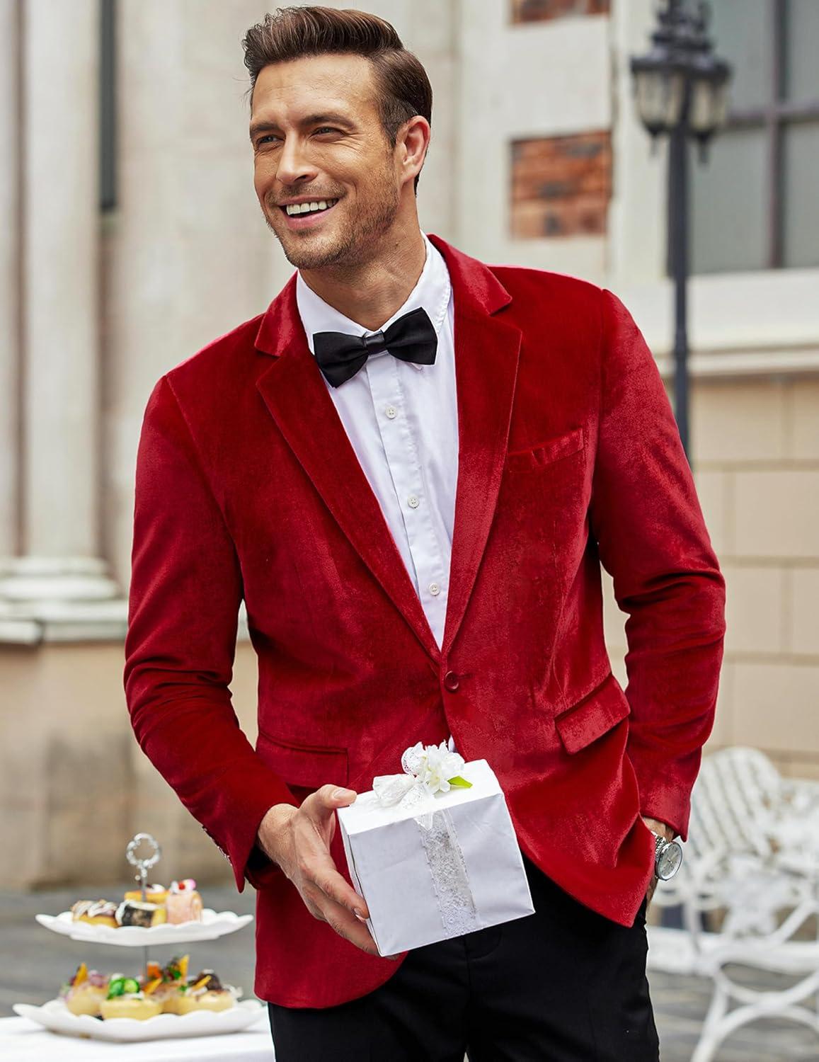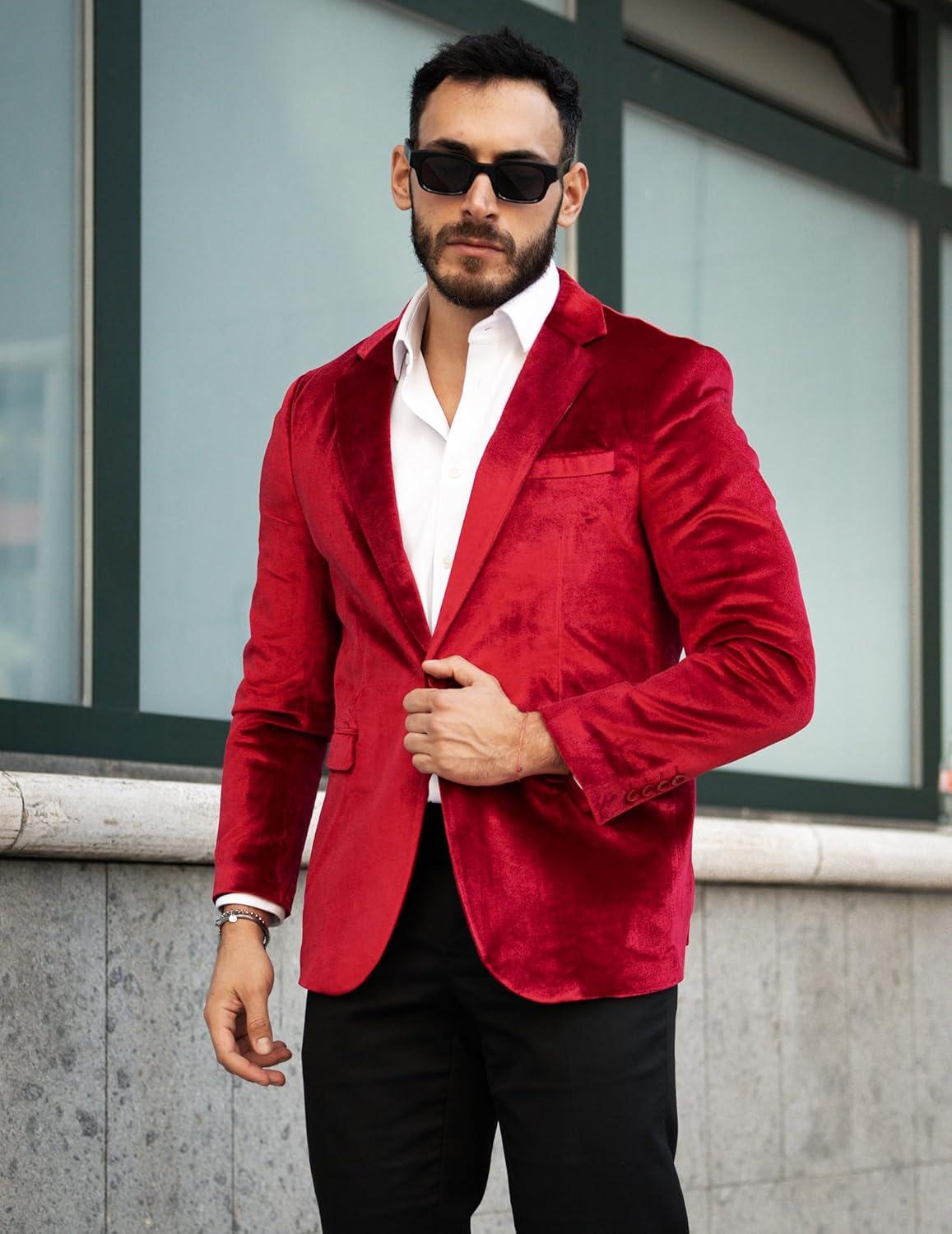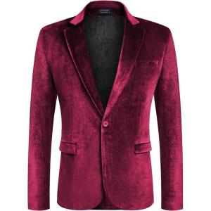 COOFANDY Men’s Velvet Blazer Notched Lapel Velour Suit Jacket One Button Tuxedo Jackets for Wedding Prom Party Dinner(Red)