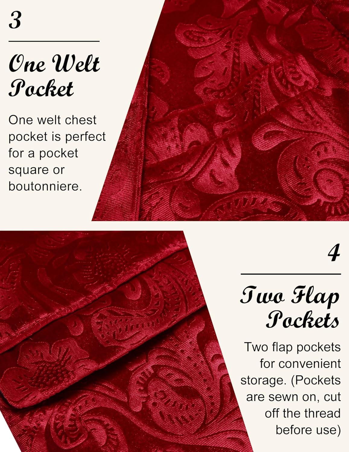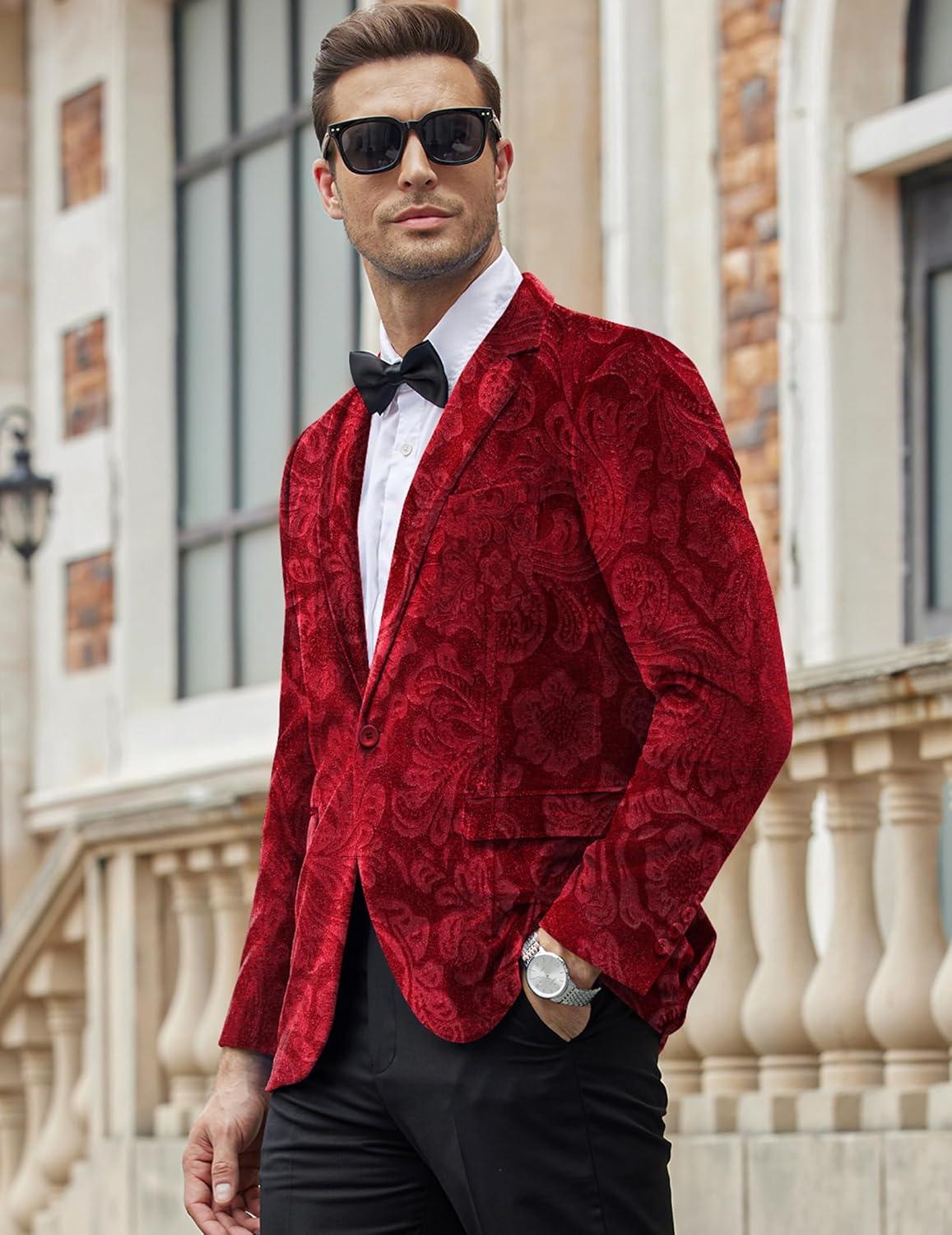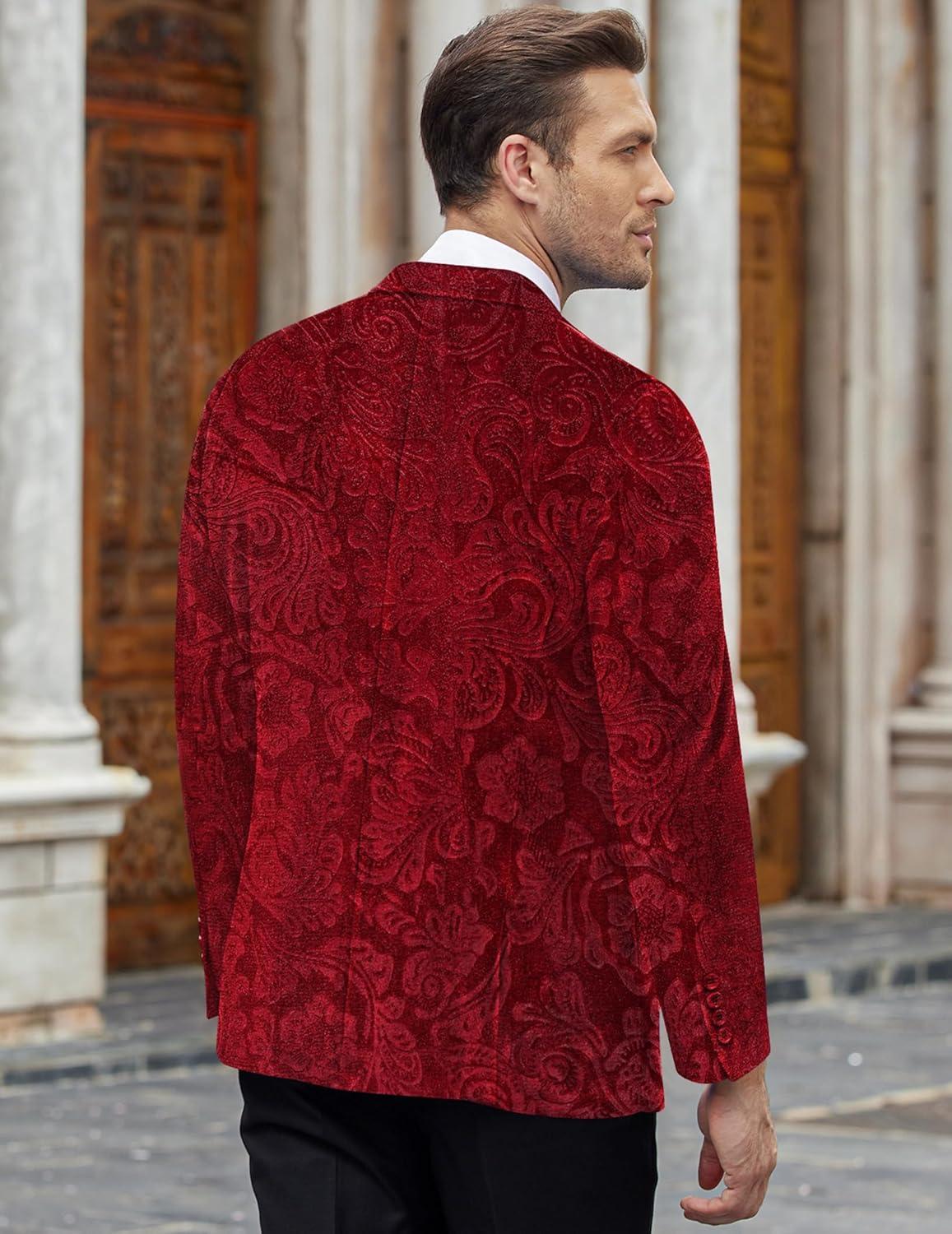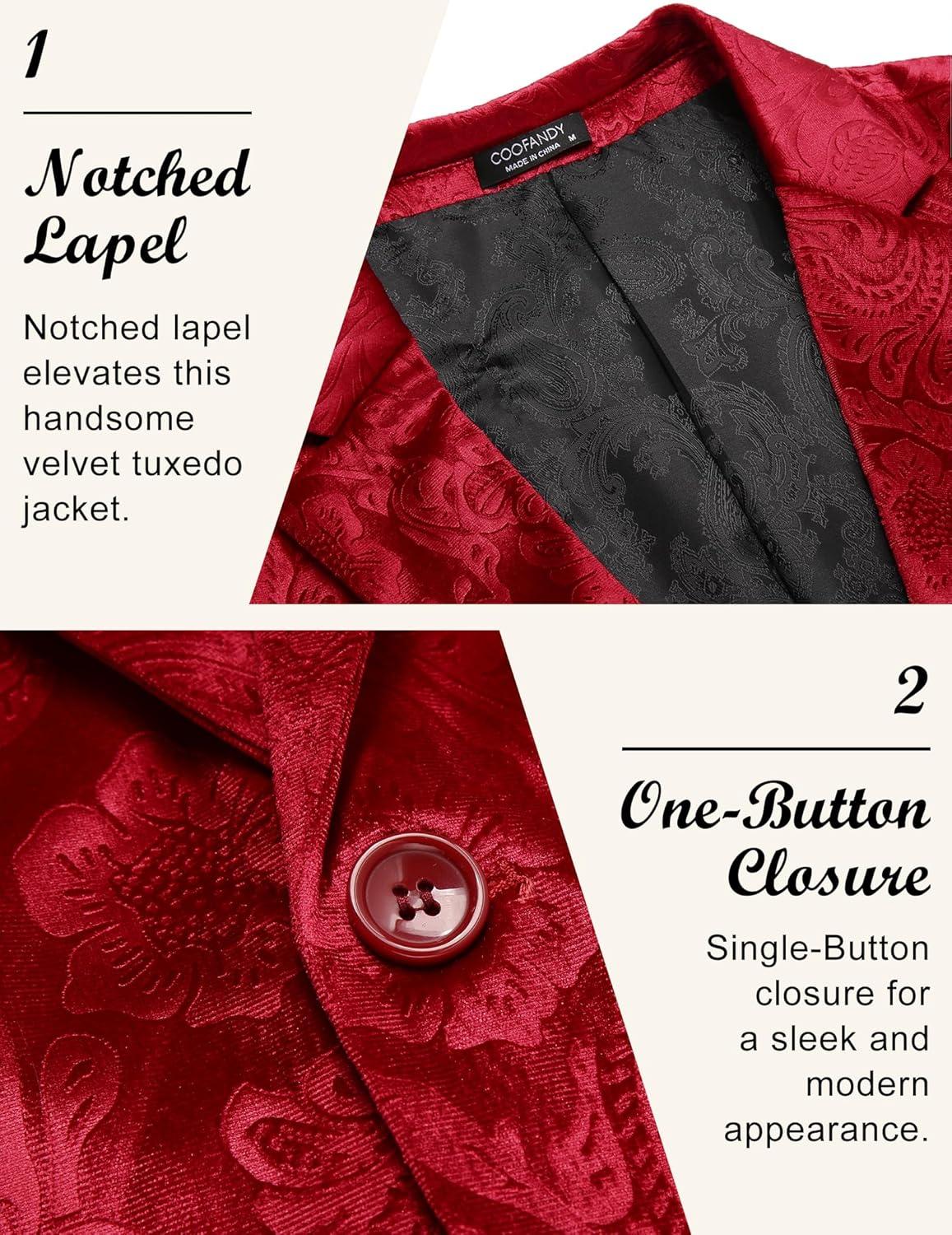 COOFANDY Men’s Velvet Blazer Notched Lapel Velour Suit Jacket One Button Tuxedo Jackets for Wedding Prom Party Dinner(Red Floral)
