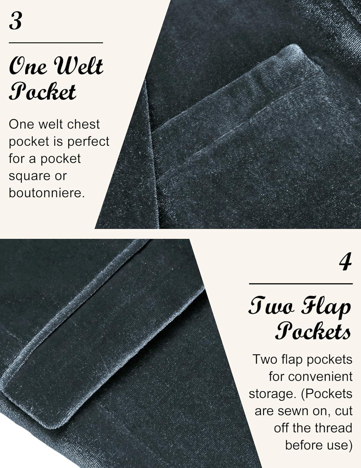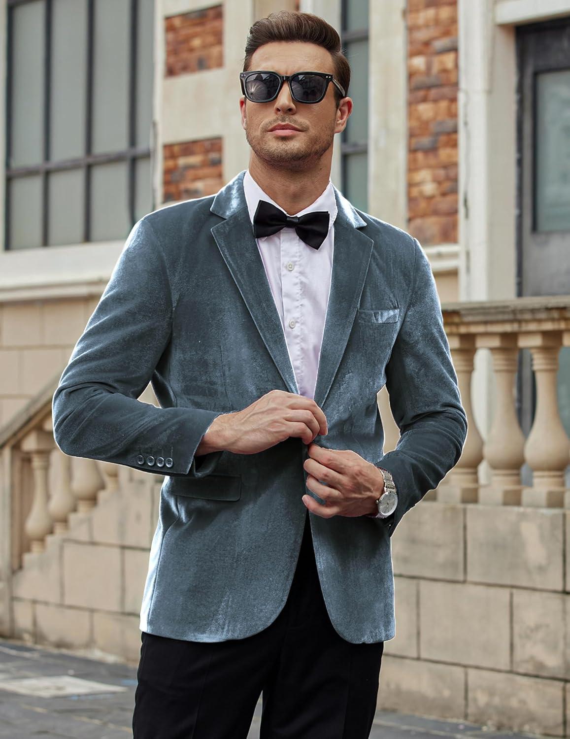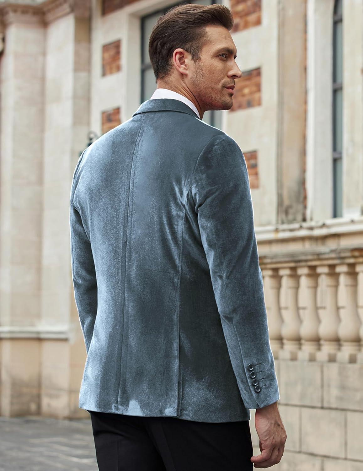 COOFANDY Men’s Velvet Blazer Notched Lapel Velour Suit Jacket One Button Tuxedo Jackets for Wedding Prom Party Dinner(Stone Blue)