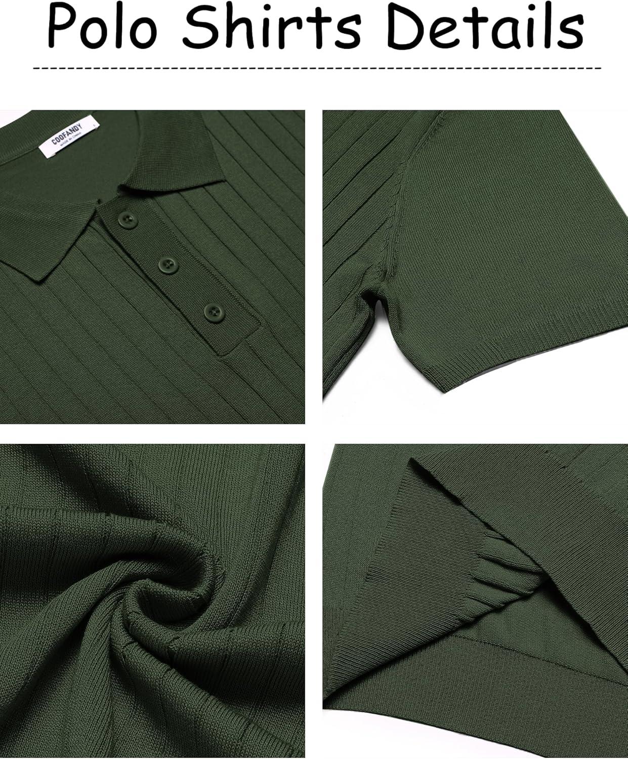 COOFANDY Mens Knit Polo Sweater Long Sleeve Polos Lightweight Casual Dress Pullover Sweaters(Dark Green)
