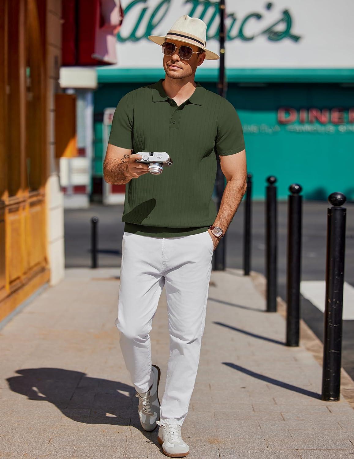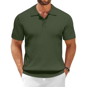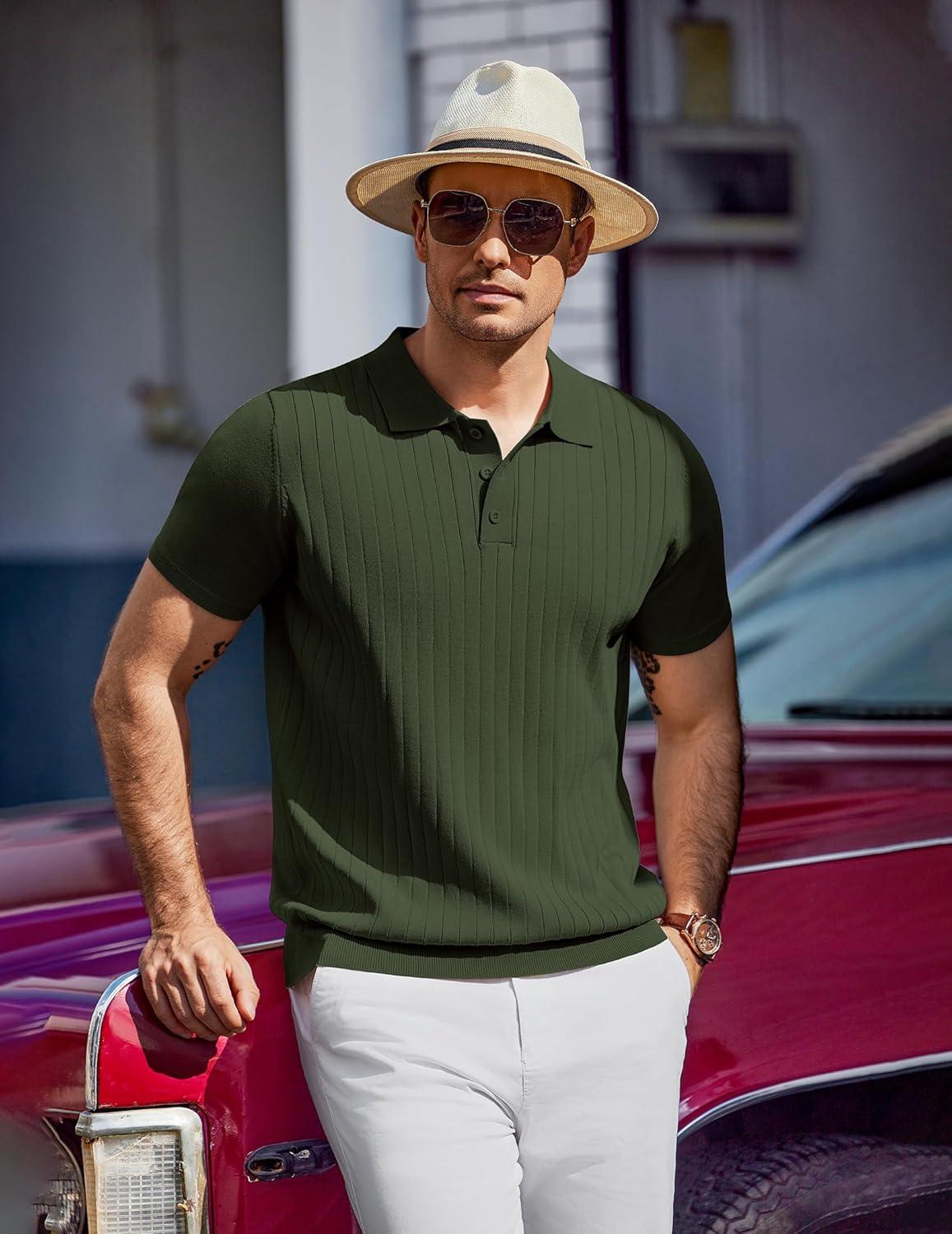 COOFANDY Mens Knit Polo Sweater Long Sleeve Polos Lightweight Casual Dress Pullover Sweaters(Army Green)