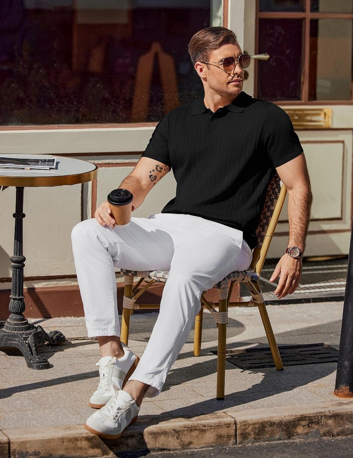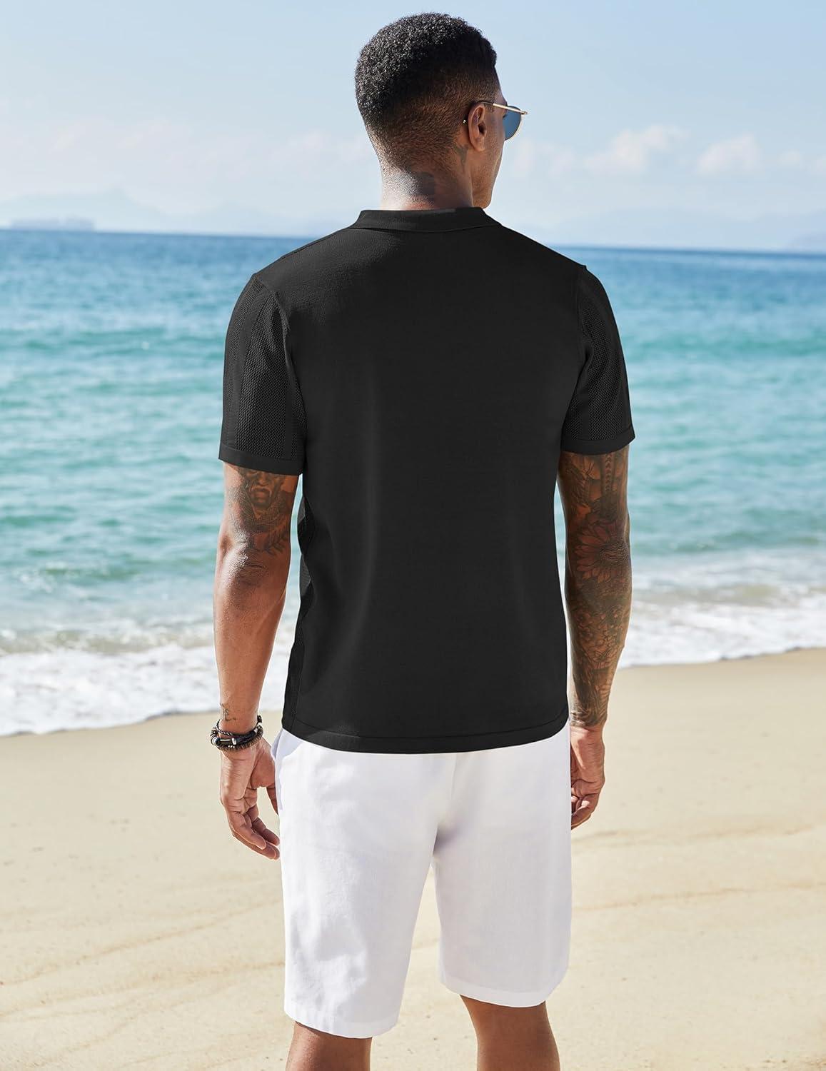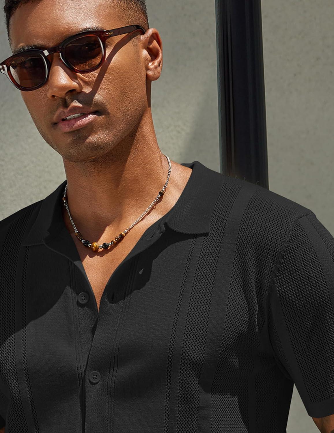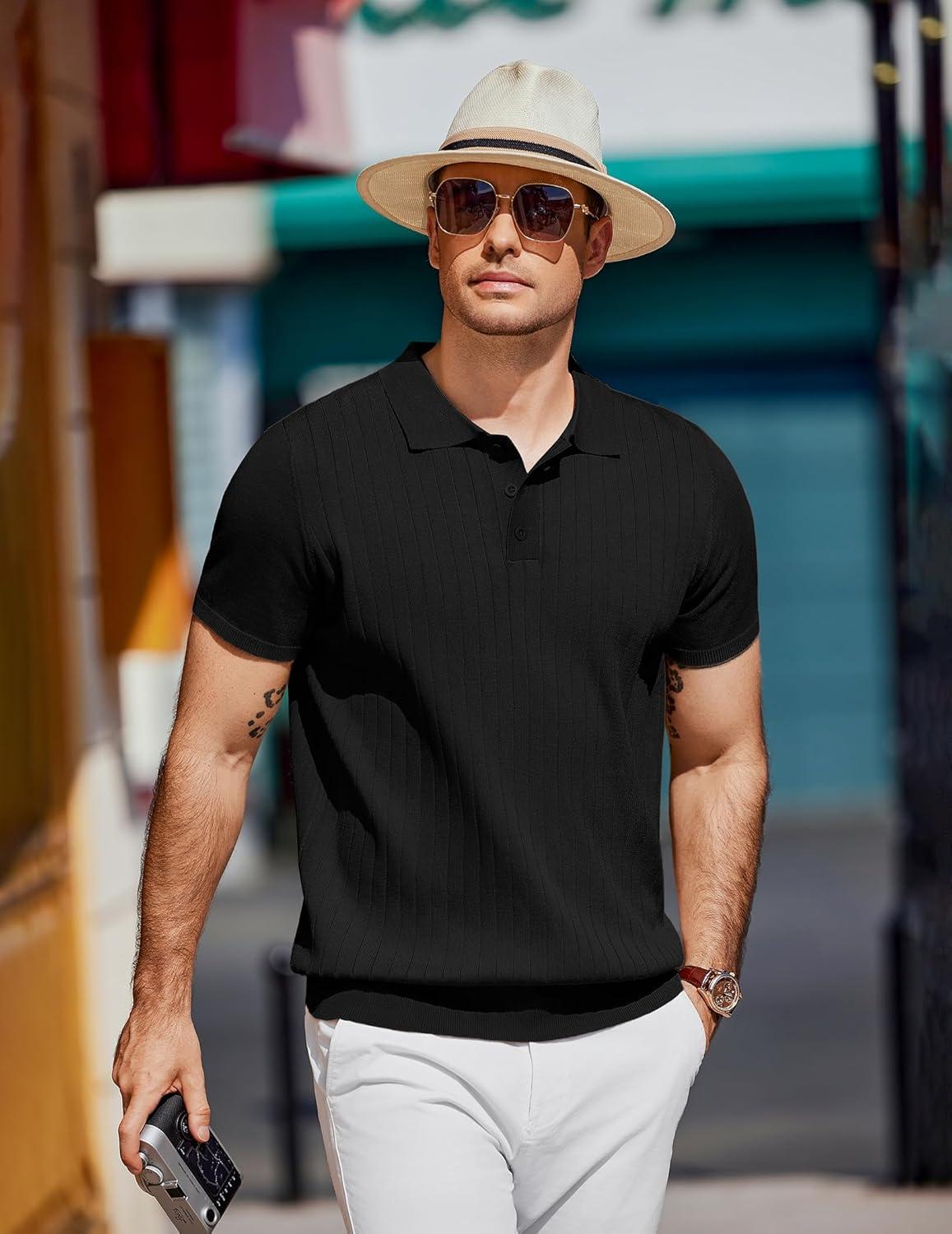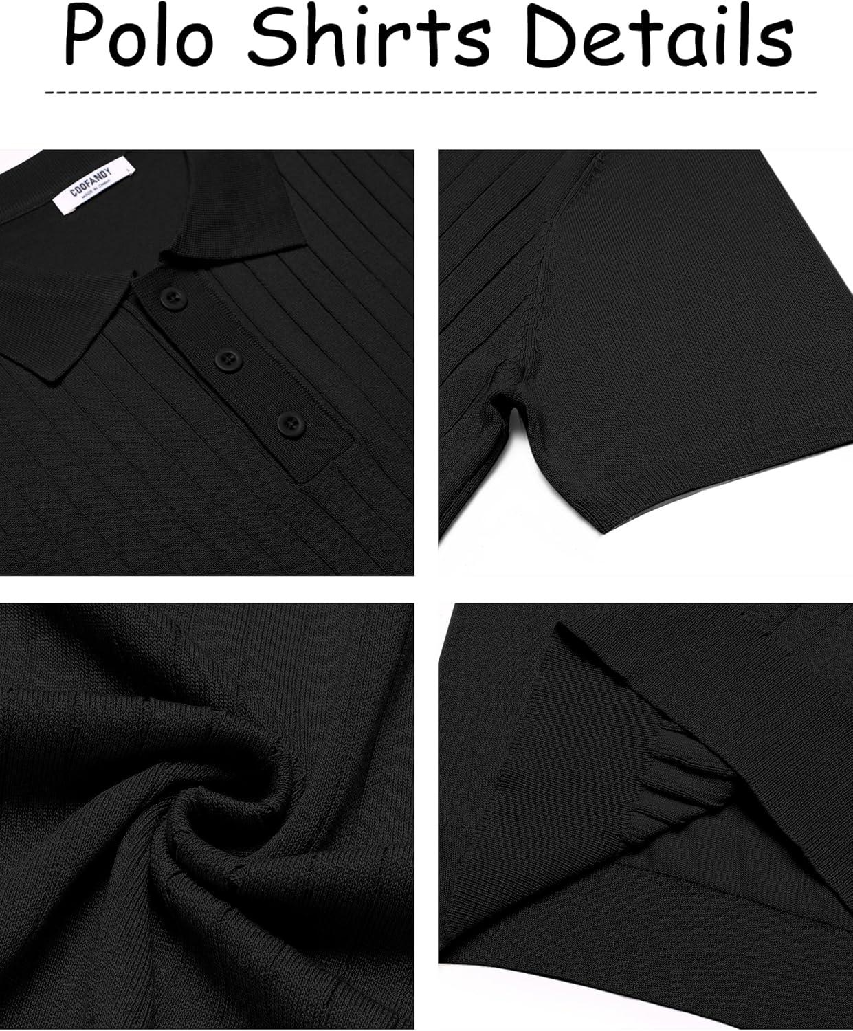 COOFANDY Mens Knit Polo Sweater Long Sleeve Polos Lightweight Casual Dress Pullover Sweaters(Black)