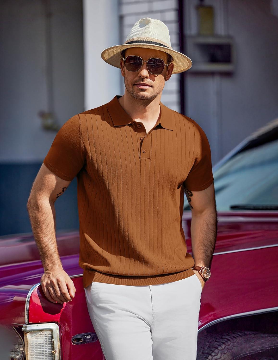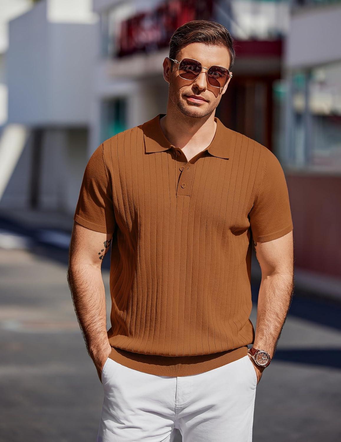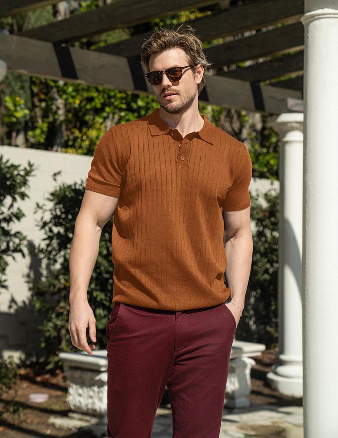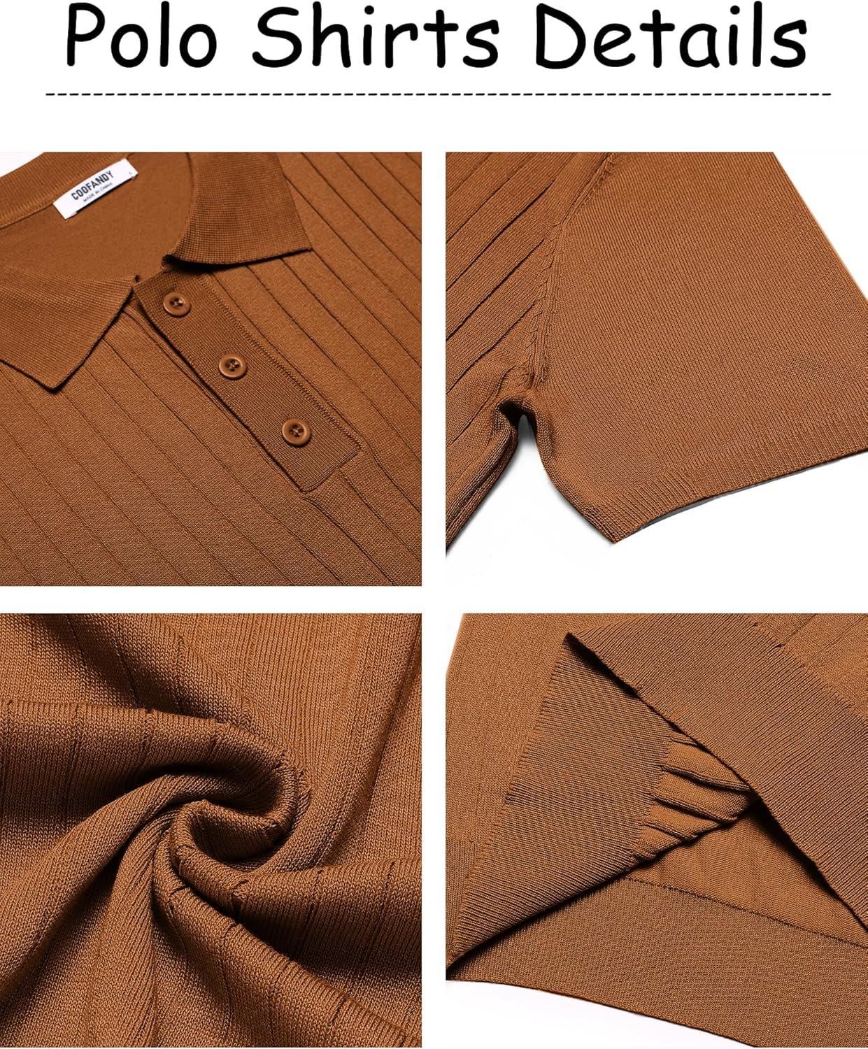 COOFANDY Mens Knit Polo Sweater Long Sleeve Polos Lightweight Casual Dress Pullover Sweaters(Brown)