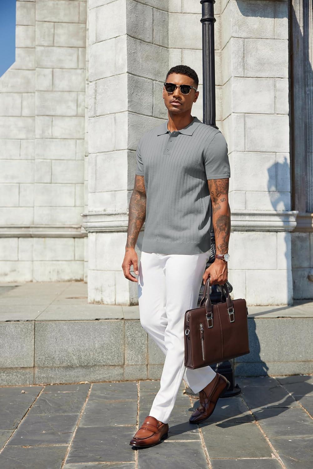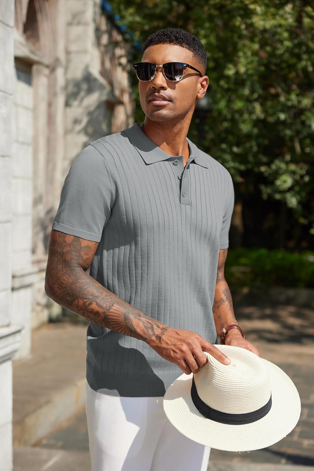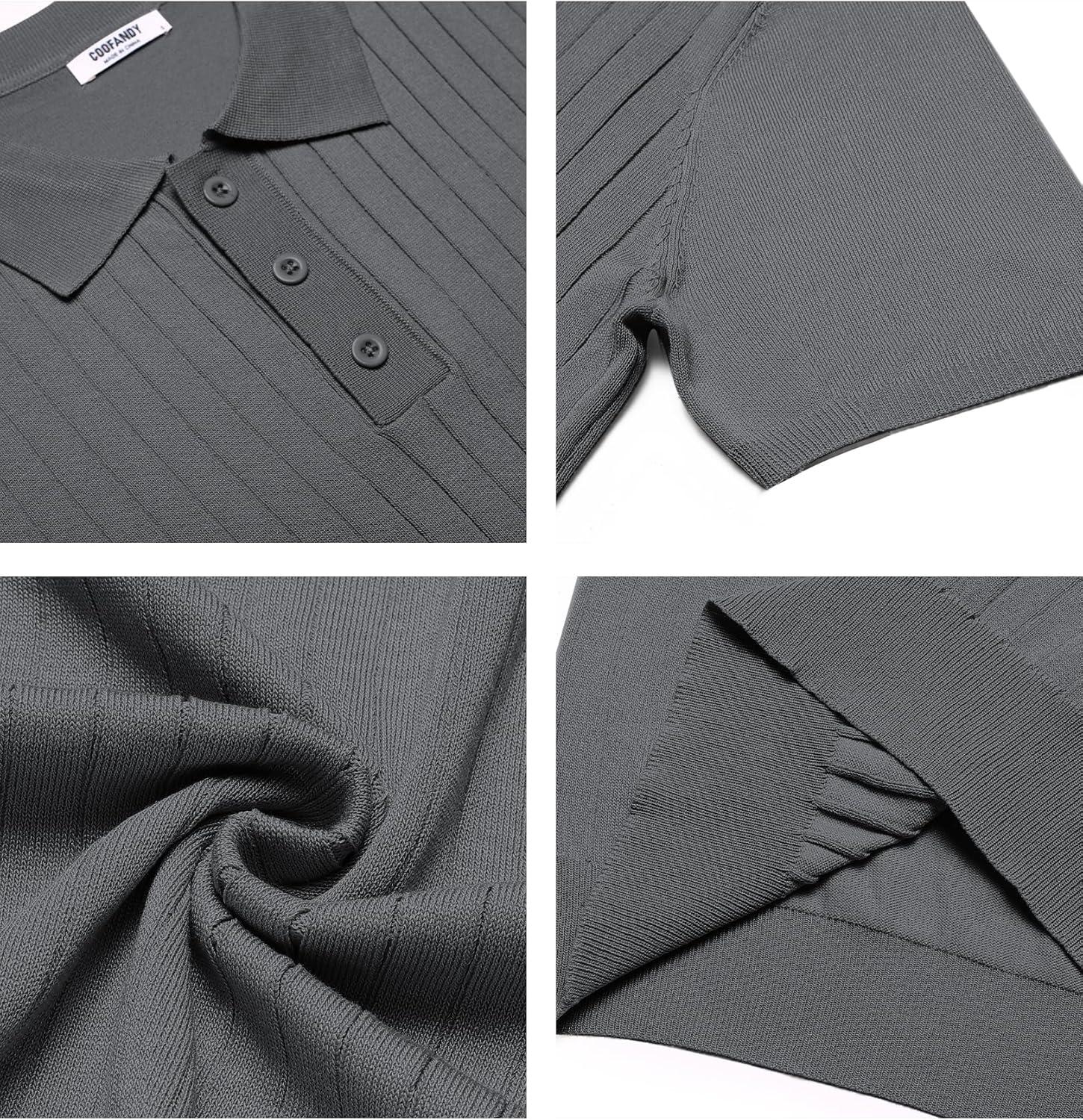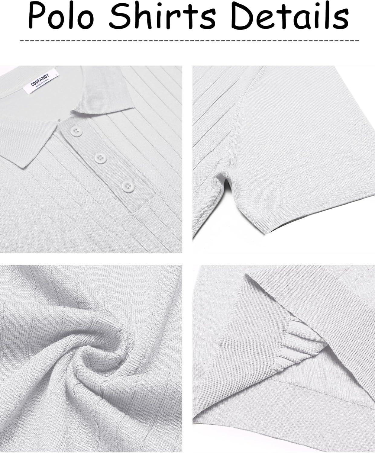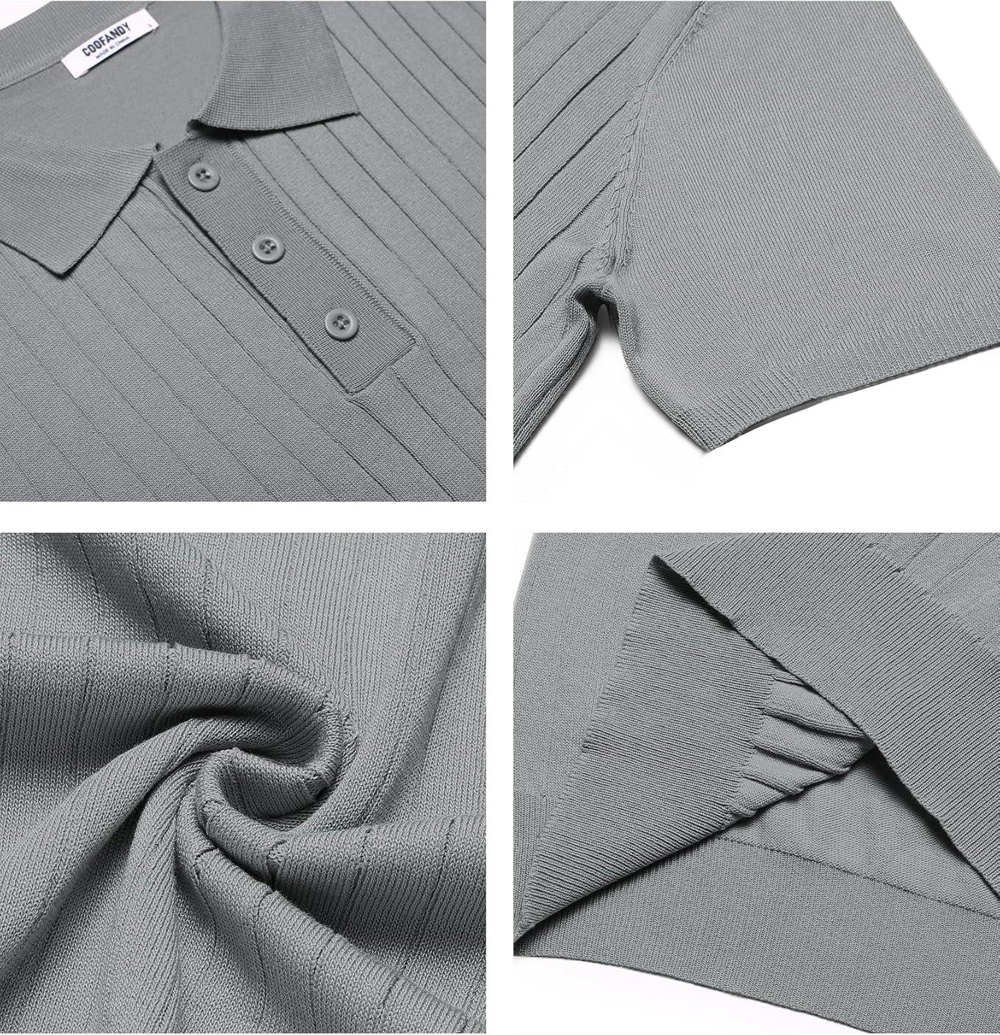 COOFANDY Mens Knit Polo Sweater Long Sleeve Polos Lightweight Casual Dress Pullover Sweaters(Grey)