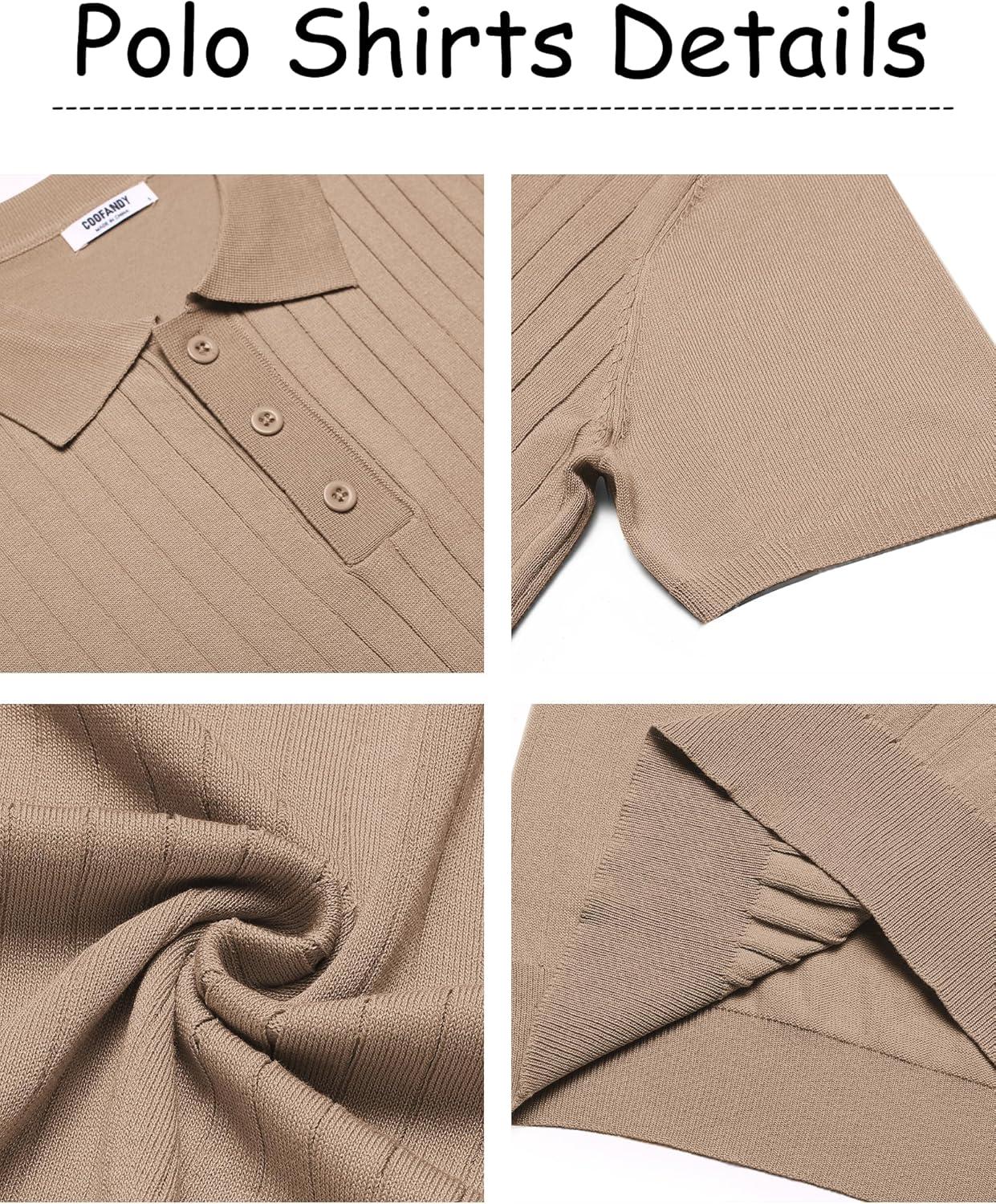 COOFANDY Mens Knit Polo Sweater Long Sleeve Polos Lightweight Casual Dress Pullover Sweaters(Coffee)