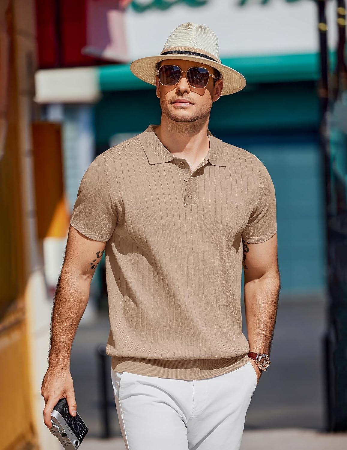 COOFANDY Mens Knit Polo Sweater Long Sleeve Polos Lightweight Casual Dress Pullover Sweaters(Khaki)