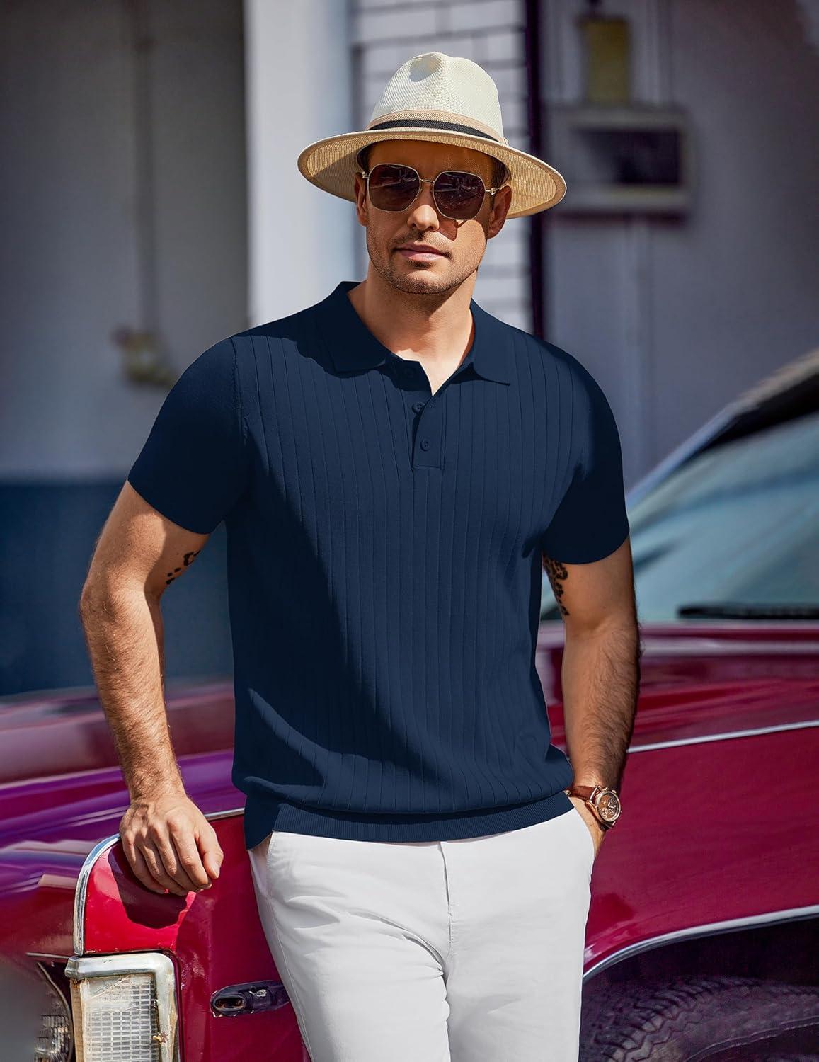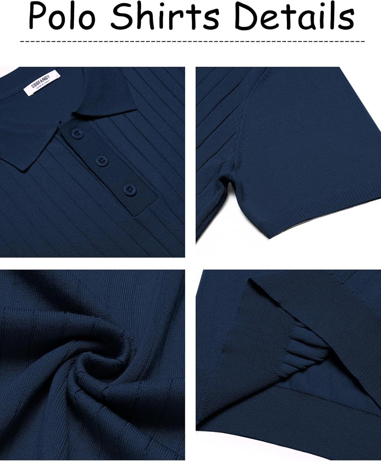 COOFANDY Mens Knit Polo Sweater Long Sleeve Polos Lightweight Casual Dress Pullover Sweaters(Navy Blue)