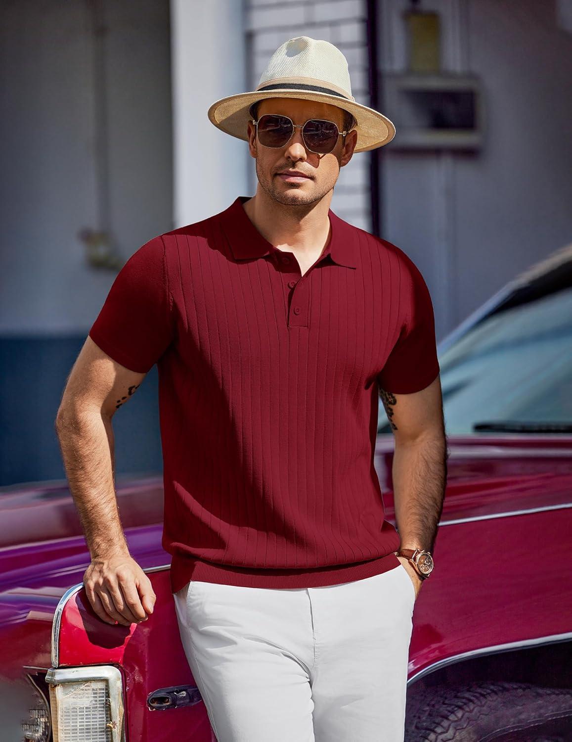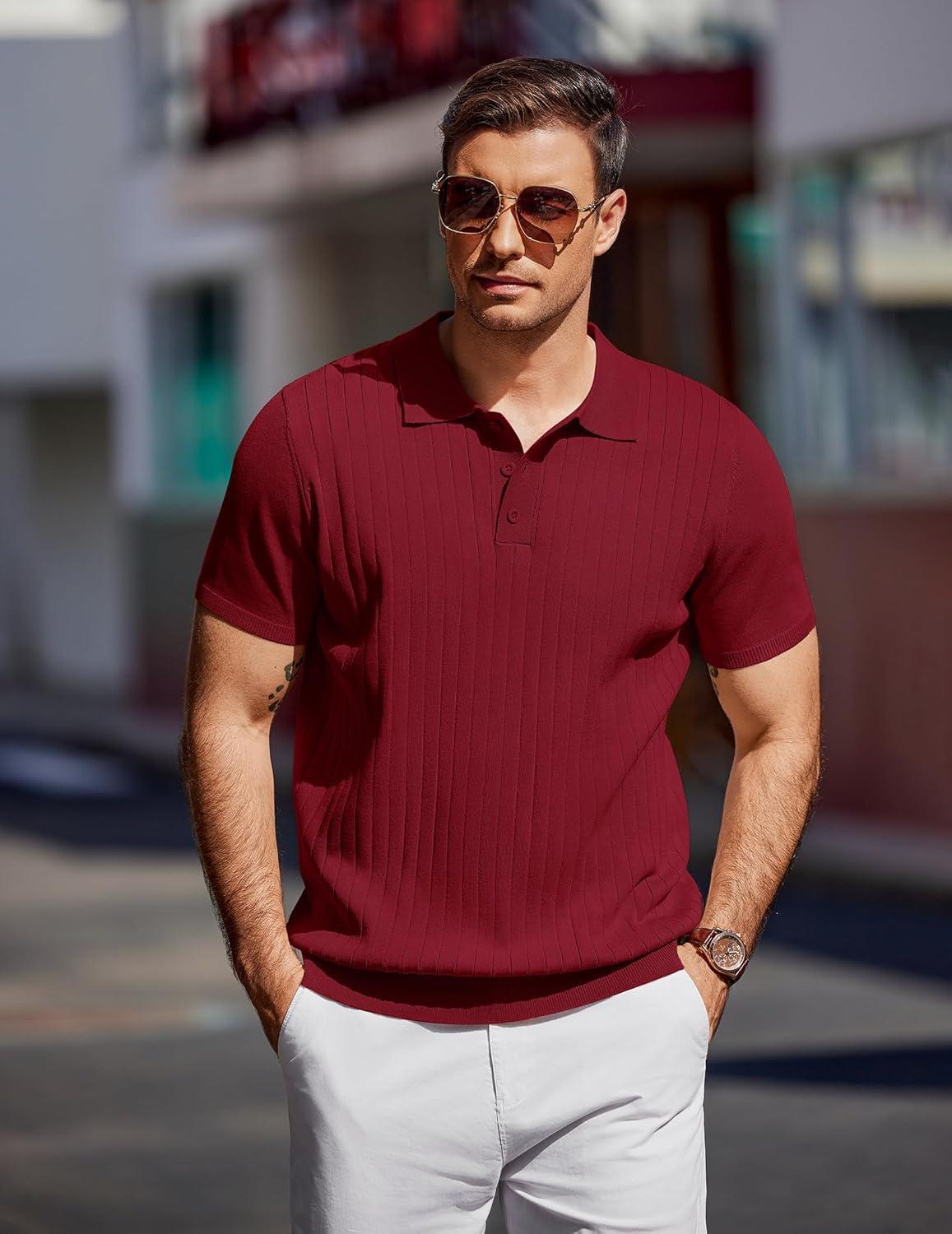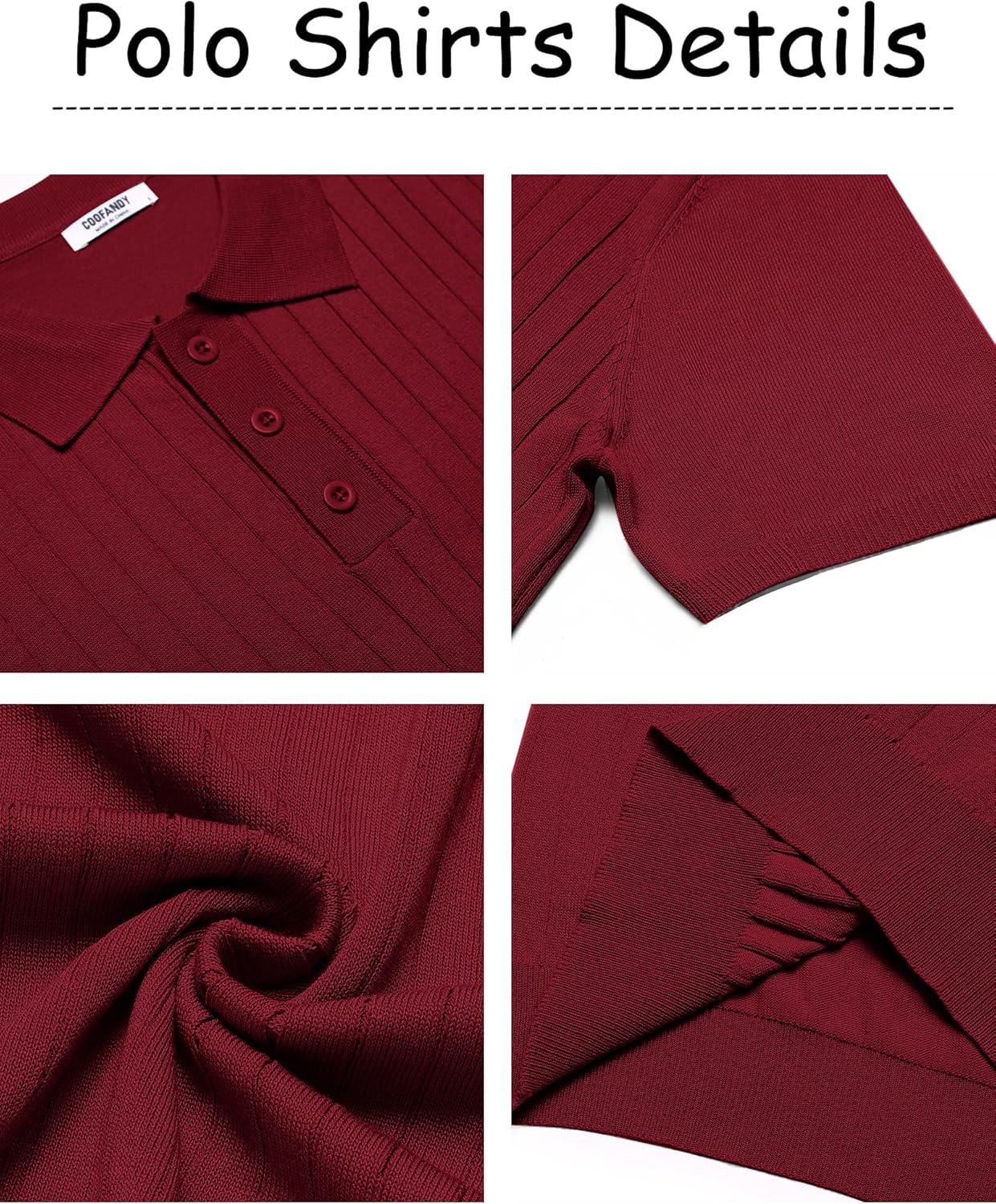 COOFANDY Mens Knit Polo Sweater Long Sleeve Polos Lightweight Casual Dress Pullover Sweaters(Red)