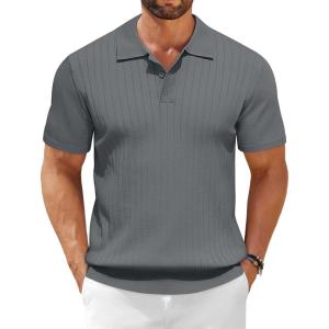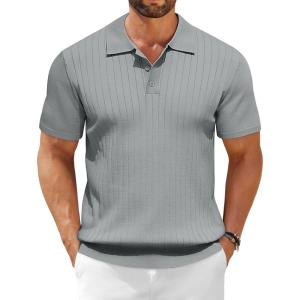 COOFANDY Men Long Sleeve Polo Sweater Knitted Polo Slim Fit Waffle Collared Pullover Sweater(Grey)