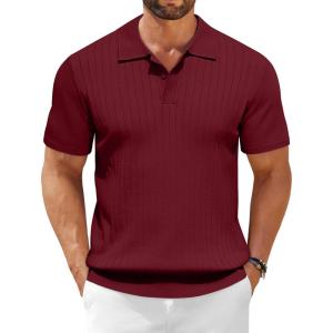 COOFANDY Men Long Sleeve Polo Sweater Knitted Polo Slim Fit Waffle Collared Pullover Sweater(Dark Red)