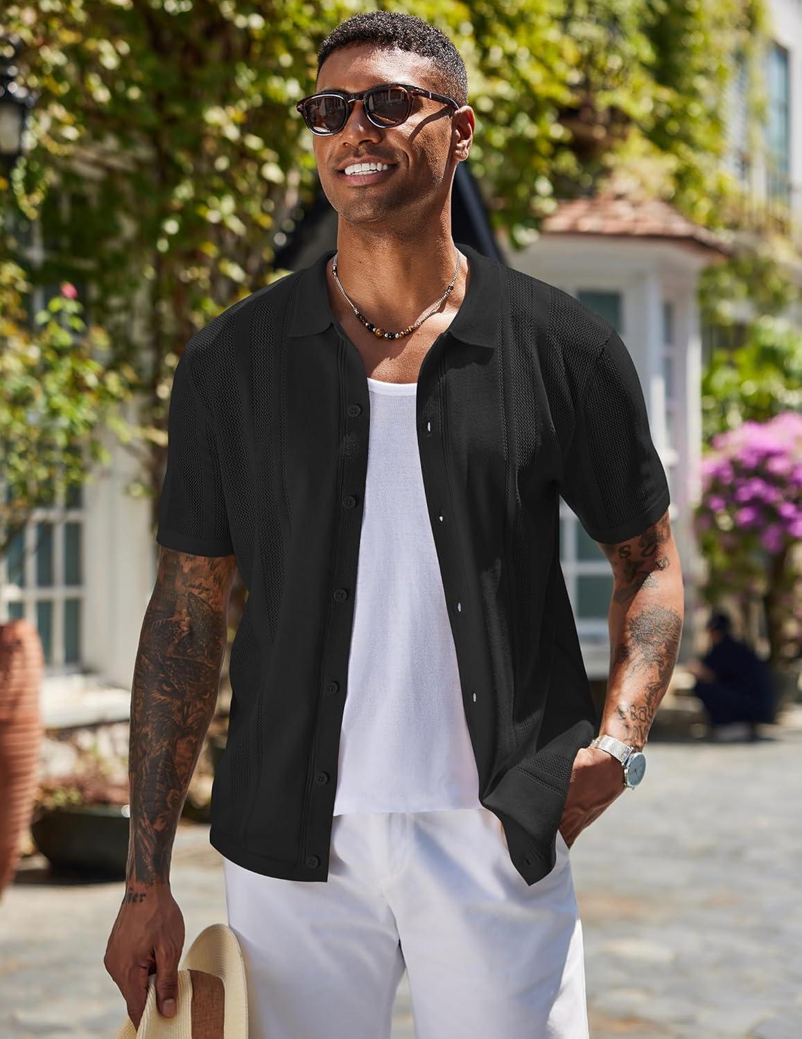 COOFANDY Mens Short Sleeve Dress Shirts Button Down Shirts Regular Fit Business Casual Shirt with Pocket(Black)
