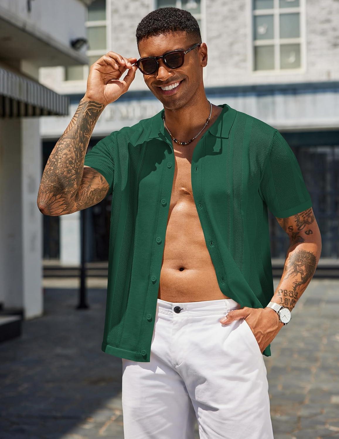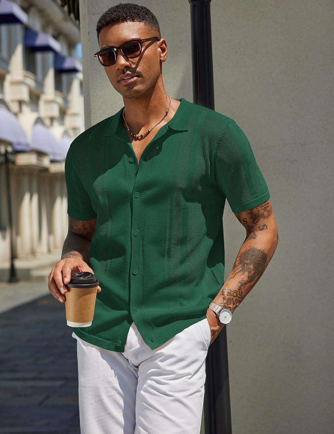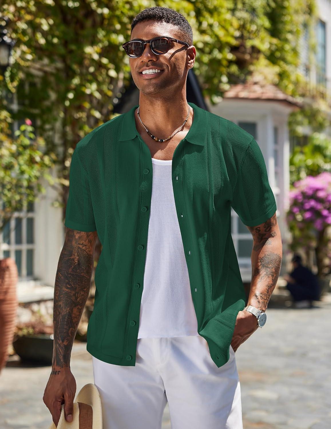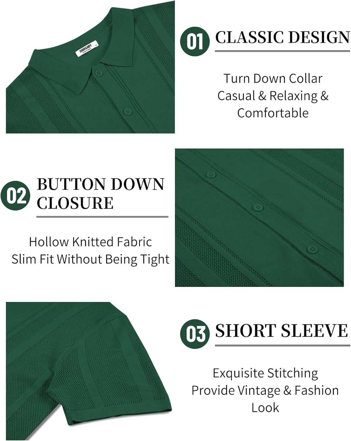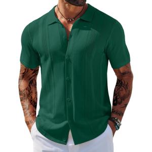 COOFANDY Mens Short Sleeve Dress Shirts Button Down Shirts Regular Fit Business Casual Shirt with Pocket(Dark Green)