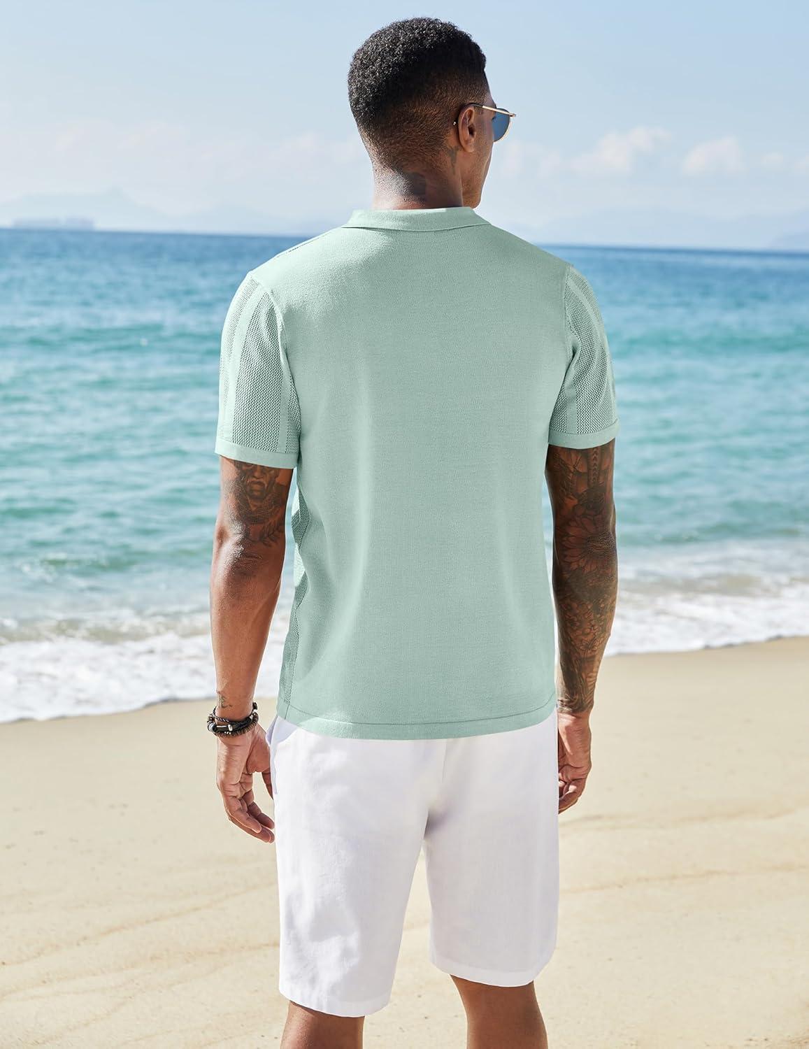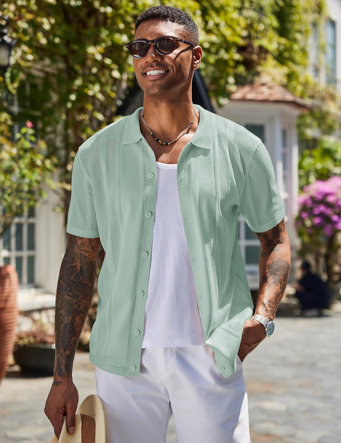 COOFANDY Mens Short Sleeve Dress Shirts Button Down Shirts Regular Fit Business Casual Shirt with Pocket(Light Green)