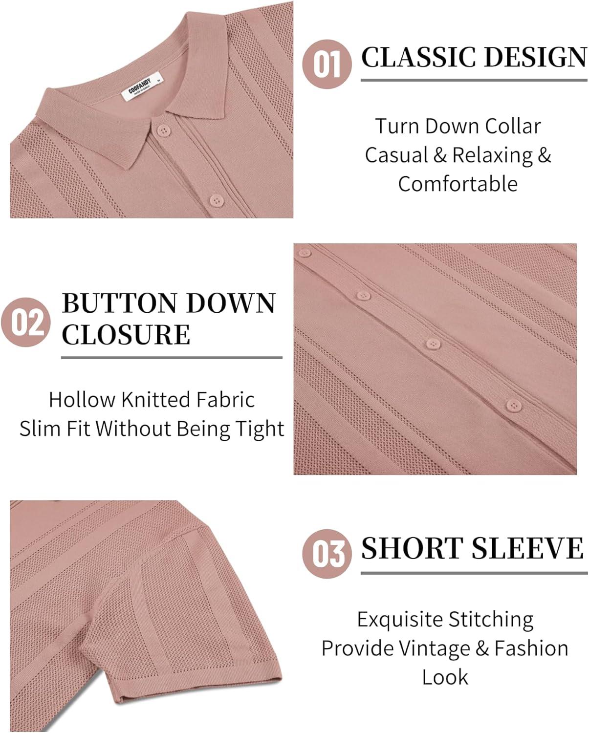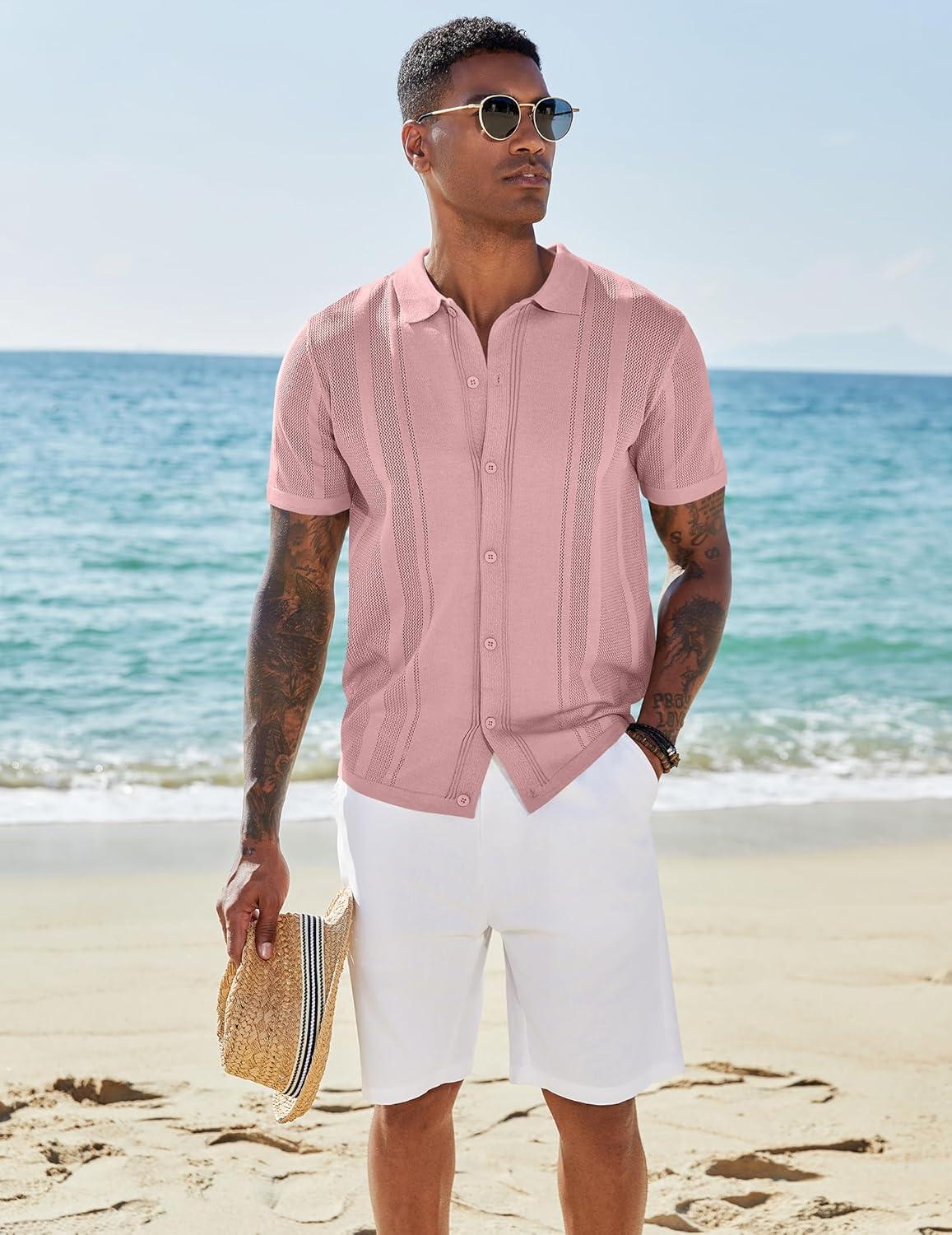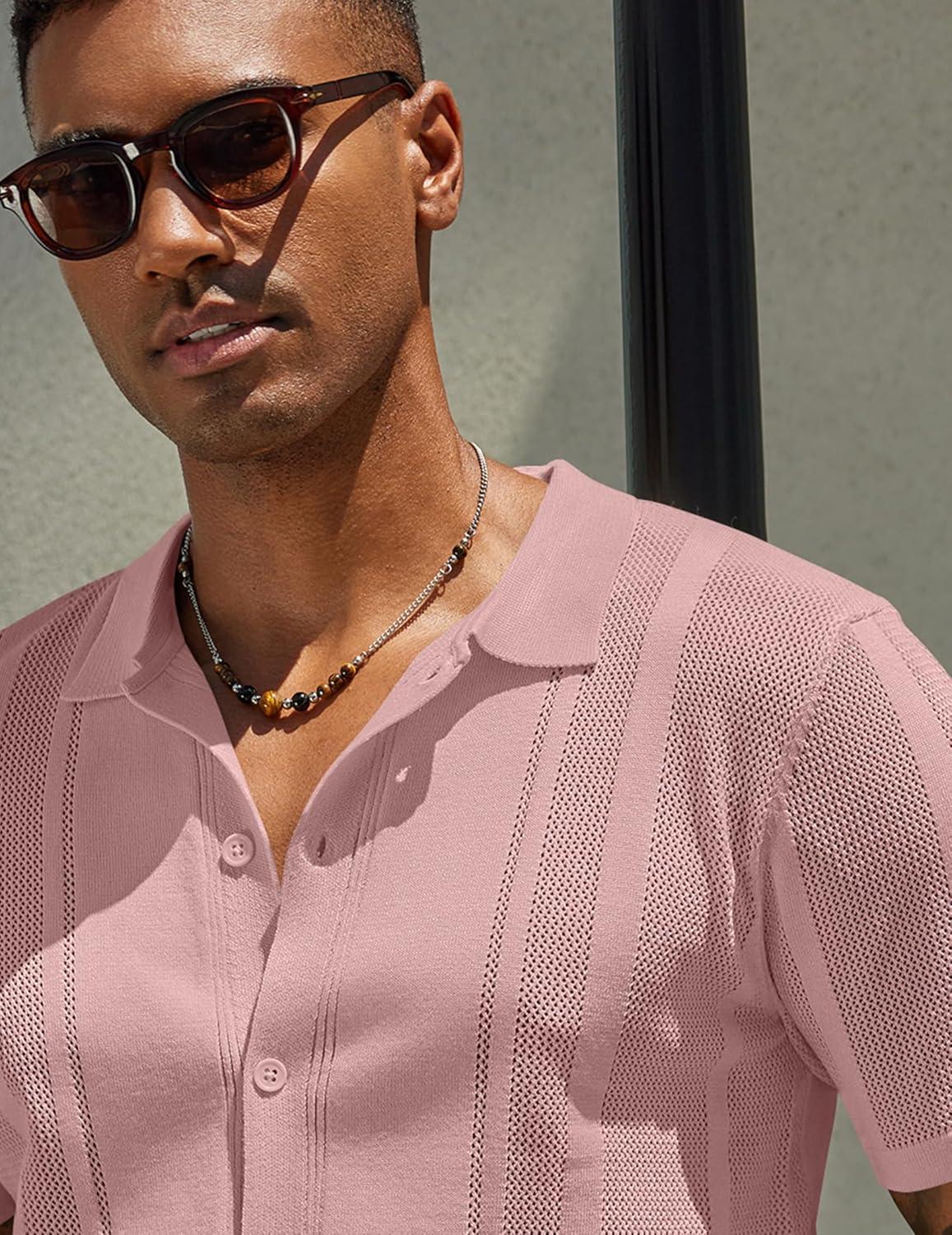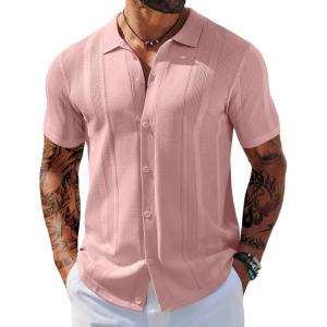 COOFANDY Mens Short Sleeve Dress Shirts Button Down Shirts Regular Fit Business Casual Shirt with Pocket(Pink)