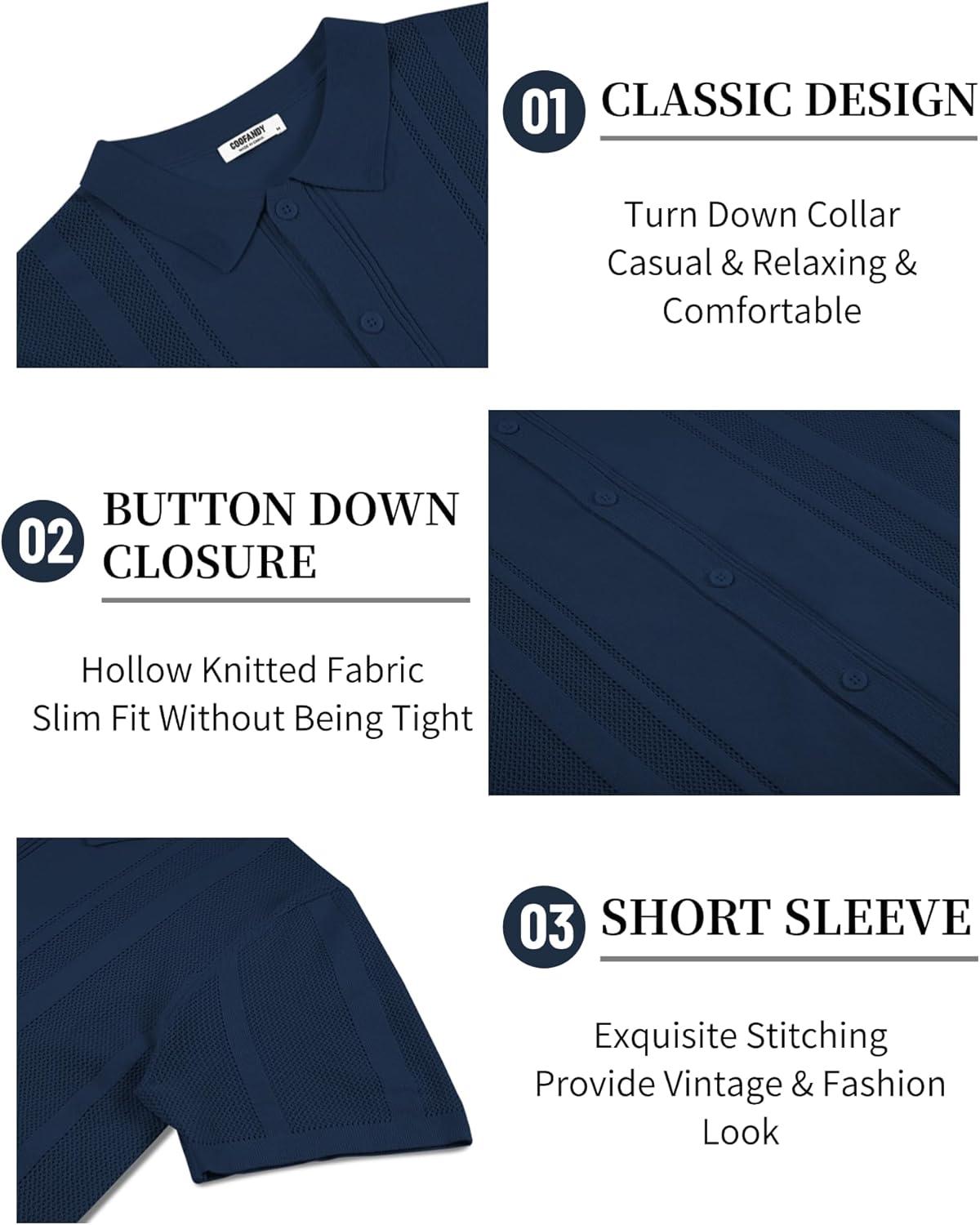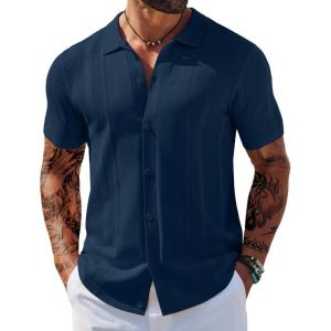 COOFANDY Mens Short Sleeve Dress Shirts Button Down Shirts Regular Fit Business Casual Shirt with Pocket(Navy)