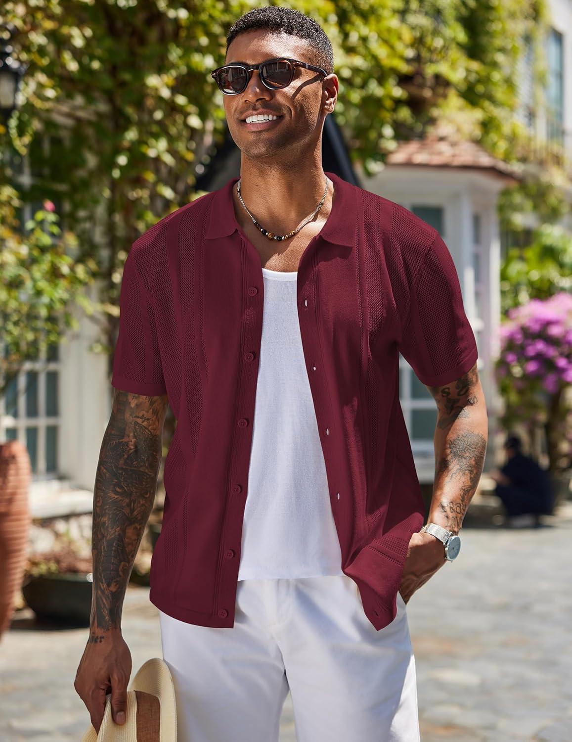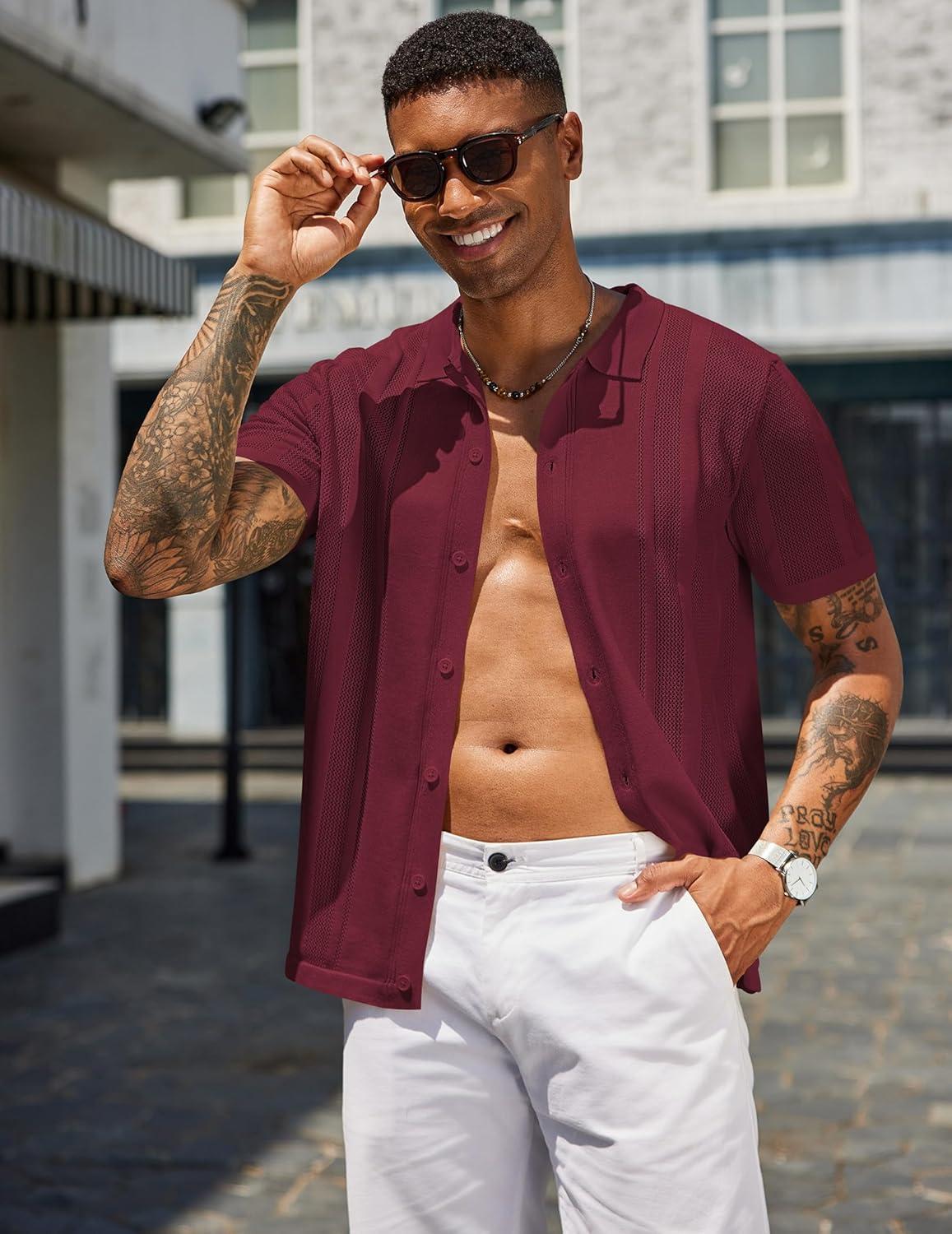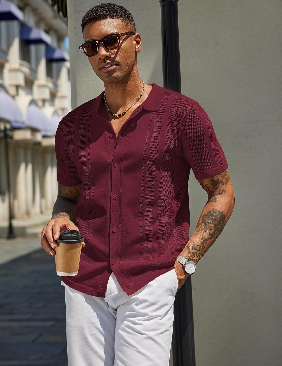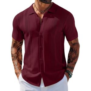 COOFANDY Mens Short Sleeve Dress Shirts Button Down Shirts Regular Fit Business Casual Shirt with Pocket(Wine Red)