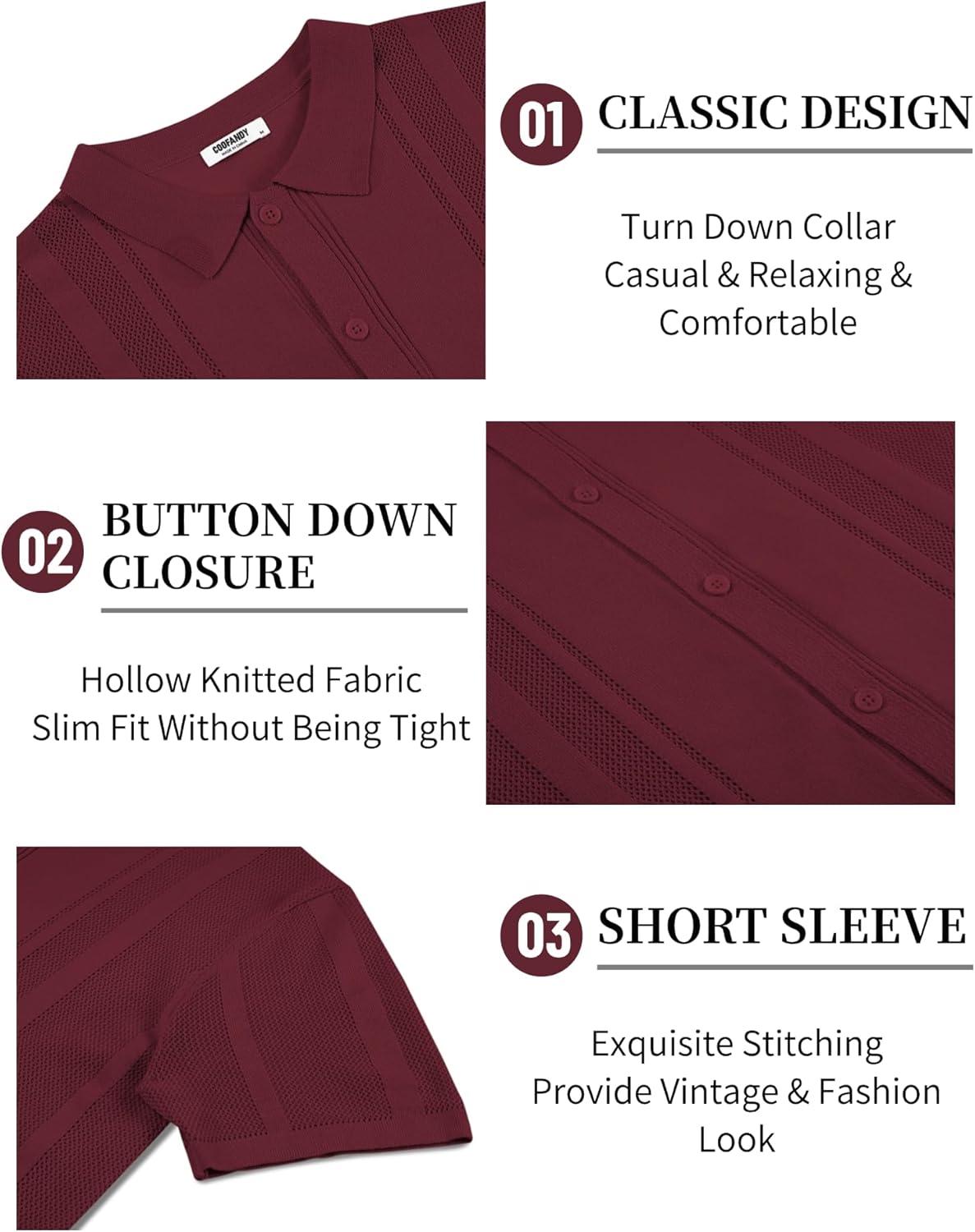 COOFANDY Mens Short Sleeve Dress Shirts Button Down Shirts Regular Fit Business Casual Shirt with Pocket(Dark Red)