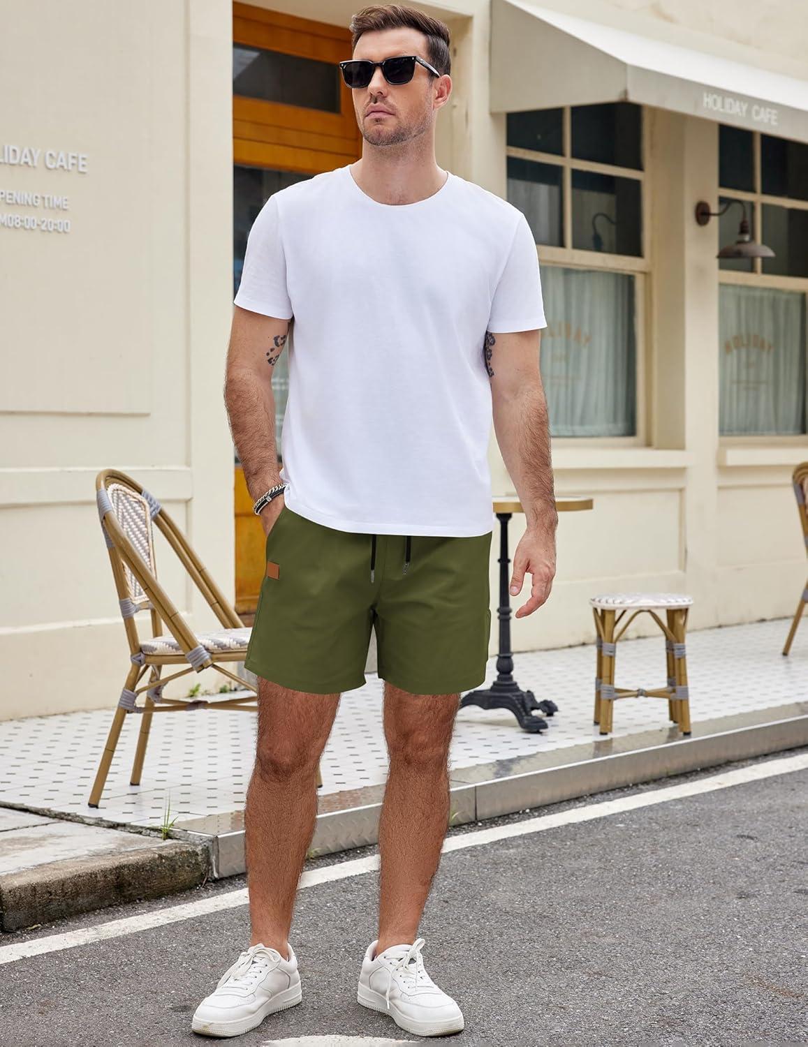 COOFANDY Men’s Casual Cotton Shorts 5 Inch Summer Beach Shorts Lightweight Drawstring Elastic Waist Chino Golf Shorts(Army Green)
