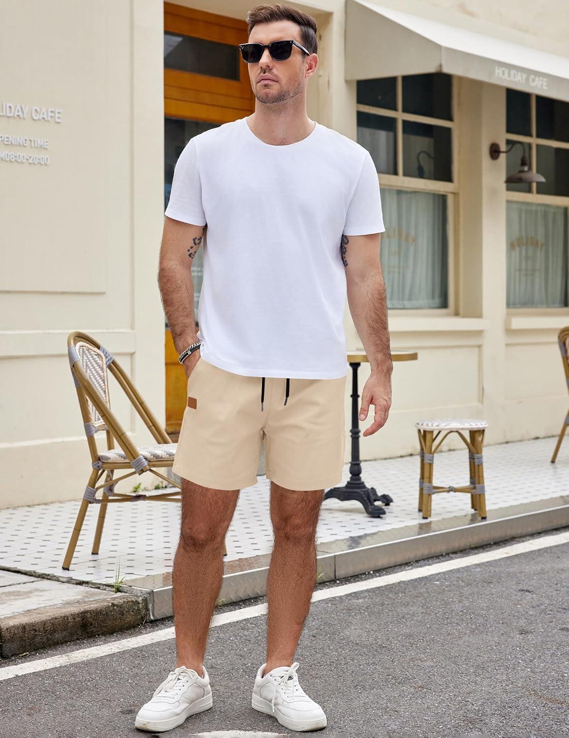 COOFANDY Men’s Casual Cotton Shorts 5 Inch Summer Beach Shorts Lightweight Drawstring Elastic Waist Chino Golf Shorts(Beige)