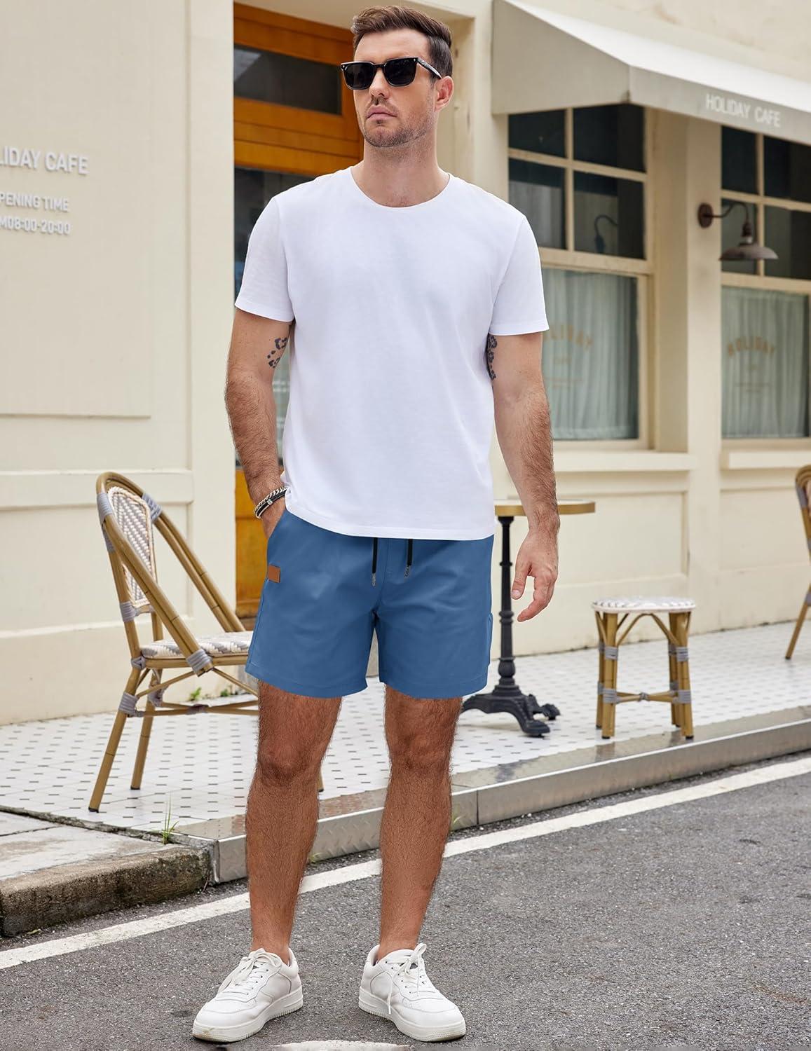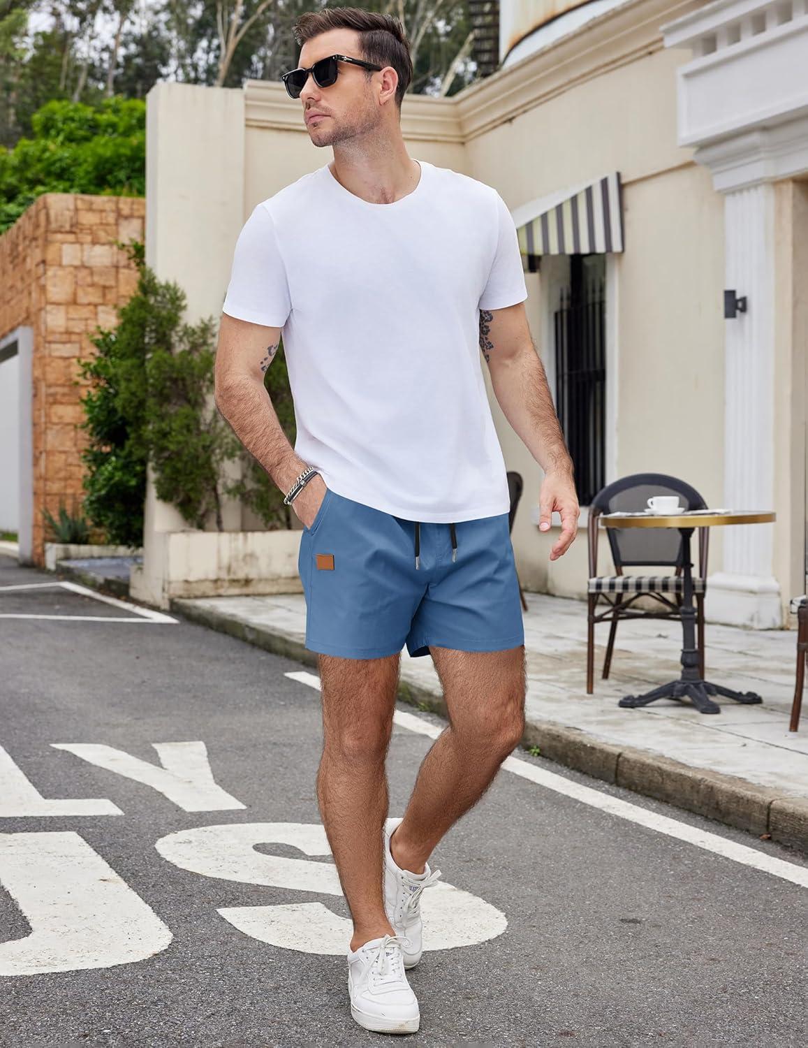 COOFANDY Men’s Casual Cotton Shorts 5 Inch Summer Beach Shorts Lightweight Drawstring Elastic Waist Chino Golf Shorts(Blue)