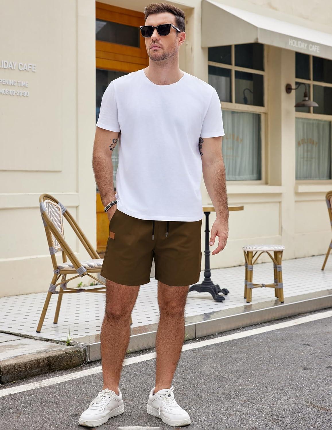 COOFANDY Men’s Casual Cotton Shorts 5 Inch Summer Beach Shorts Lightweight Drawstring Elastic Waist Chino Golf Shorts(Brown)