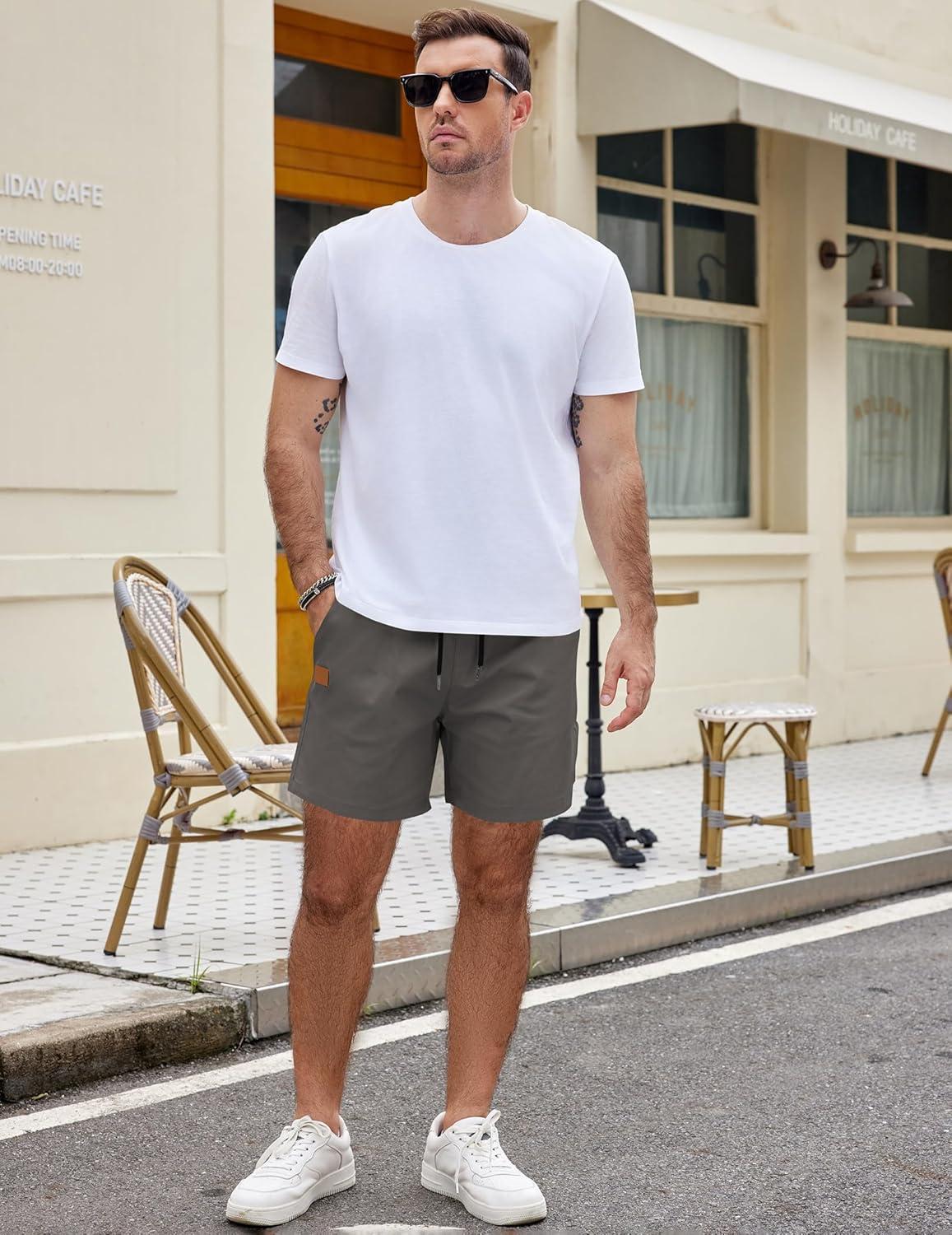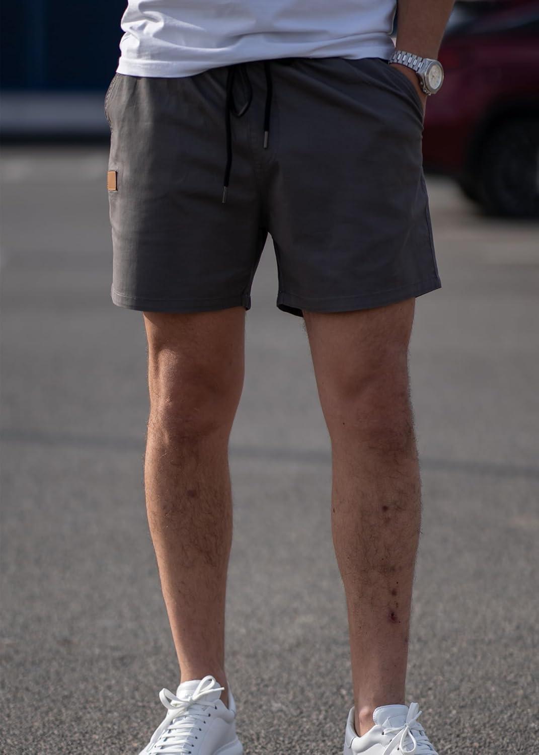 COOFANDY Men’s Casual Cotton Shorts 5 Inch Summer Beach Shorts Lightweight Drawstring Elastic Waist Chino Golf Shorts(Deep Grey)