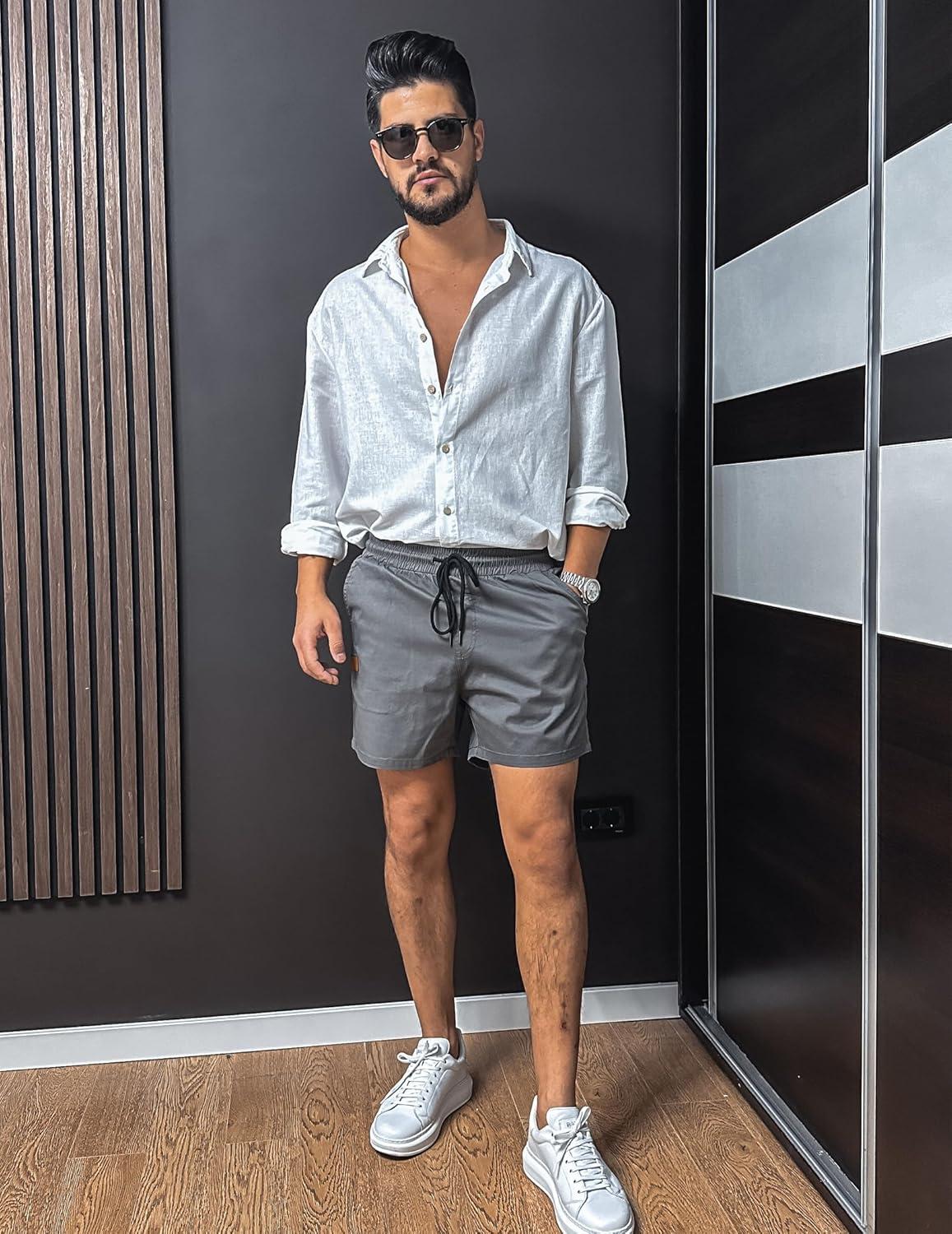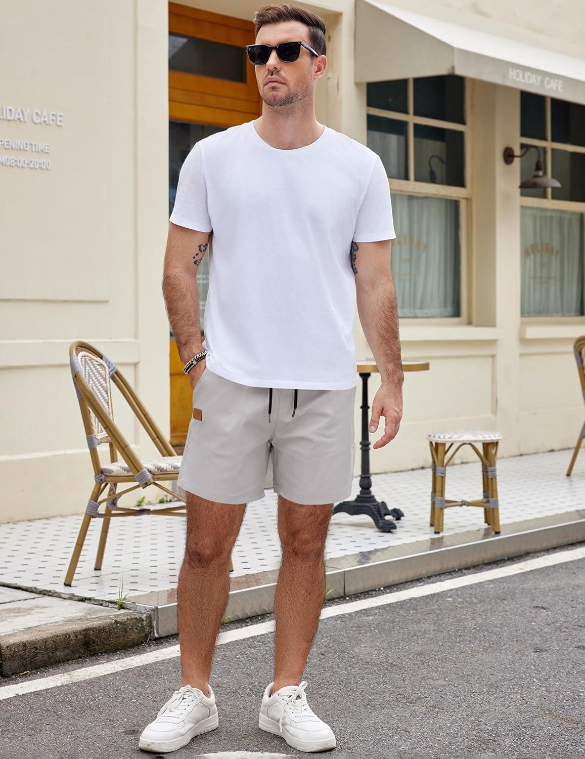 COOFANDY Men’s Casual Cotton Shorts 5 Inch Summer Beach Shorts Lightweight Drawstring Elastic Waist Chino Golf Shorts(Light Grey)