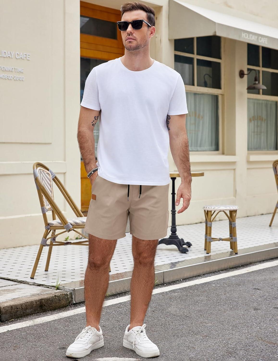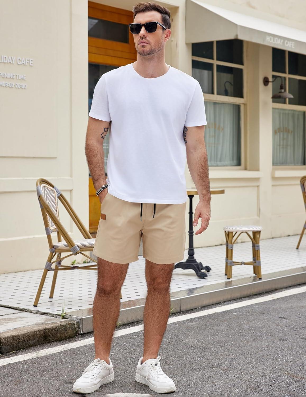 COOFANDY Men’s Casual Cotton Shorts 5 Inch Summer Beach Shorts Lightweight Drawstring Elastic Waist Chino Golf Shorts(Khaki)
