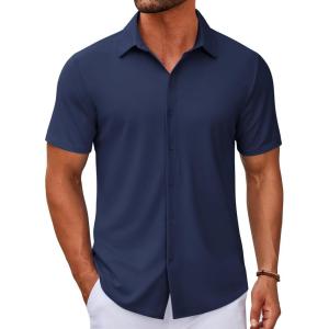 COOFANDY Men’s Casual Button Down Short Sleeve Shirts Untucked Wrinkle Free Shirt Stretch Dress Shirts