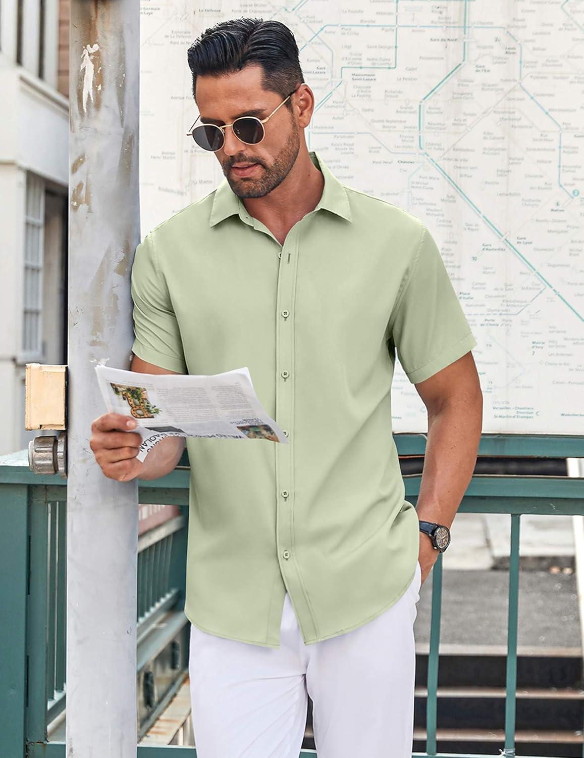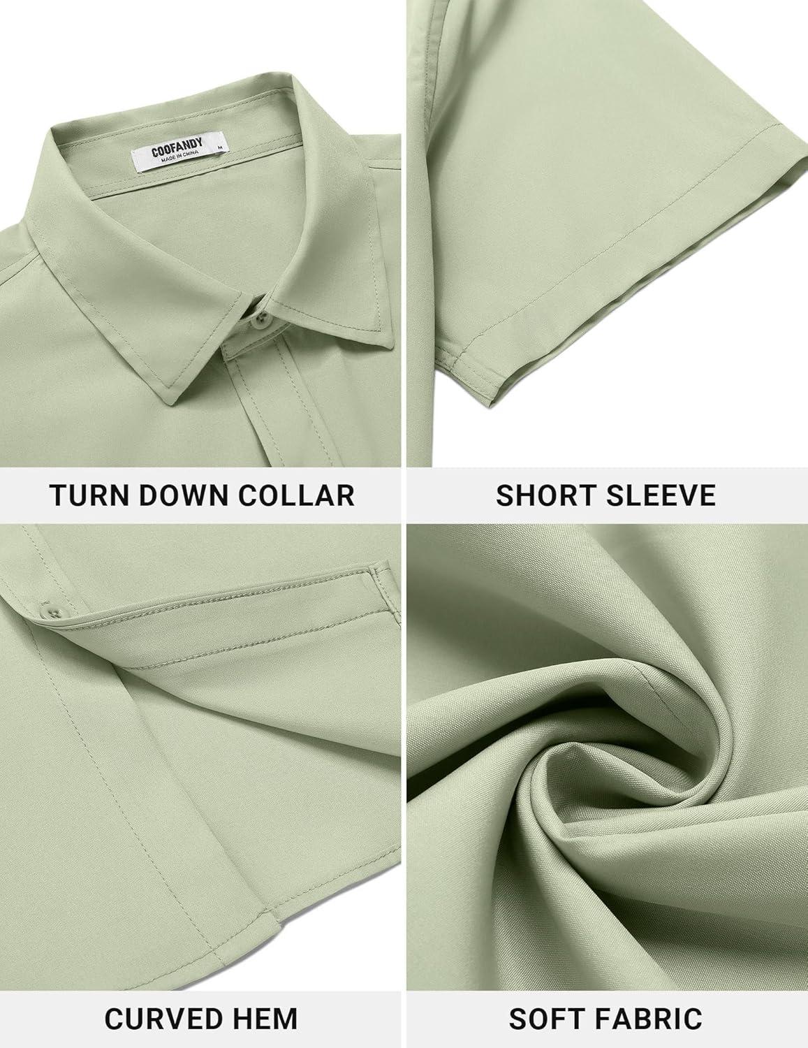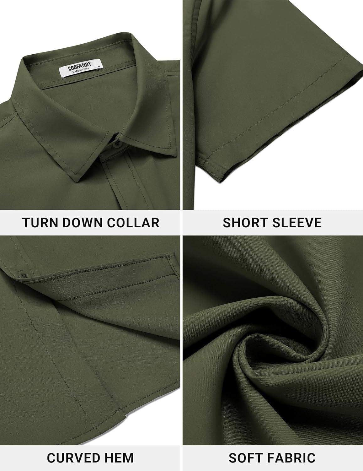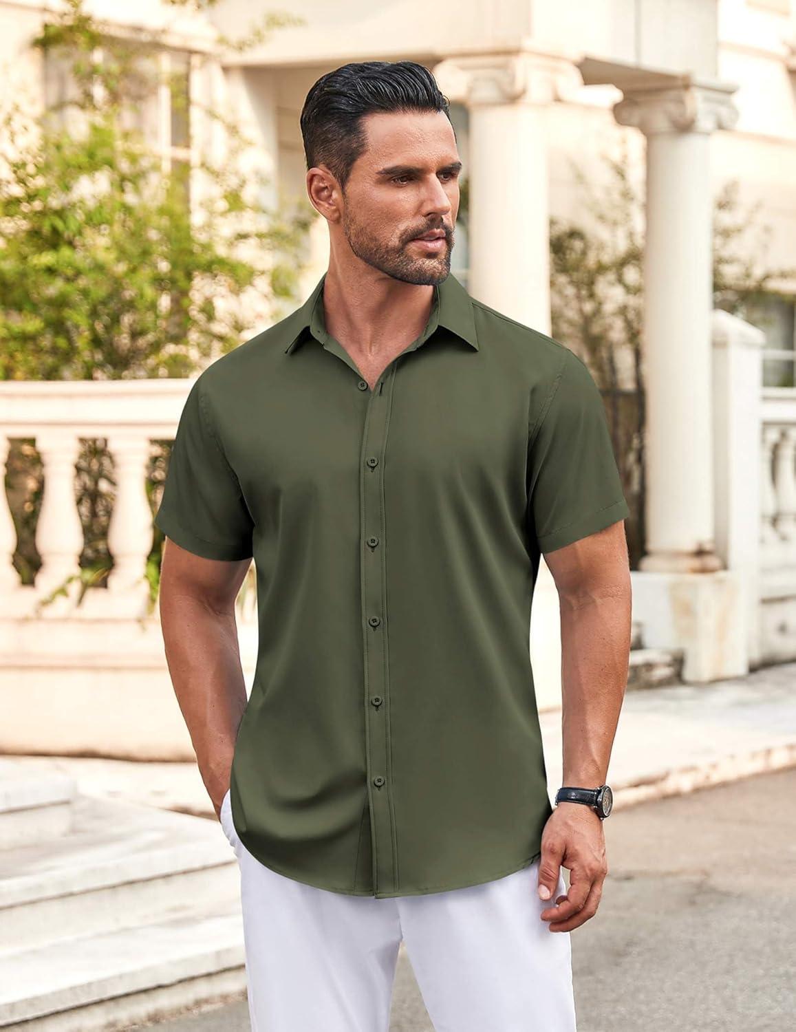 • COOFANDY Men’s Button Down Shirt Short Sleeve Dress Shirt Casual Beach Summer Wedding Shirt(Army Green)
