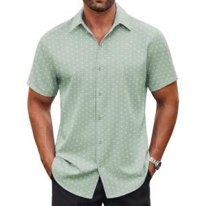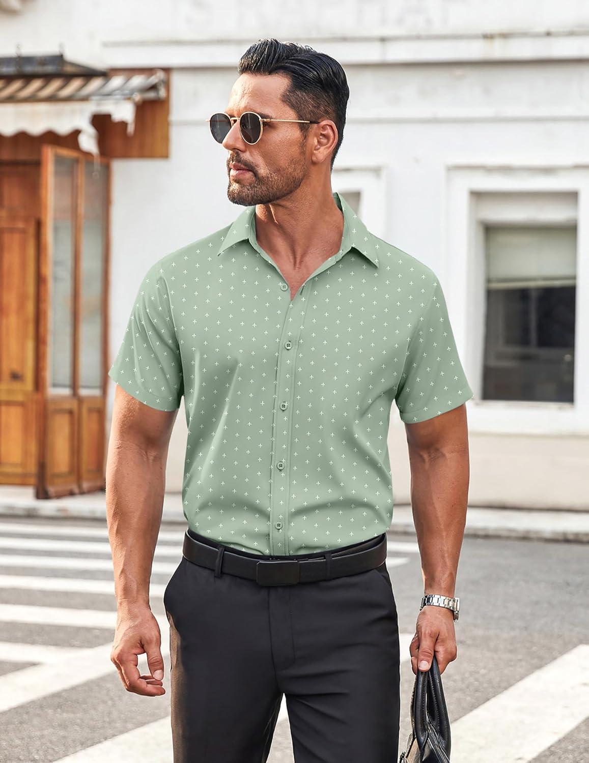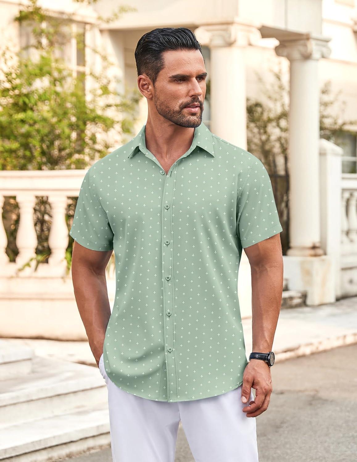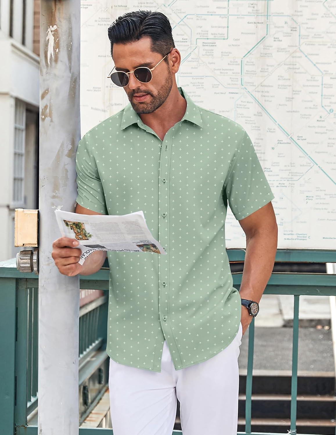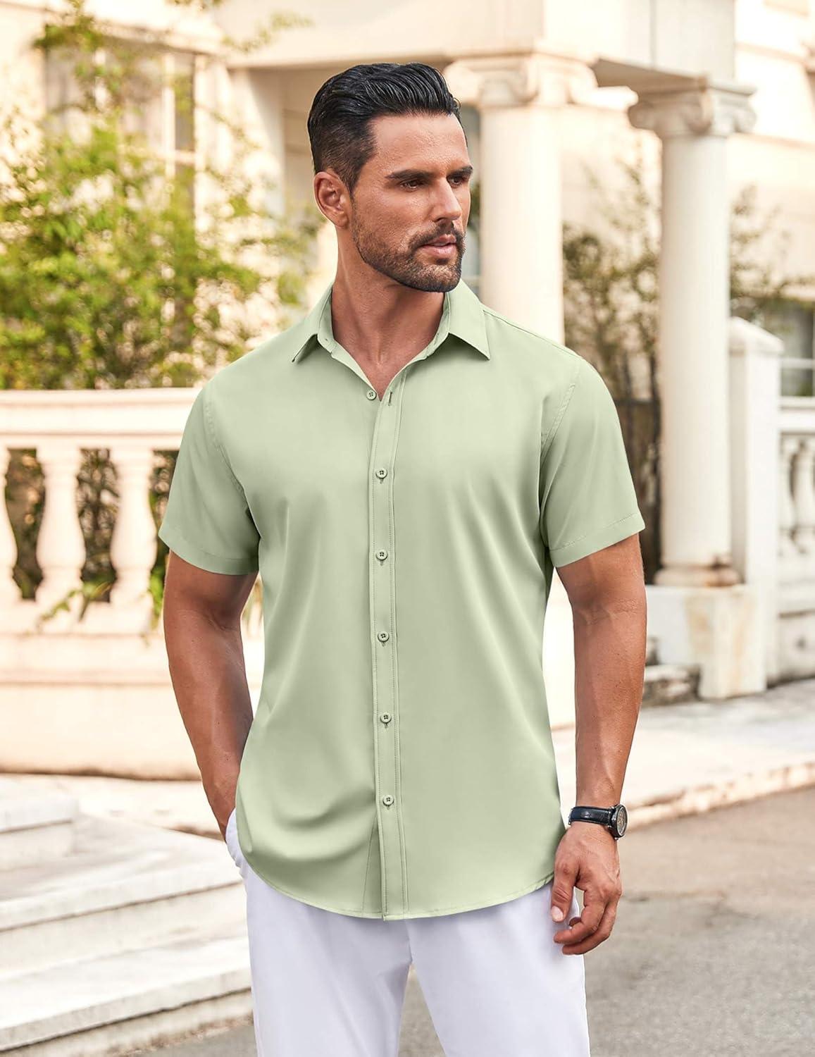 • COOFANDY Men’s Button Down Shirt Short Sleeve Dress Shirt Casual Beach Summer Wedding Shirt(Army Green)