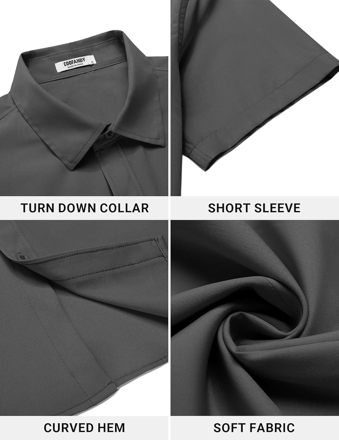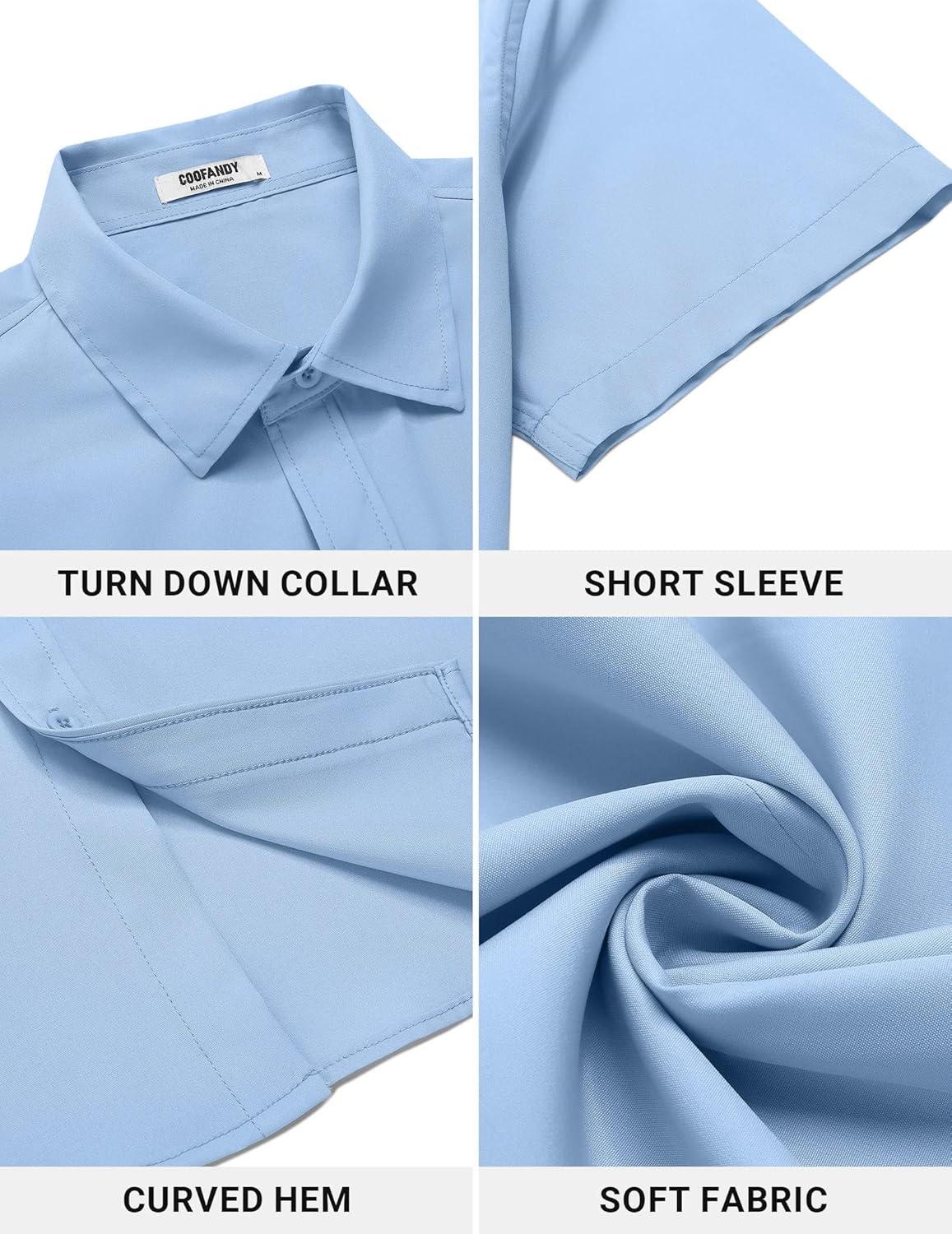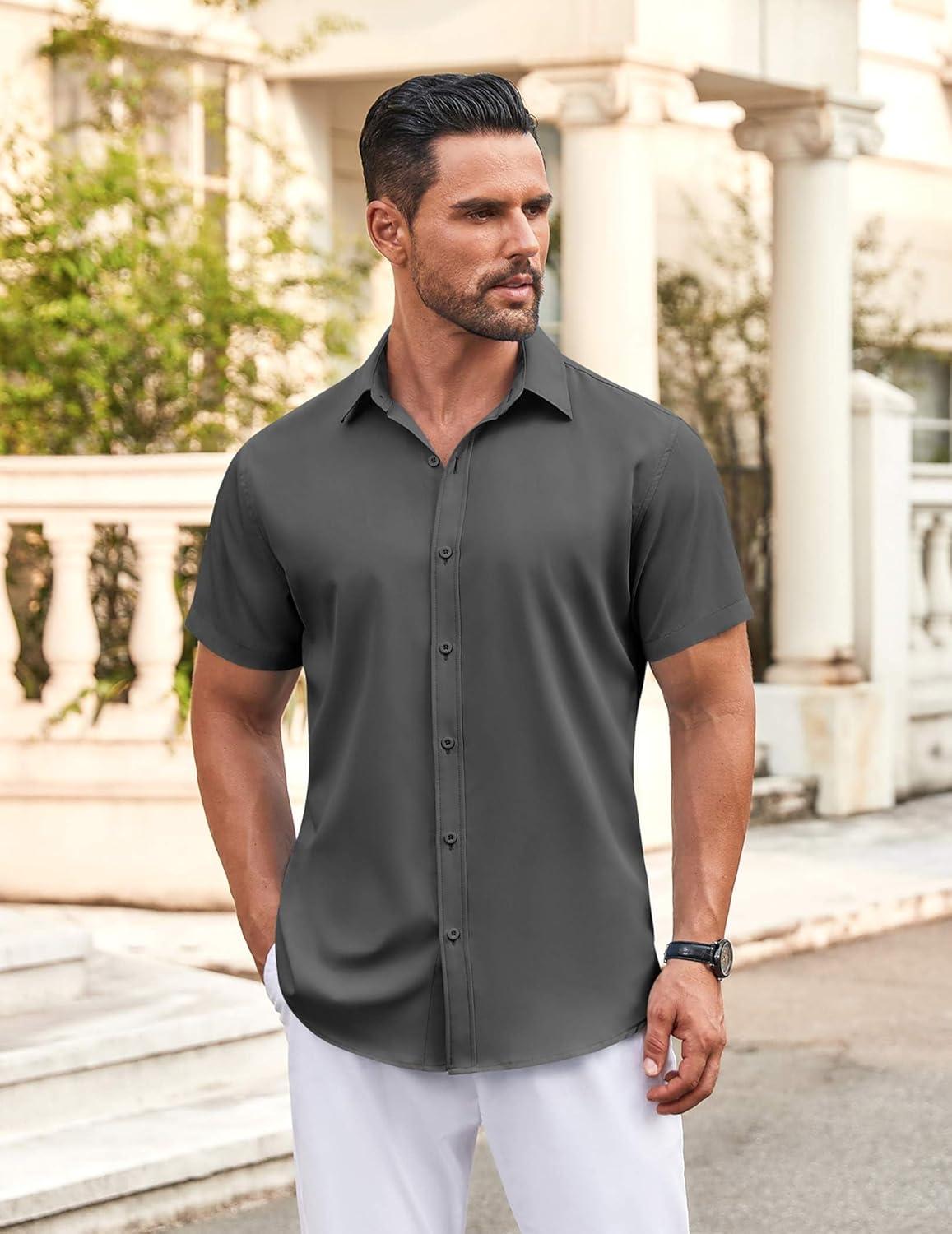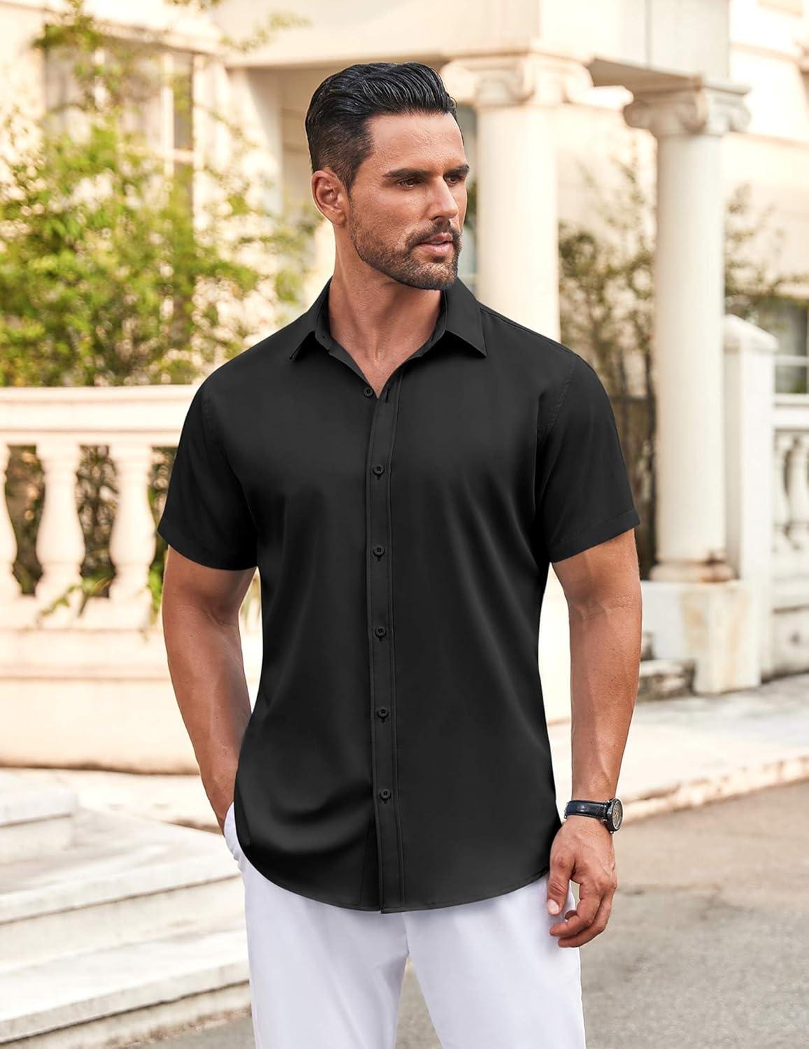 • COOFANDY Men’s Button Down Shirt Short Sleeve Casual Shirt for Men Summer Business Casual Dress Shirt(White)
