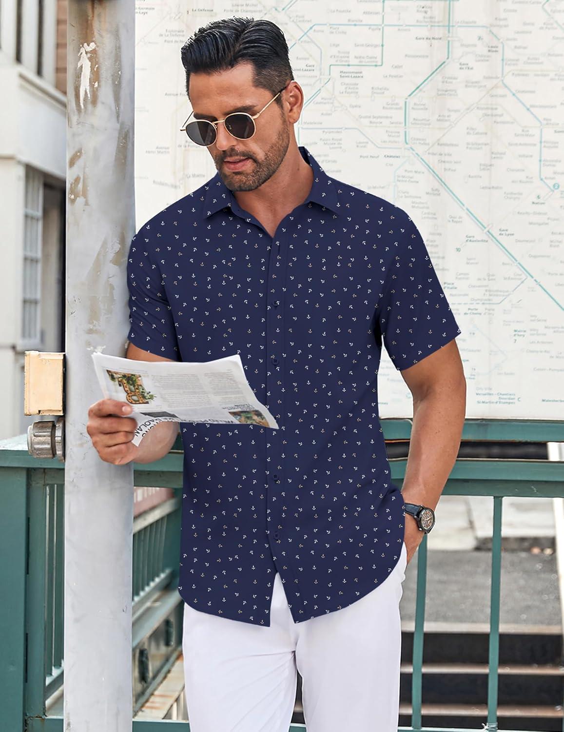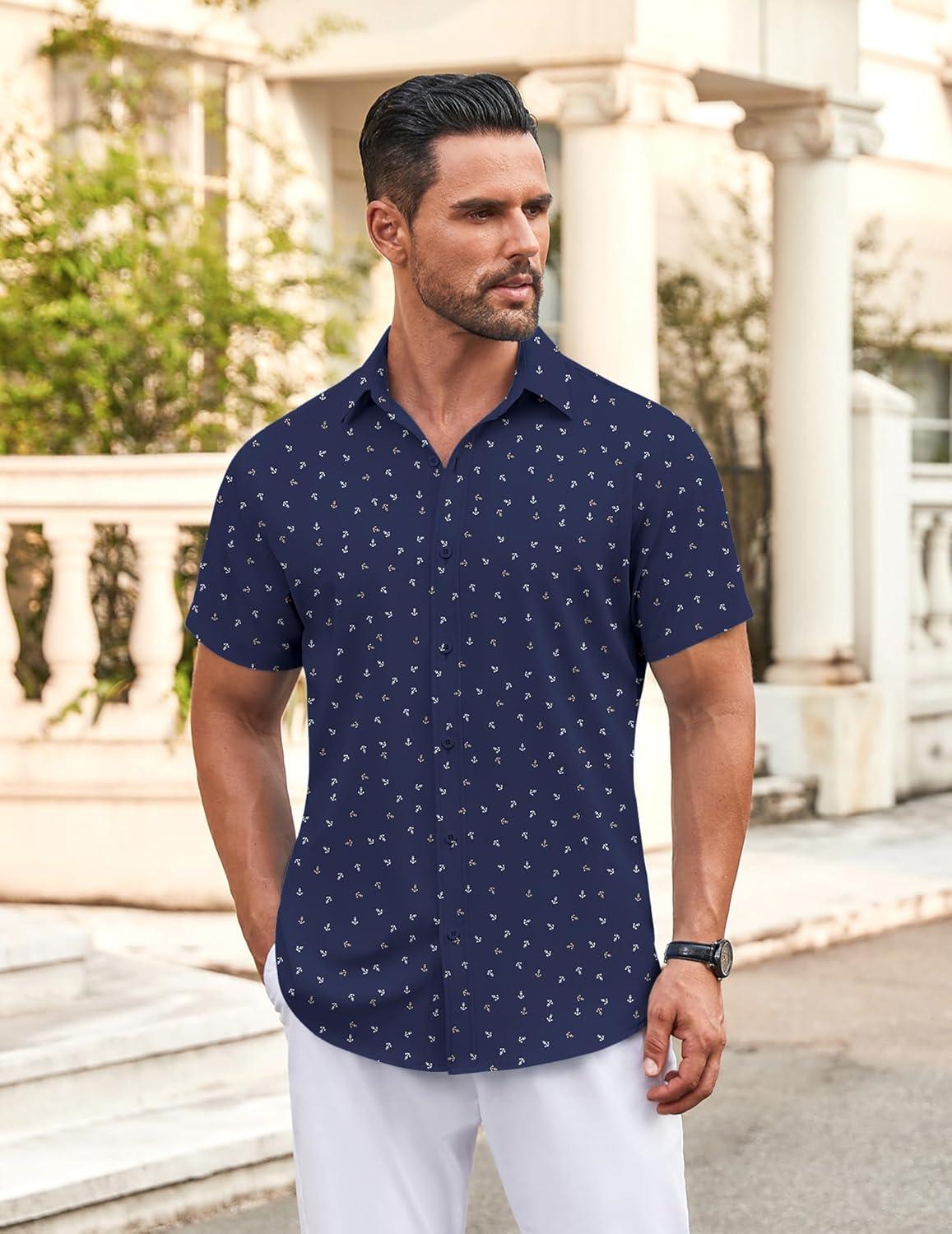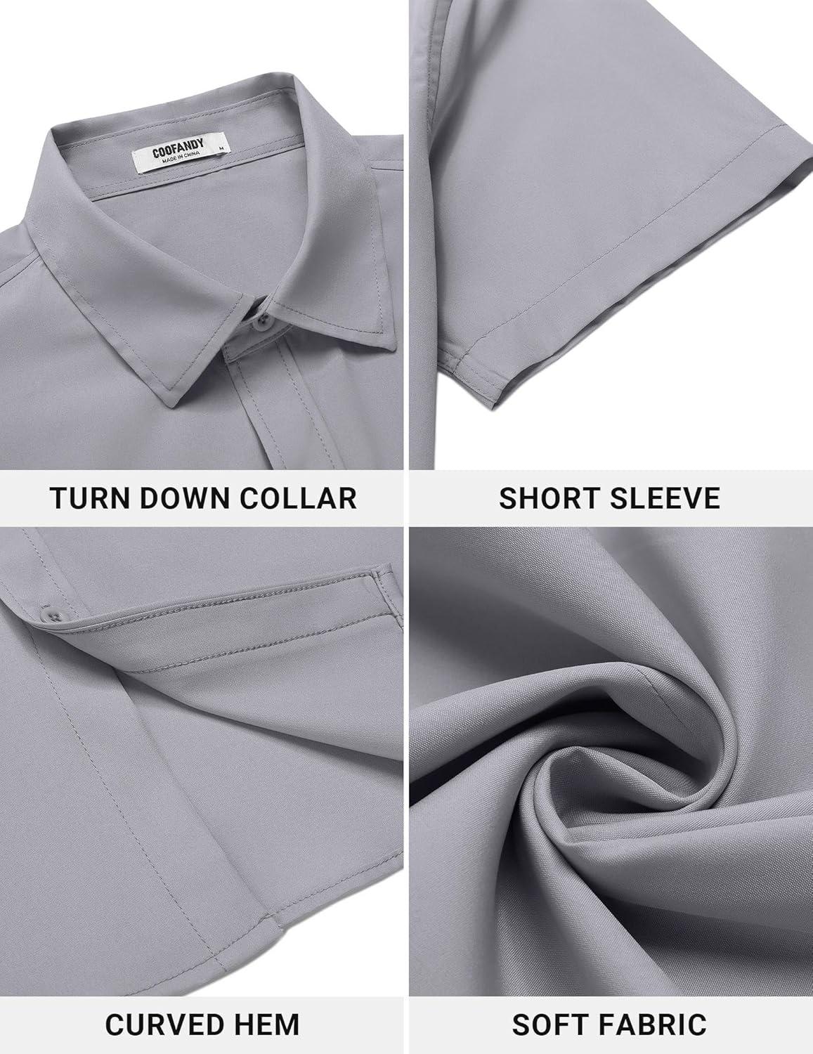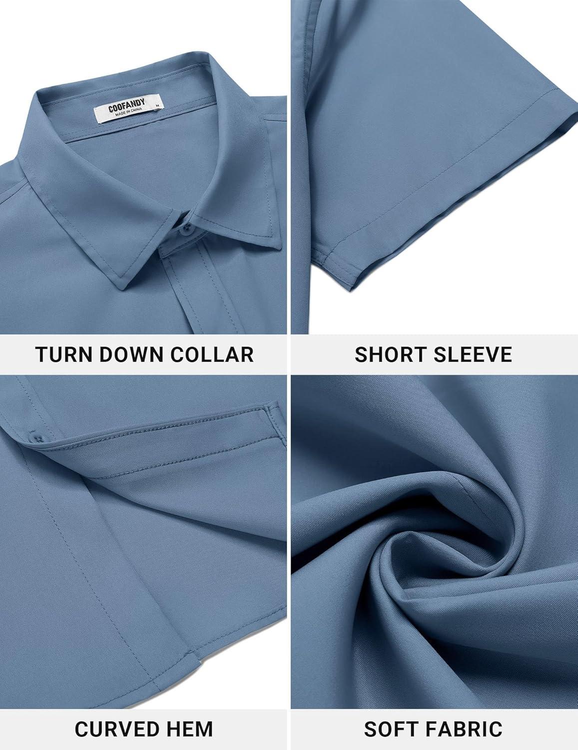 • COOFANDY Men’s Button Down Shirt Short Sleeve Casual Shirt for Men Summer Business Casual Dress Shirt(White)