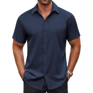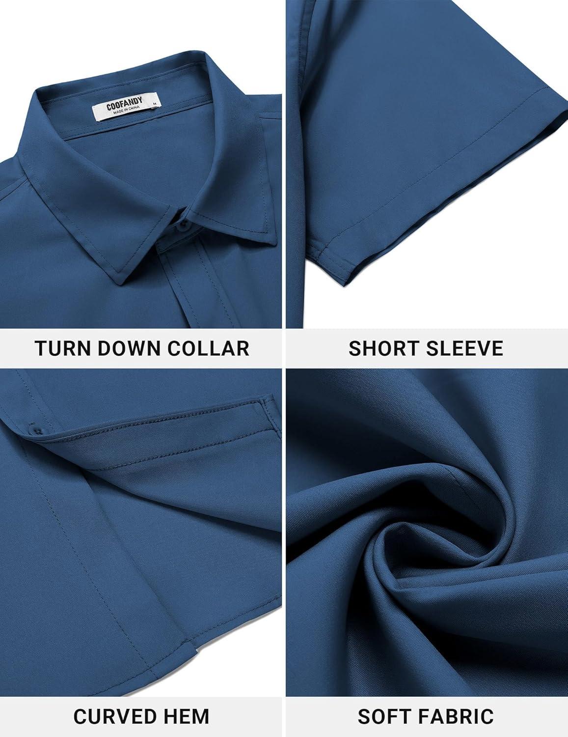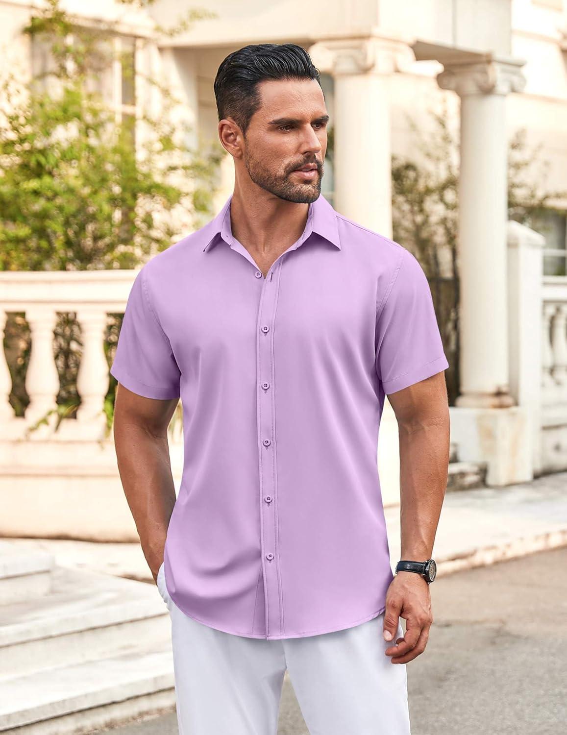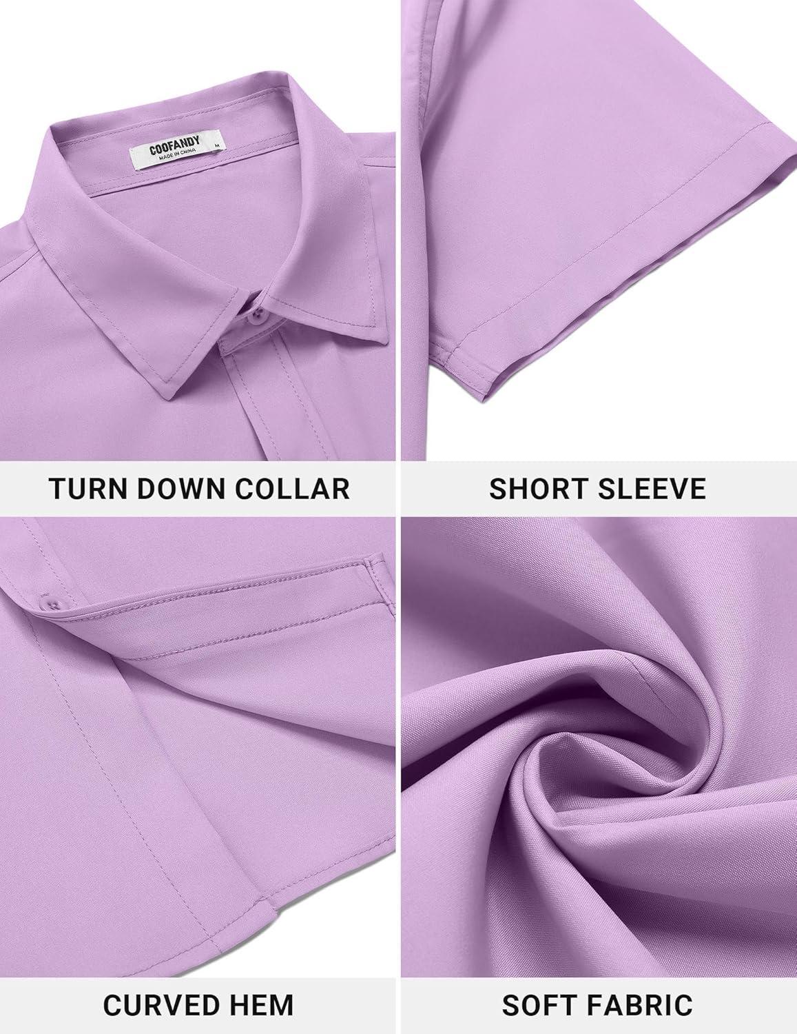 COOFANDY Men’s Button Down Shirt Short Sleeve Casual Shirt for Men Summer Business Casual Dress Shirt(Violet)