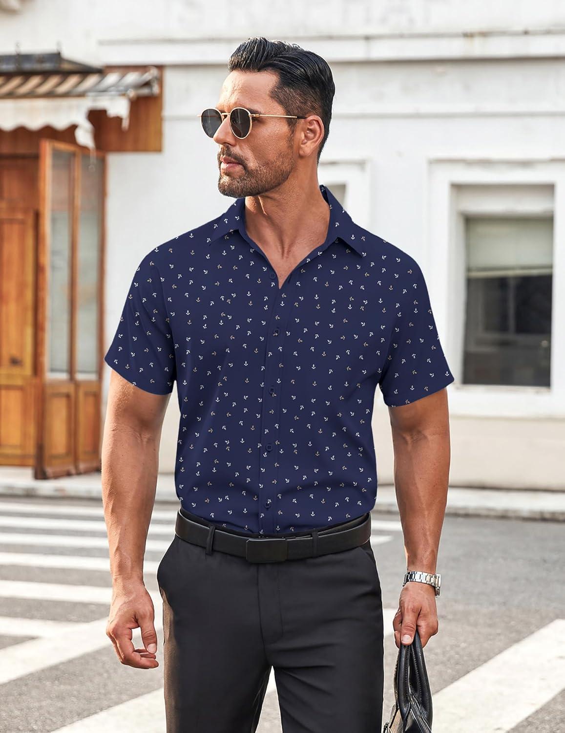 • COOFANDY Men’s Button Down Shirt Short Sleeve Casual Shirt for Men Summer Business Casual Dress Shirt(White-black Abstract)