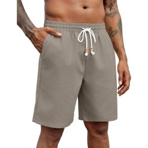COOFANDY Mens Linen Shorts Casual Drawstring Elastic Waist Lightweight Summer Vacation Beach Shorts(Light Grey)
