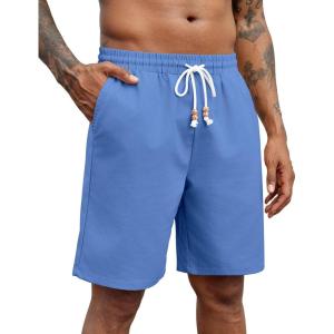 COOFANDY Mens Linen Shorts Casual Drawstring Elastic Waist Lightweight Summer Vacation Beach Shorts(Denim Blue)