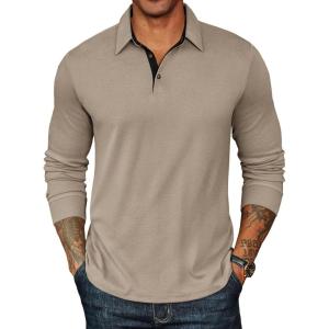 COOFANDY Mens Long Sleeve Polo Shirts Classic Casual Button Polo Tee Lightweight Collared Golf Shirt(Khaki)