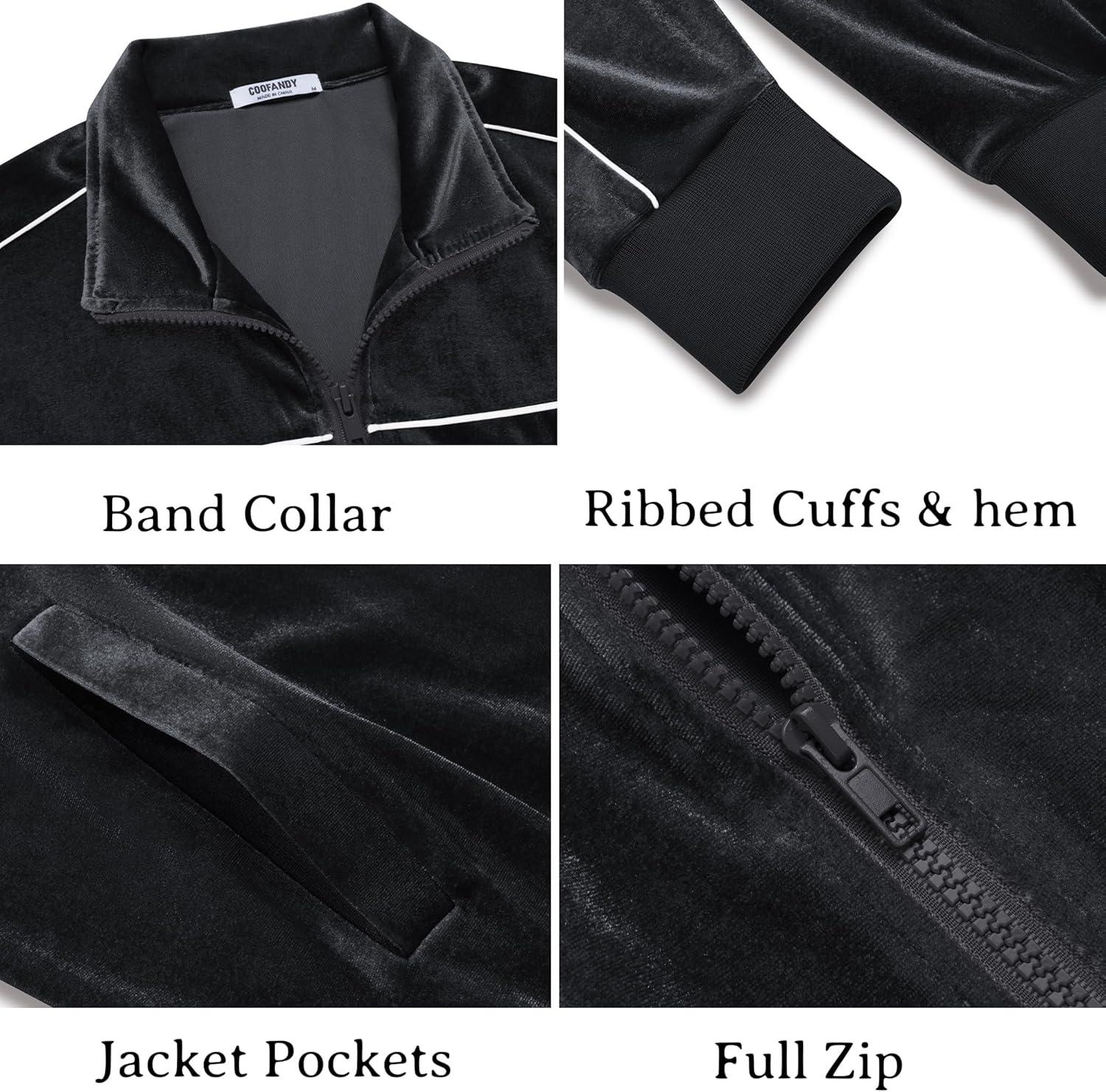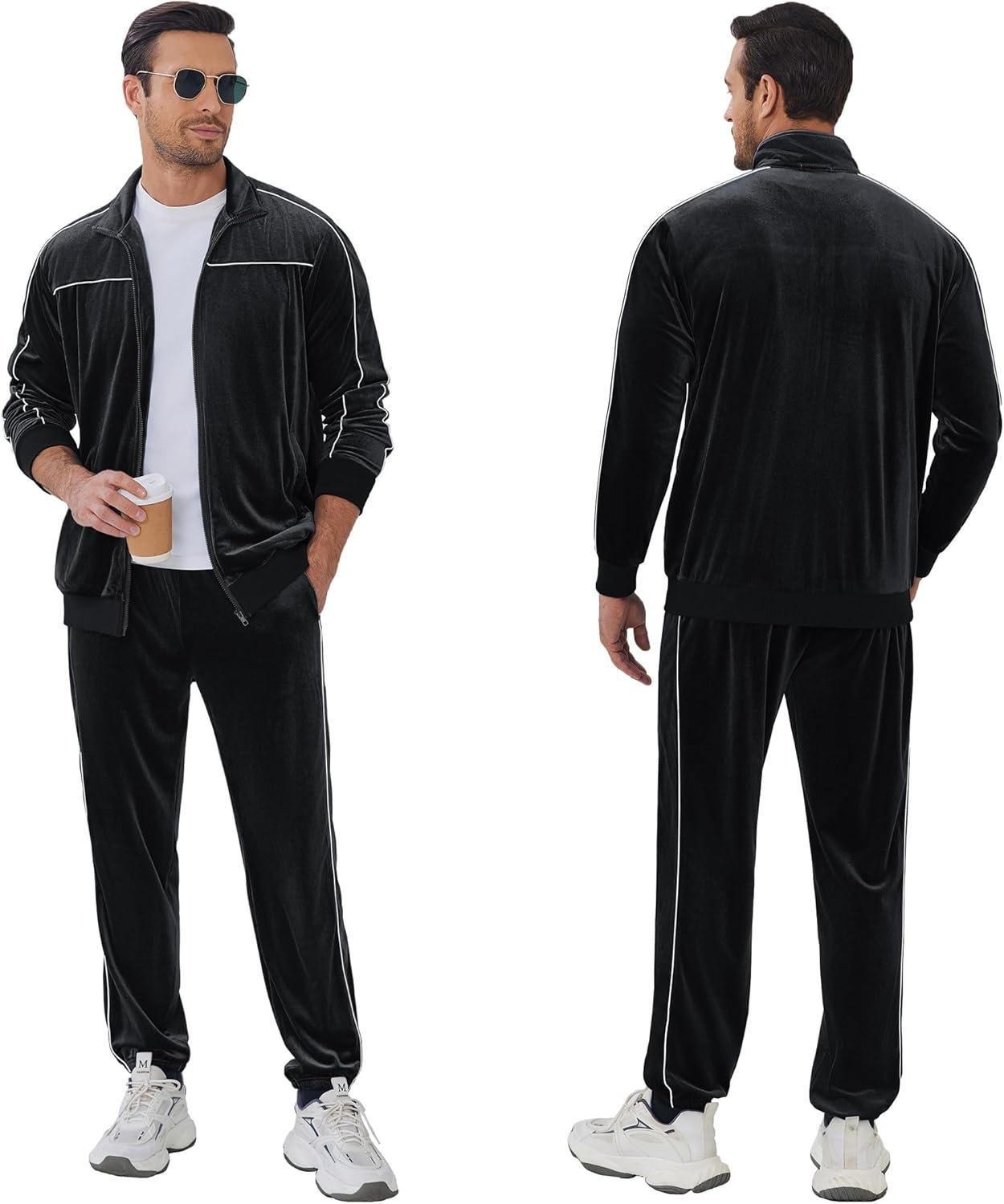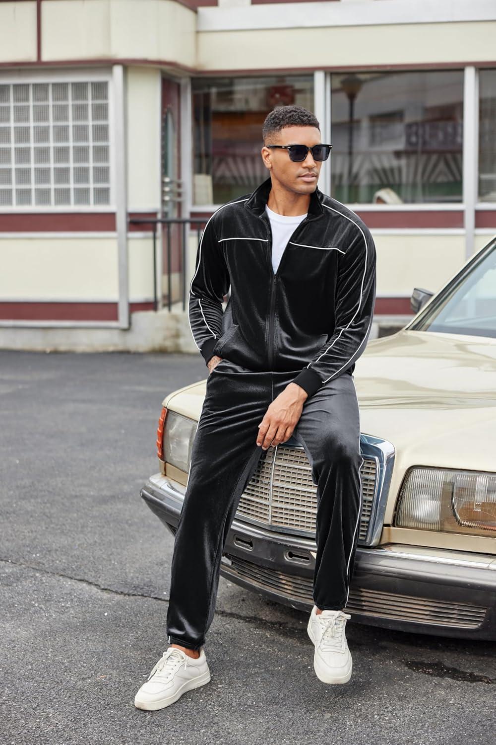 COOFANDY Mens Velour Tracksuits 2 Piece Set Outfits Zip Up Sweatsuits Velvet Jacket Pants Set(Black)