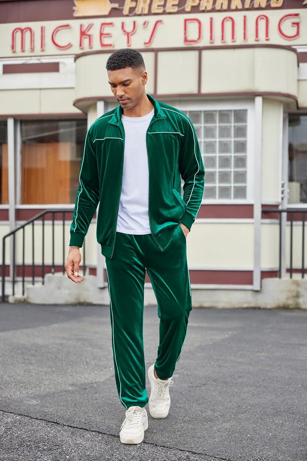 COOFANDY Mens Velour Tracksuits 2 Piece Set Outfits Zip Up Sweatsuits Velvet Jacket Pants Set(Evergreen)