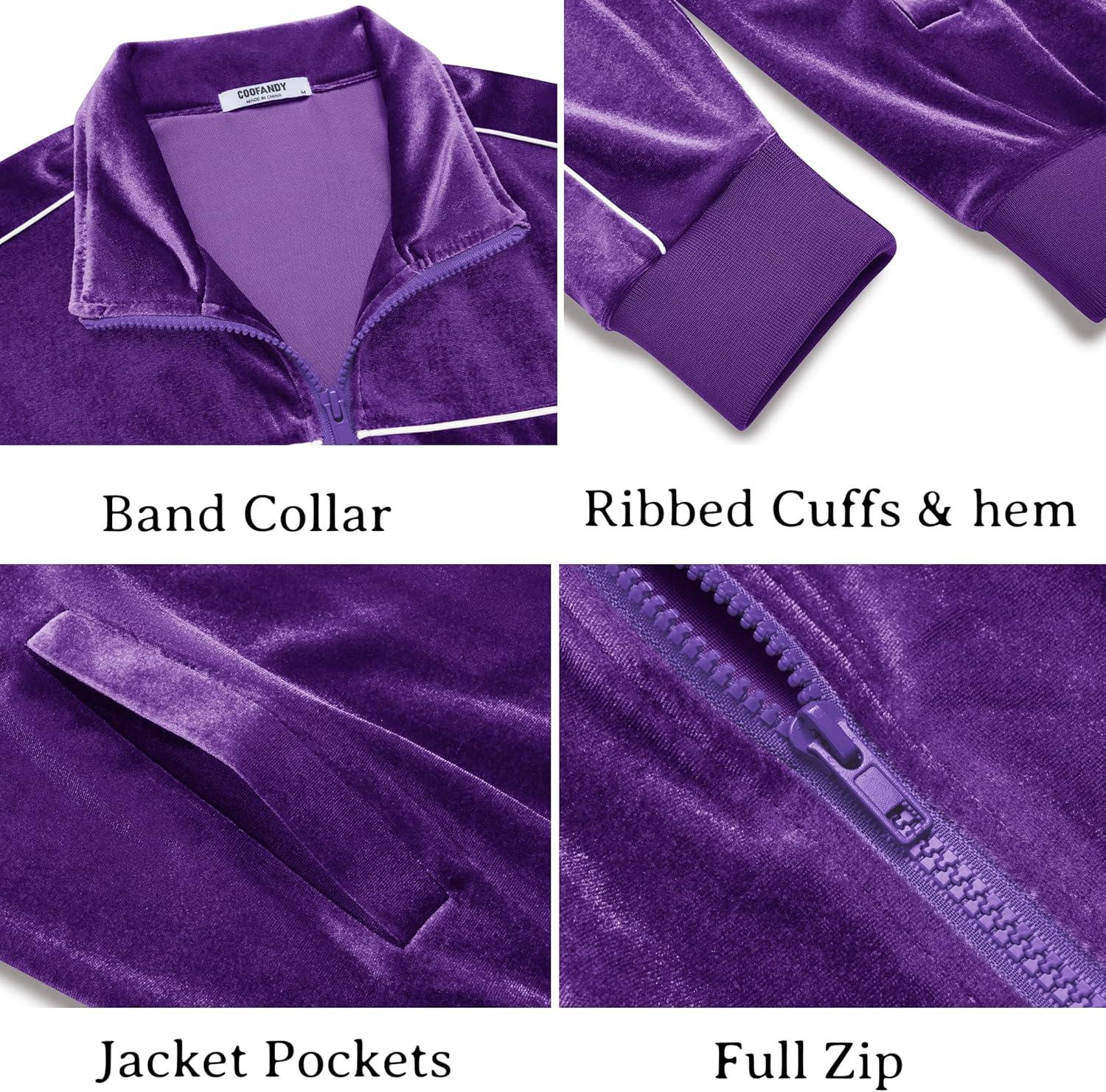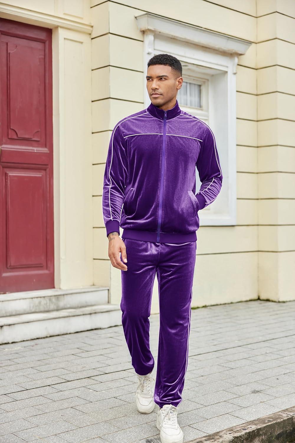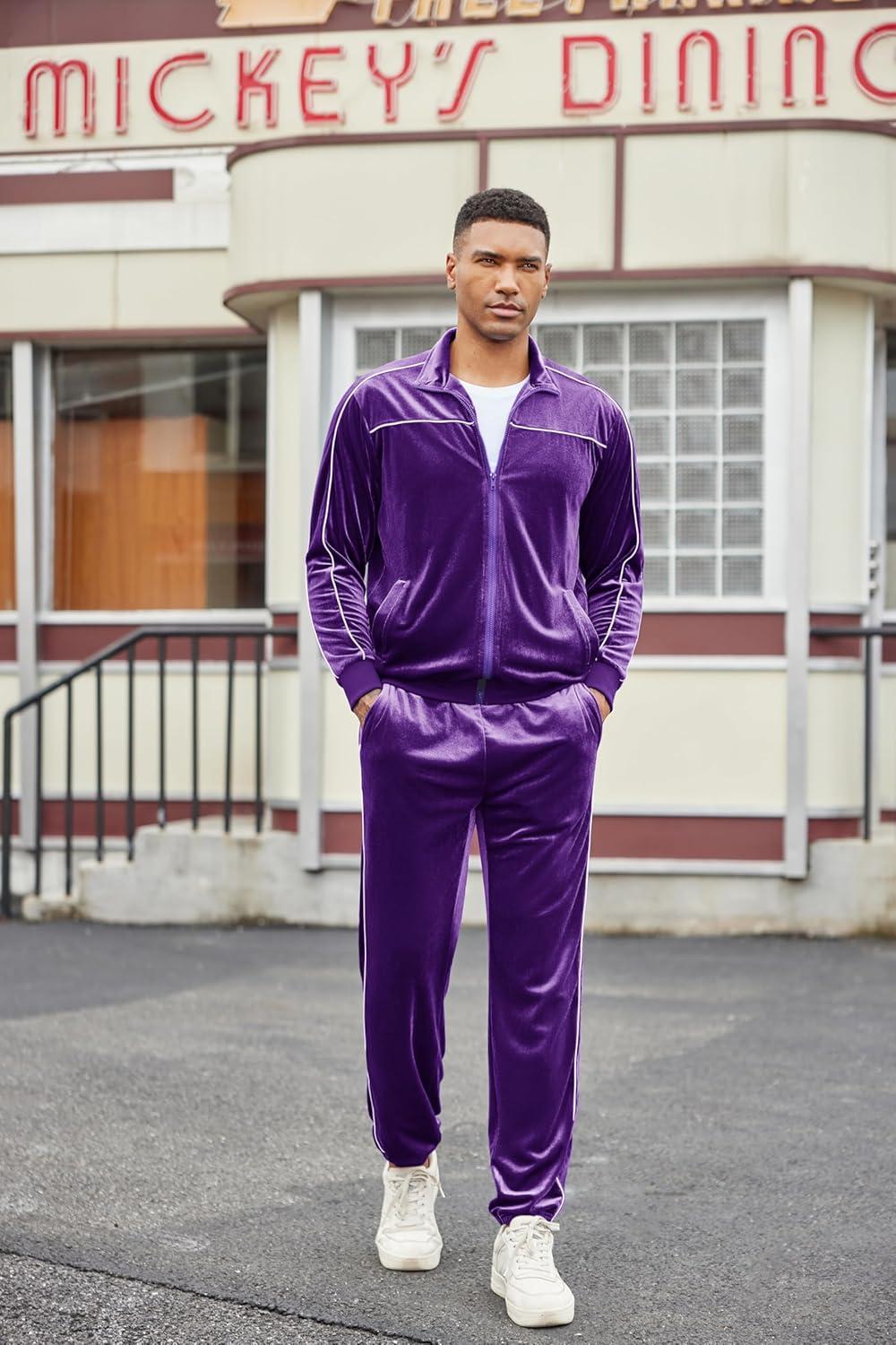 COOFANDY Mens Velour Tracksuits 2 Piece Set Outfits Zip Up Sweatsuits Velvet Jacket Pants Set(Purple)