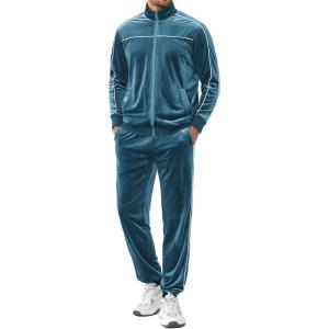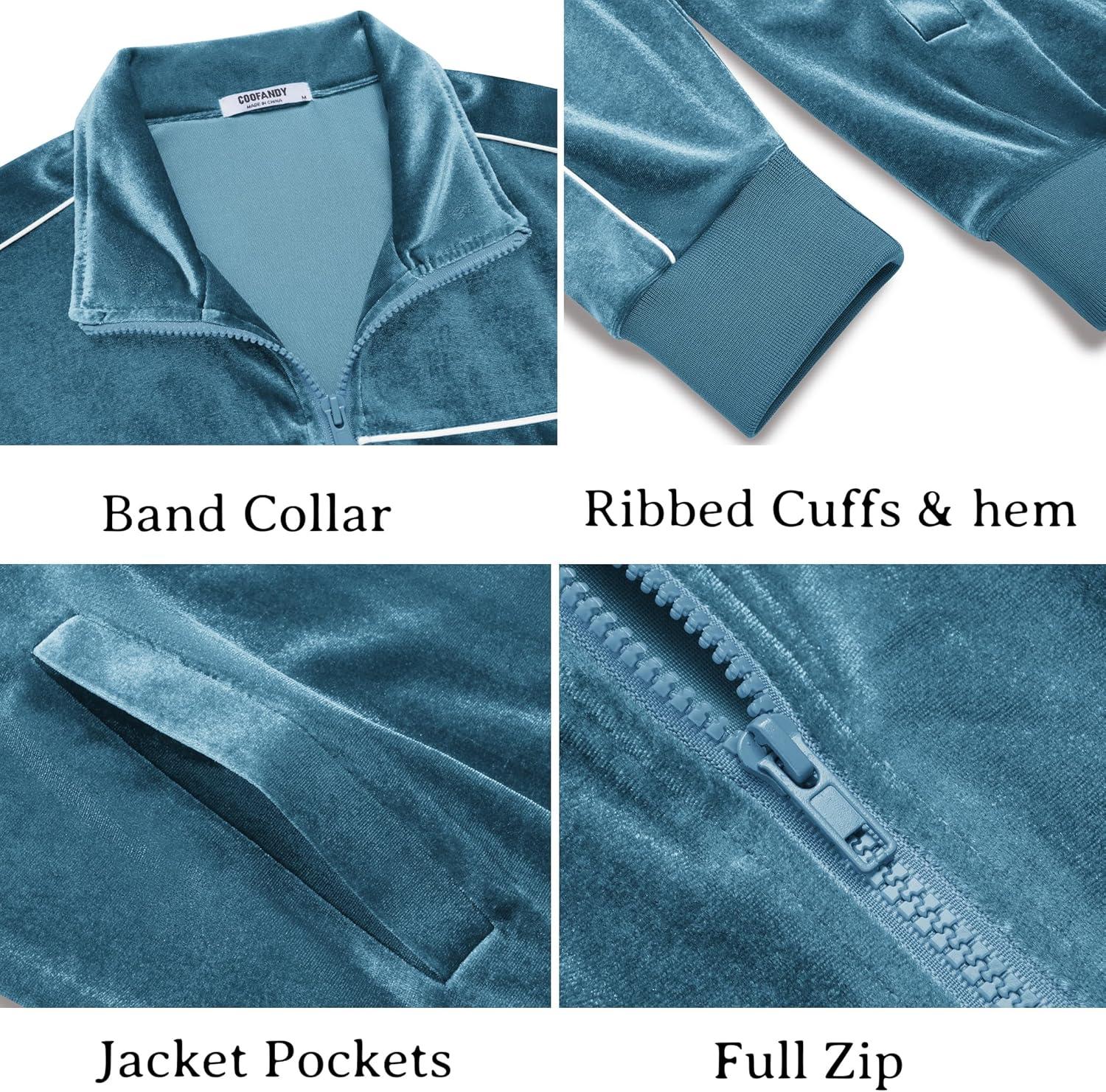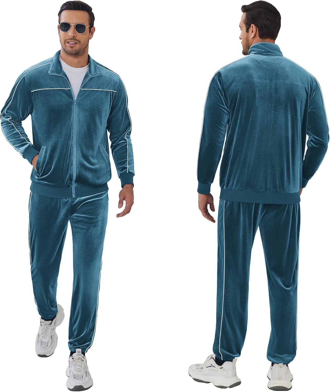 COOFANDY Mens Velour Tracksuits 2 Piece Set Outfits Zip Up Sweatsuits Velvet Jacket Pants Set(Teal)