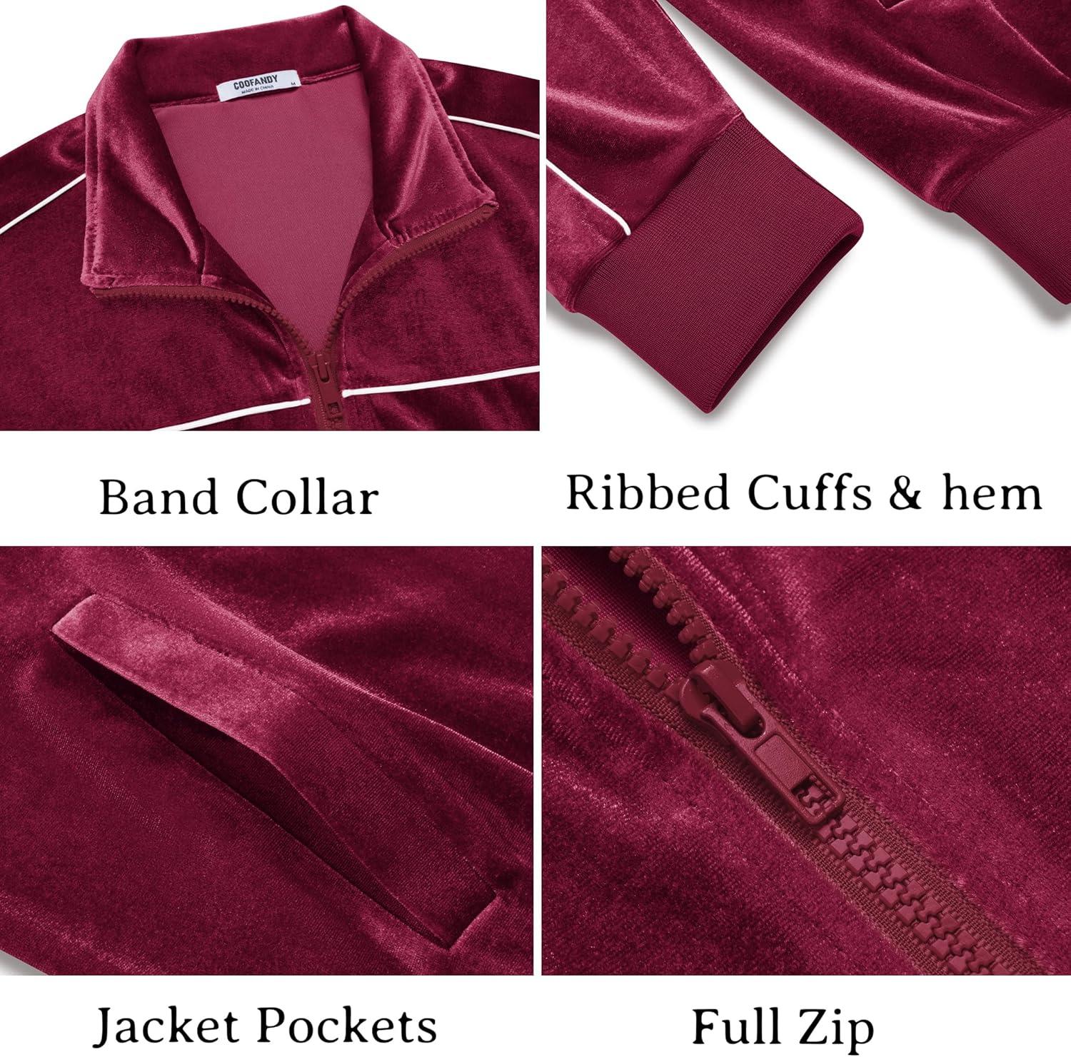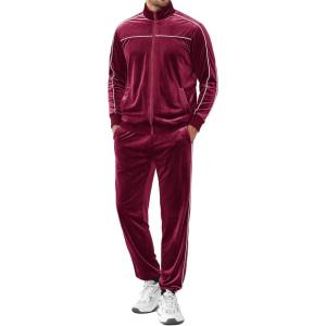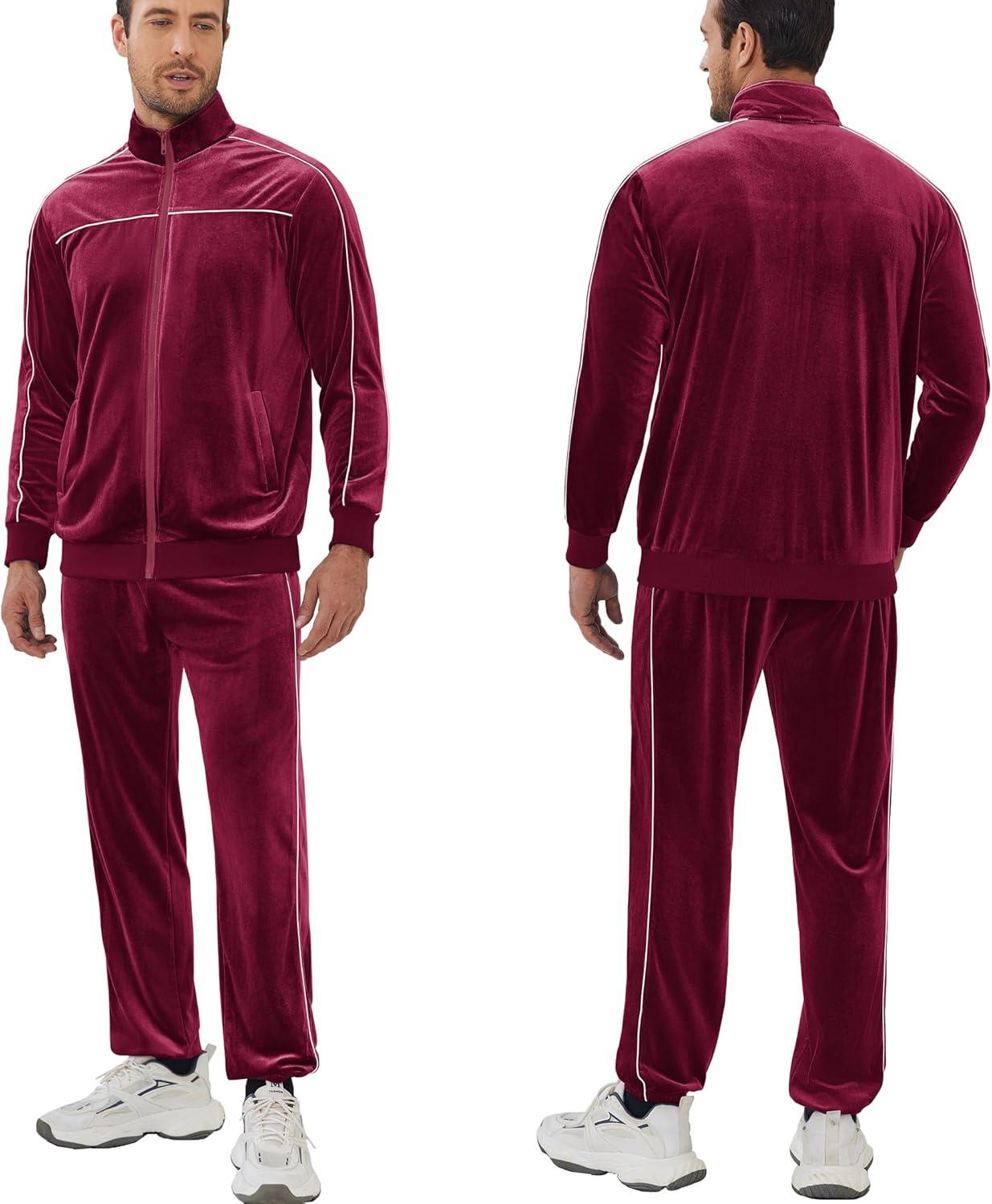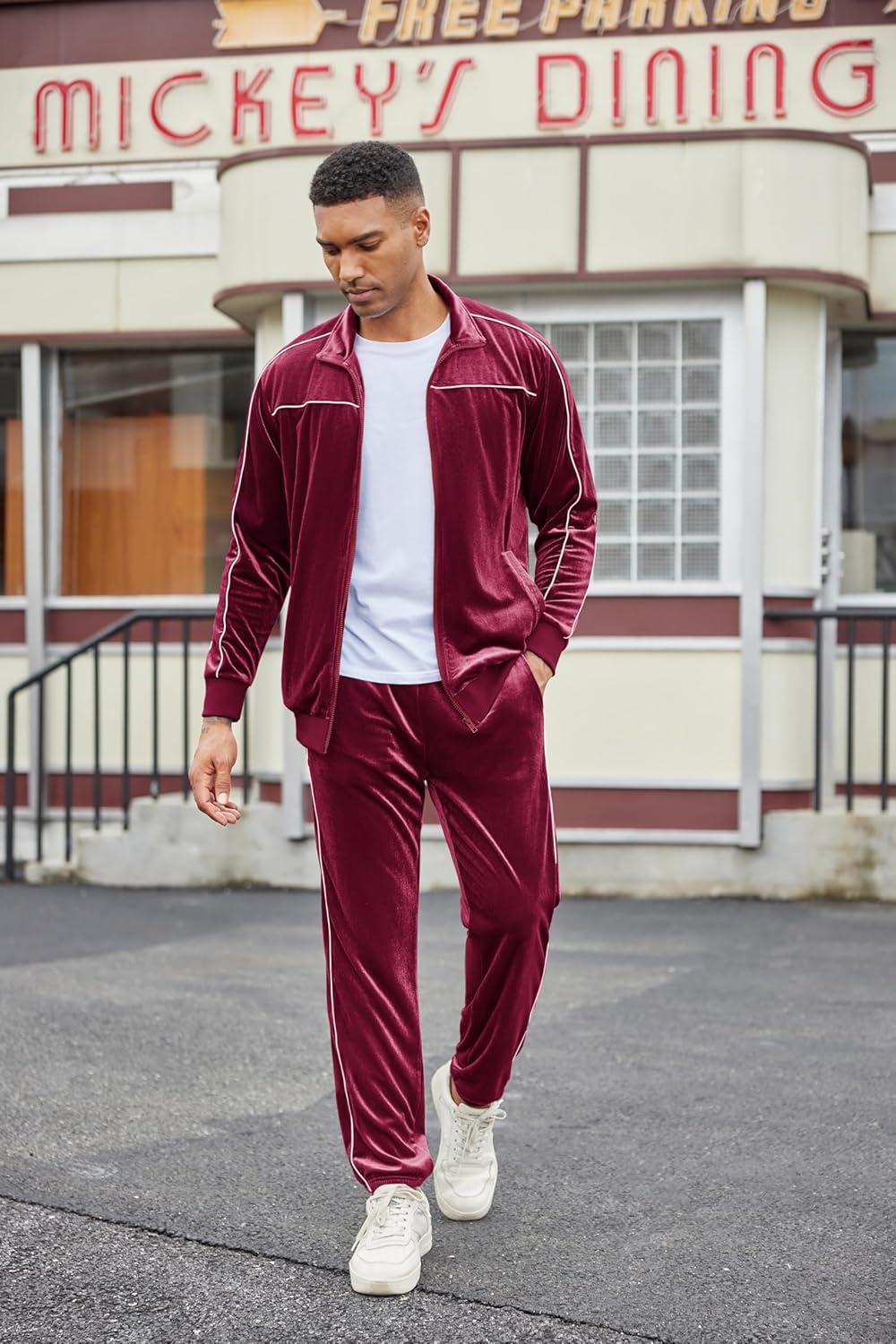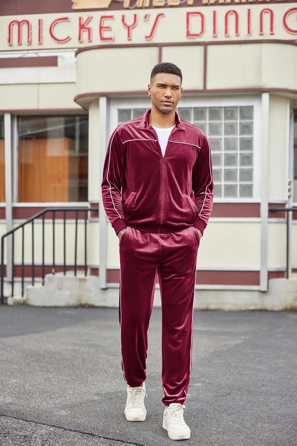 COOFANDY Mens Velour Tracksuits 2 Piece Set Outfits Zip Up Sweatsuits Velvet Jacket Pants Set(Wine Red)