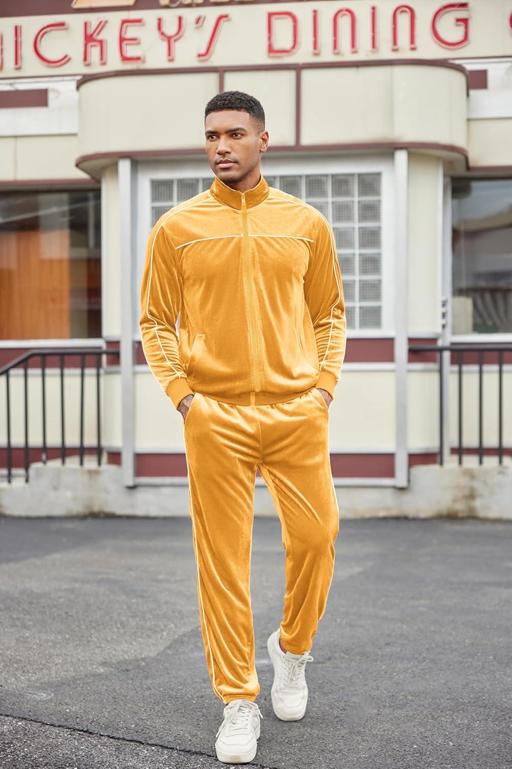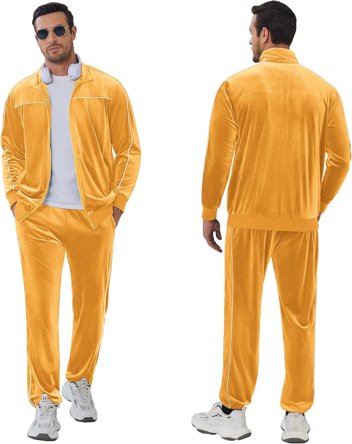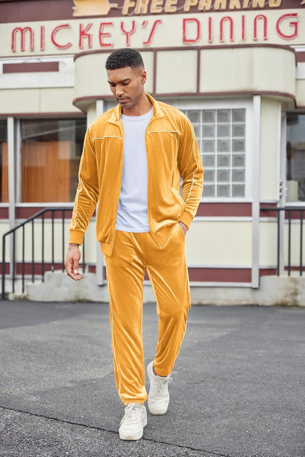 COOFANDY Mens Velour Tracksuits 2 Piece Set Outfits Zip Up Sweatsuits Velvet Jacket Pants Set(Yellow)