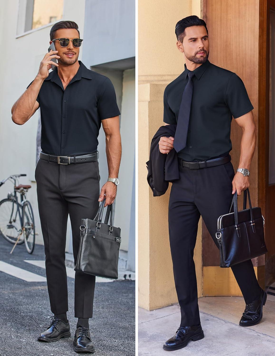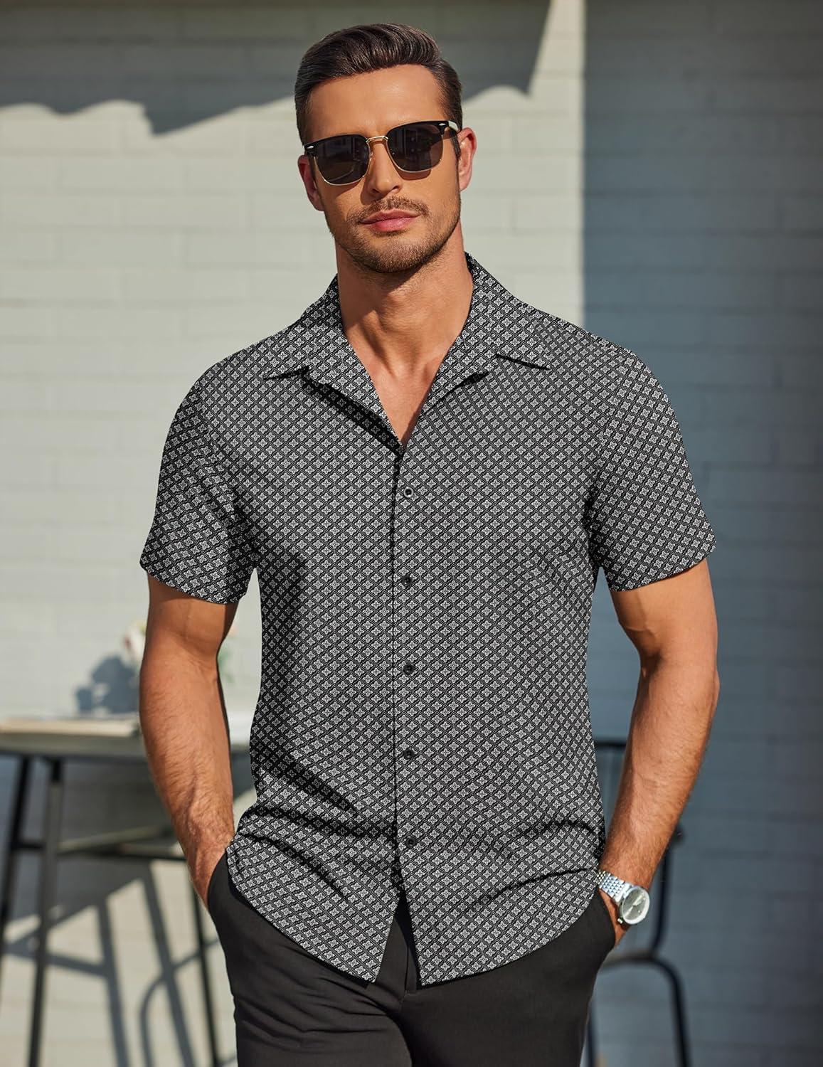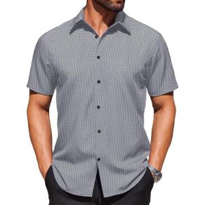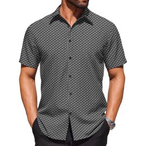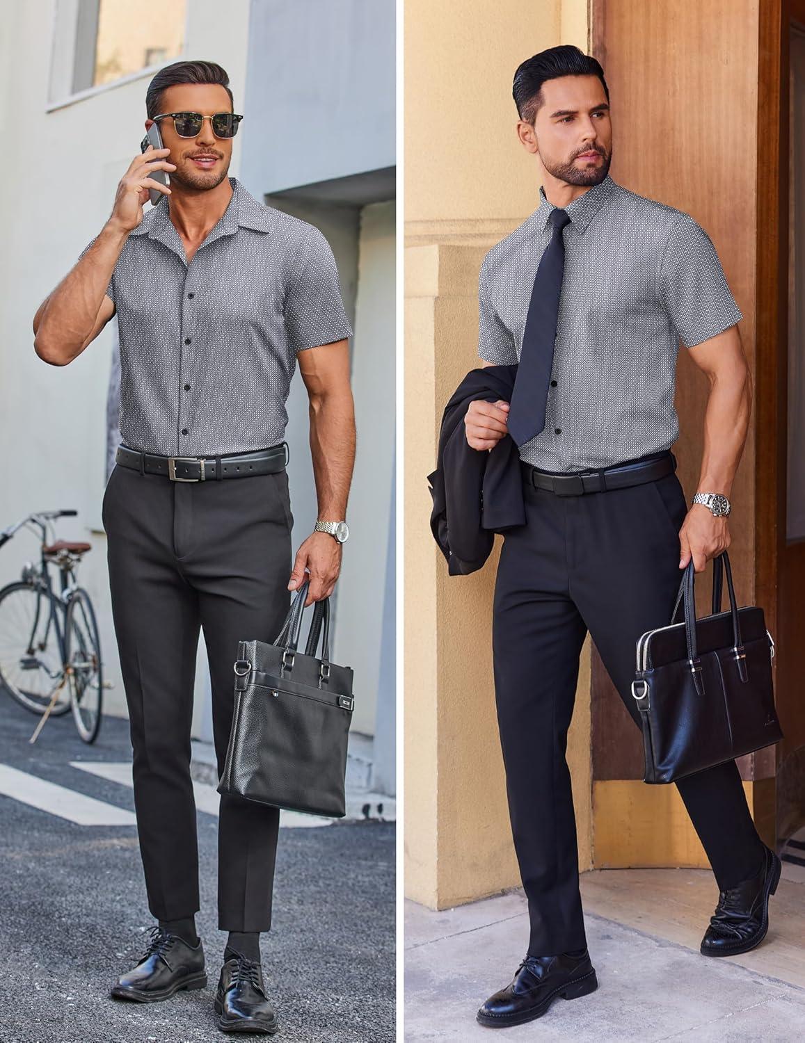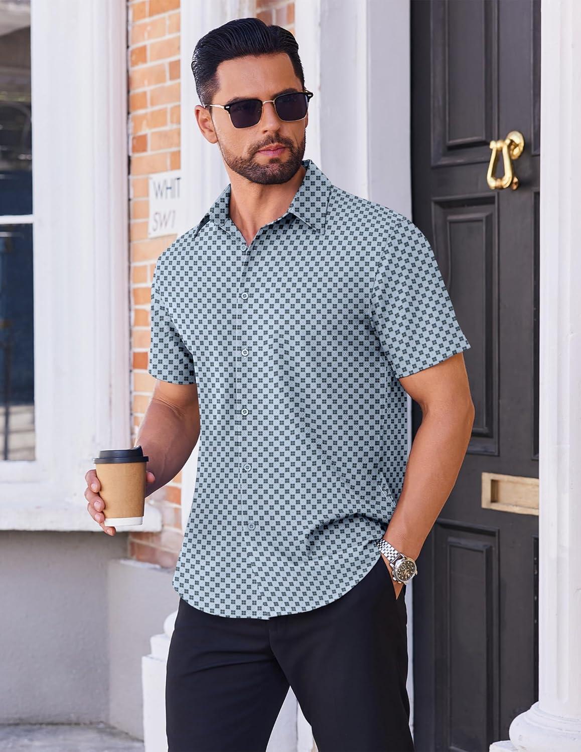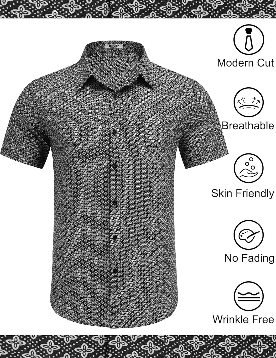 COOFANDY Mens Wrinkle Free Dress Shirt Polka Dot Short Sleeve Button Down Business Casual Shirts(Black Grey-square)