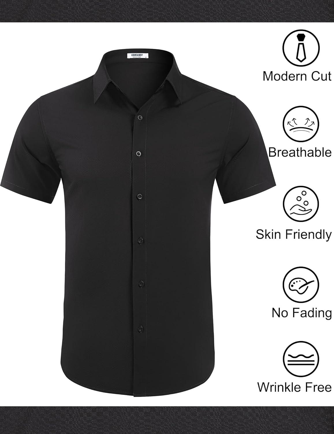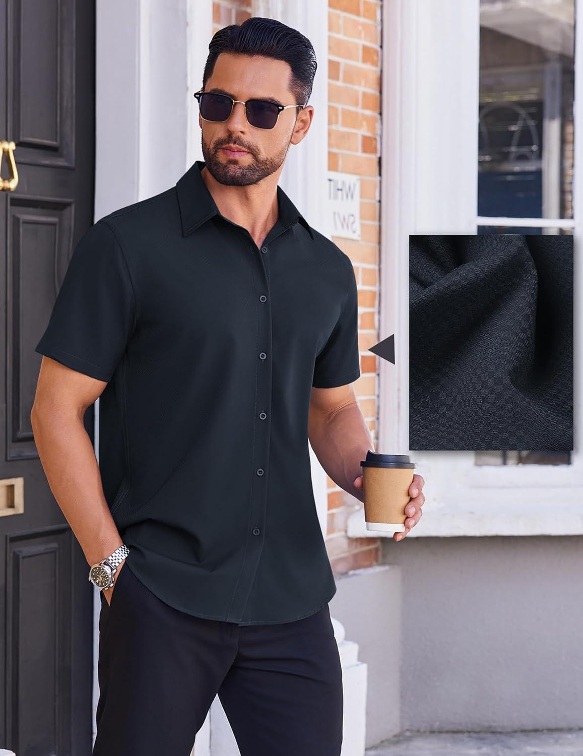 COOFANDY Mens Wrinkle Free Dress Shirt Polka Dot Short Sleeve Button Down Business Casual Shirts(Black-square)