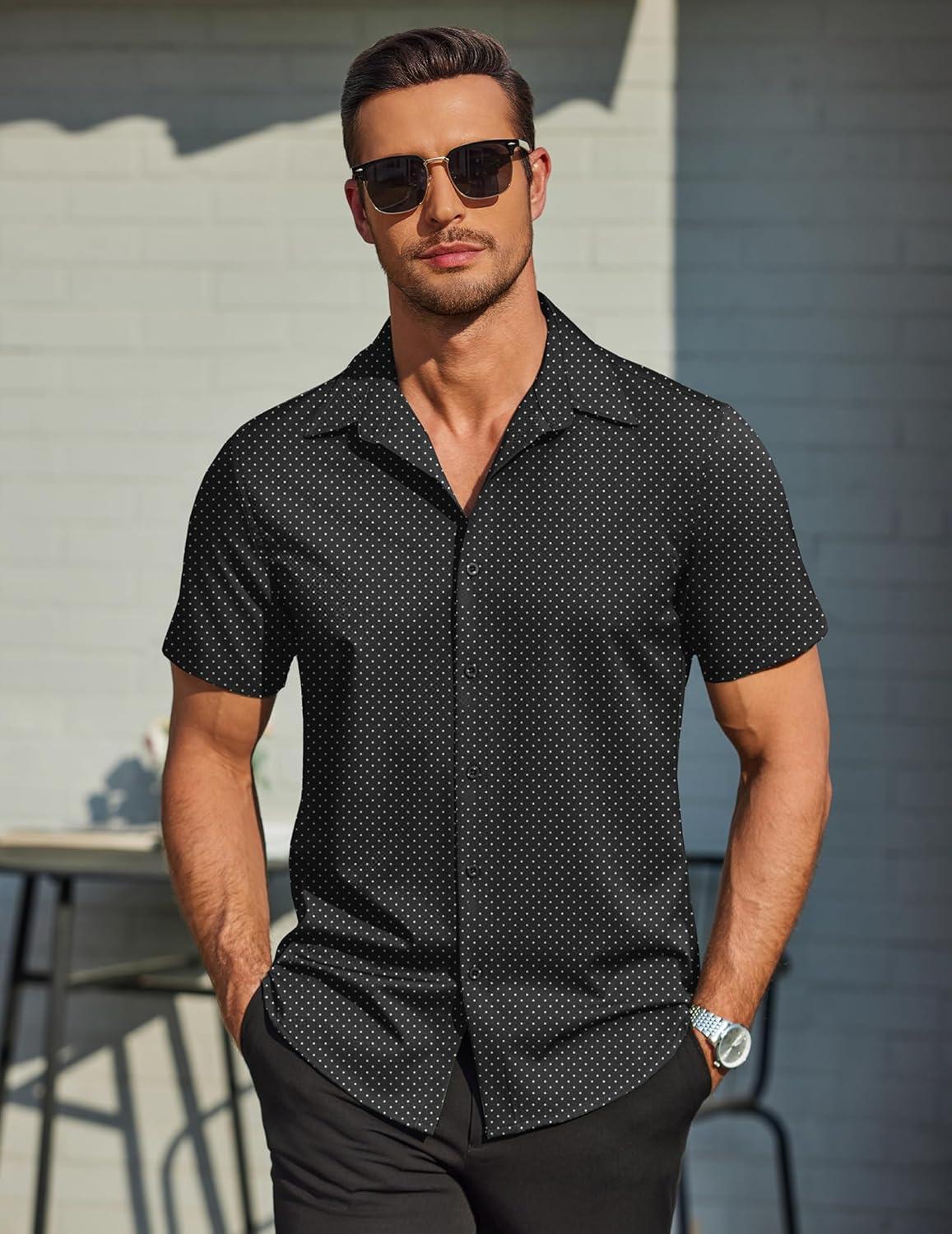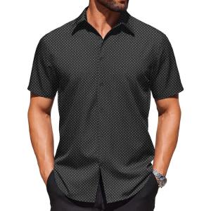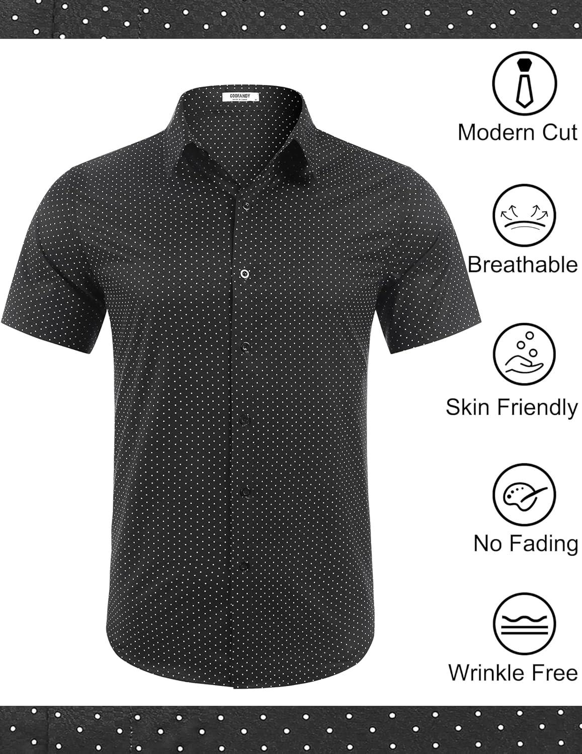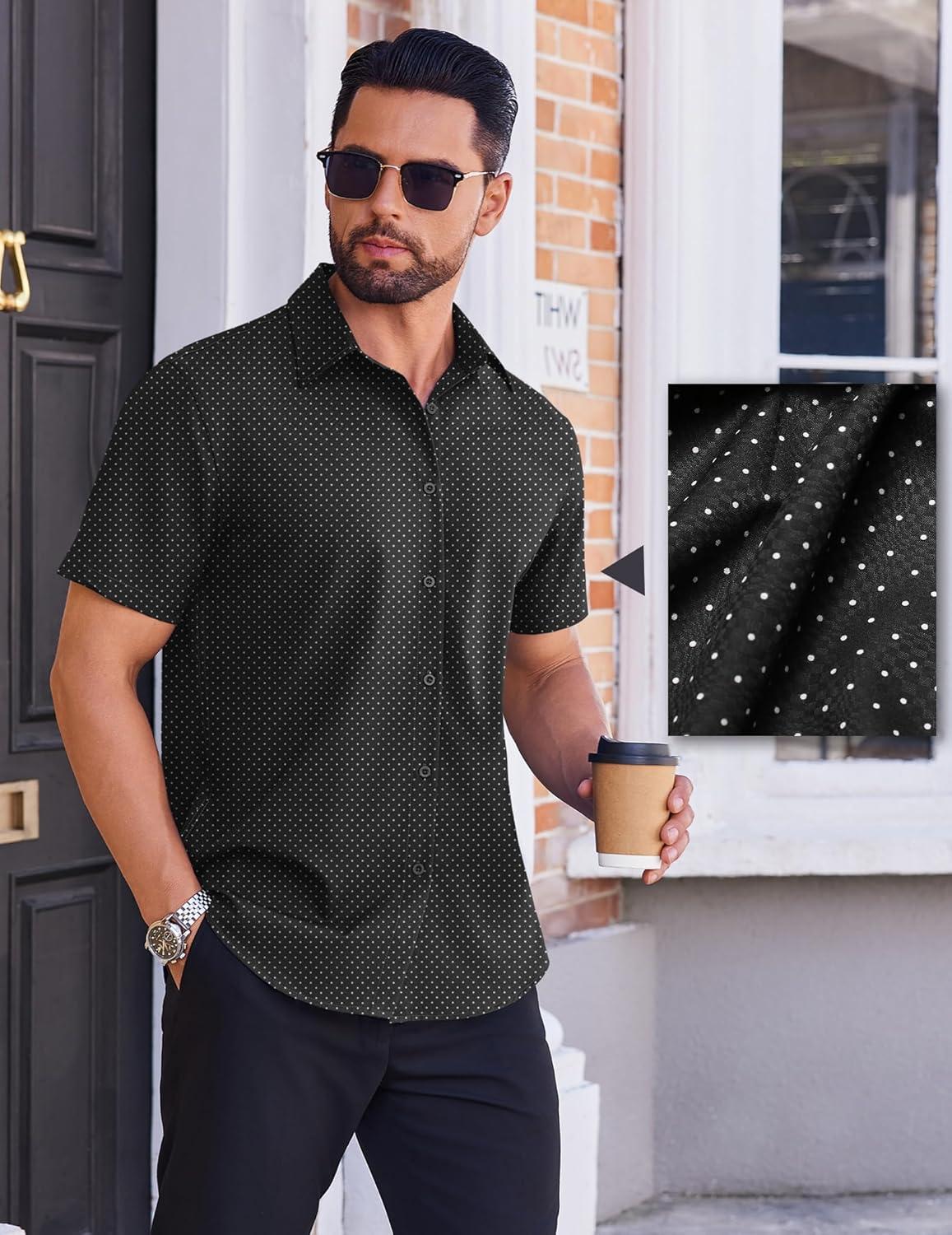 COOFANDY Mens Wrinkle Free Dress Shirt Polka Dot Short Sleeve Button Down Business Casual Shirts(Black-polka Dots)