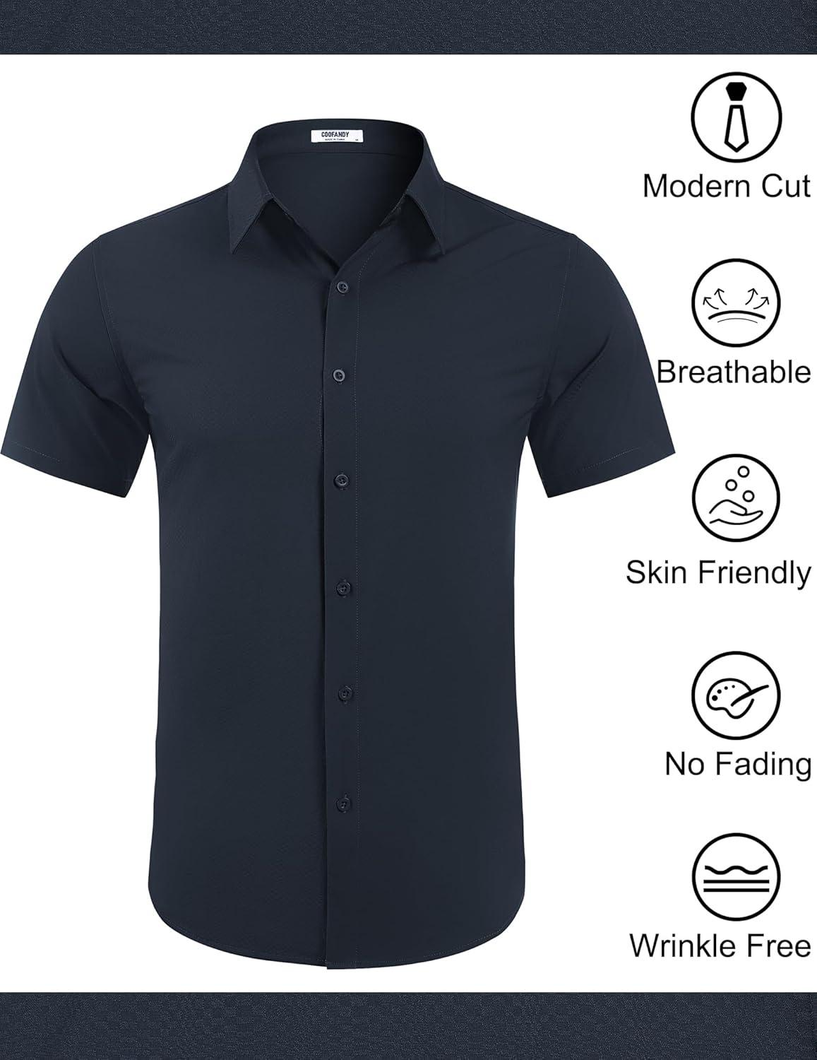 COOFANDY Mens Wrinkle Free Dress Shirt Polka Dot Short Sleeve Button Down Business Casual Shirts(Dark Blue)