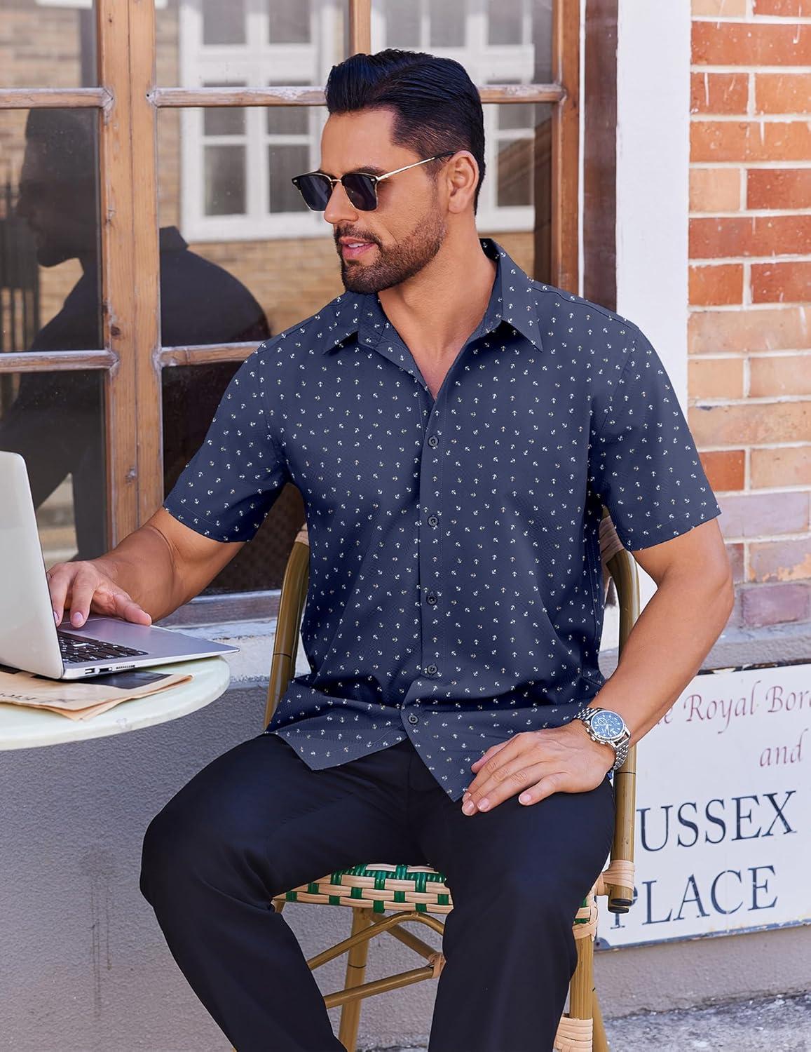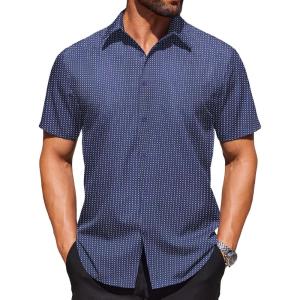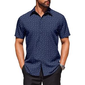 COOFANDY Mens Wrinkle Free Dress Shirt Polka Dot Short Sleeve Button Down Business Casual Shirts(Navy Blue-anchor)