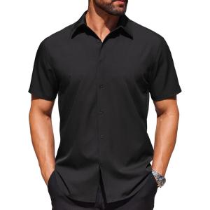 COOFANDY Mens Wrinkle Free Dress Shirt Polka Dot Short Sleeve Button Down Business Casual Shirts(Black)